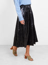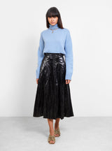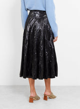 The Malia Skirt arrives from Rejina Pyo in a classic A-line silhouette, reimagined in a coated satin twill for a wet-look effect. Pleating throughout provides shape and volume, whilst an integrated leather belt completes the look.