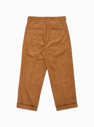 Made from mid-wale cotton corduroy, these tobacco-brown Manager pants from Garbstore’s AW23 collection are cut to a loose silhouette with wide legs, front pleats and pressed creases. Rubber grip framing the inside of the waistband provides a snug fit.