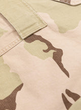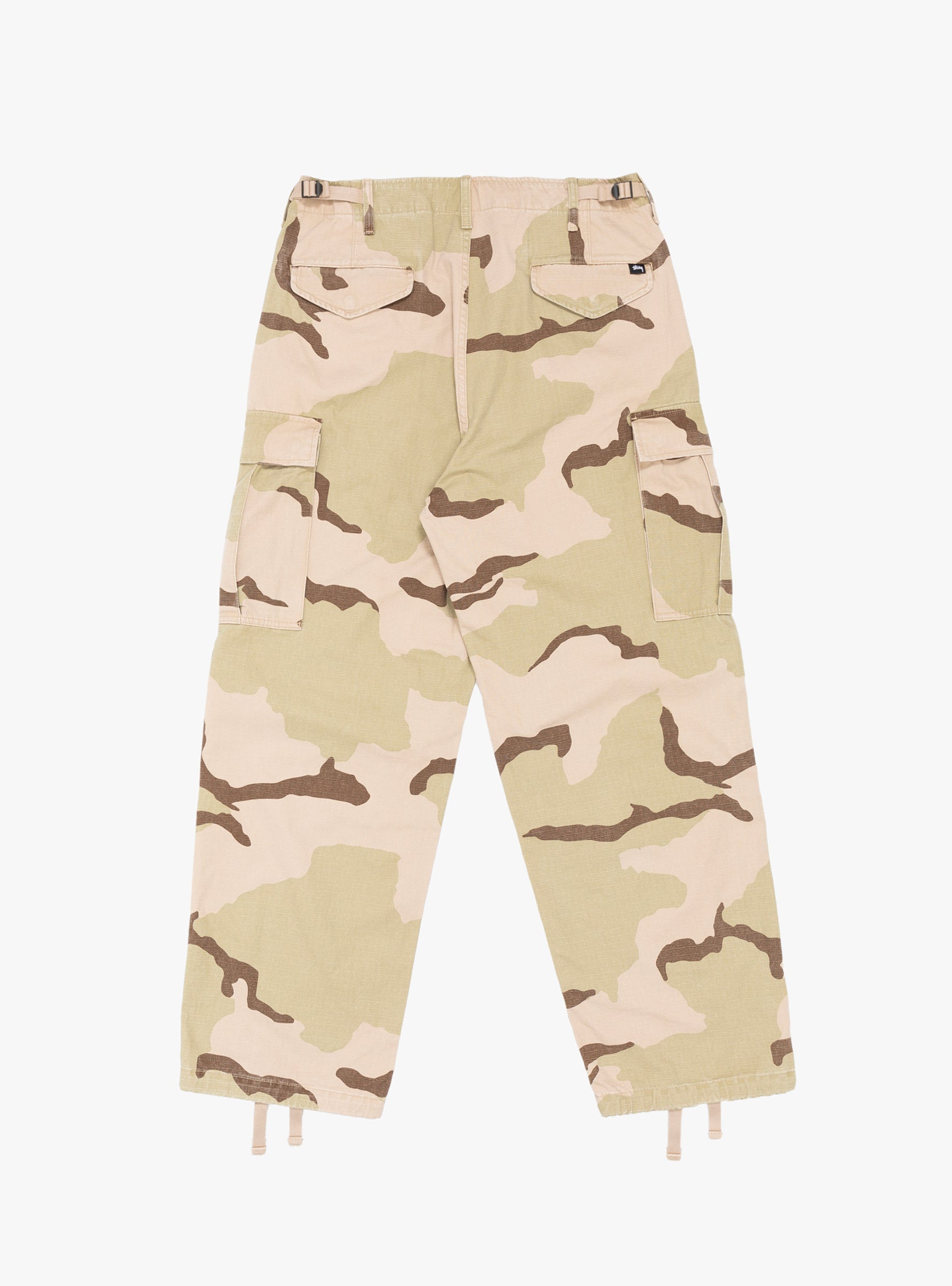 The Military Cargo Pant Ripstop in Sand Camo is cut to a relaxed fit with a classic button-and-zip closure. Featuring flap pockets, adjustable waist tabs, and drawcords at the cuffs, it's also designed with the Stüssy stock flag label on the rear pocket.