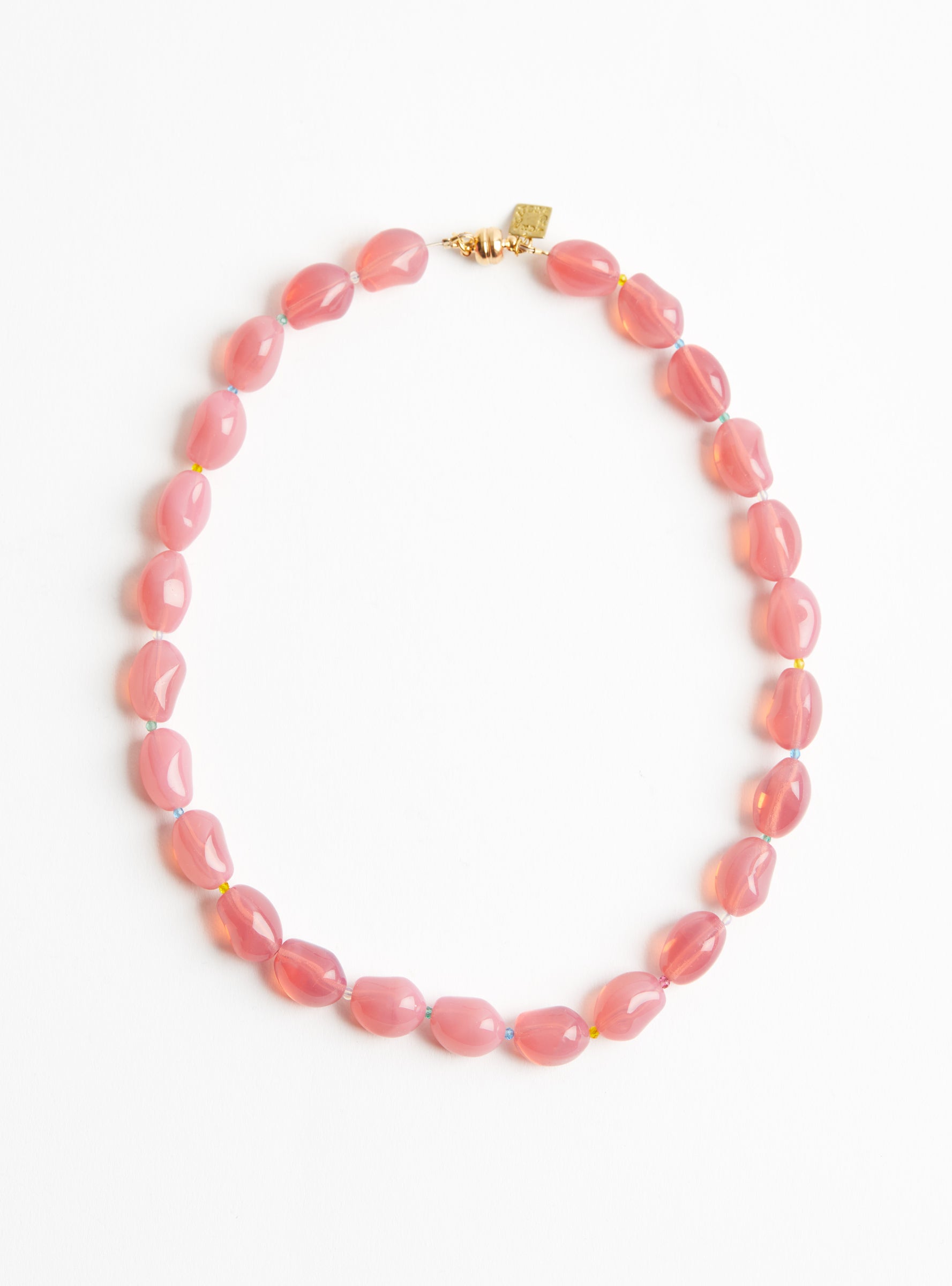 The Mini Classic Glass Beads Necklace comes in Pink from AGLAGLA and is handmade in Switzerland. It features pink, organically shaped glass beads combined with semi-precious stones and a stainless steel clasp.