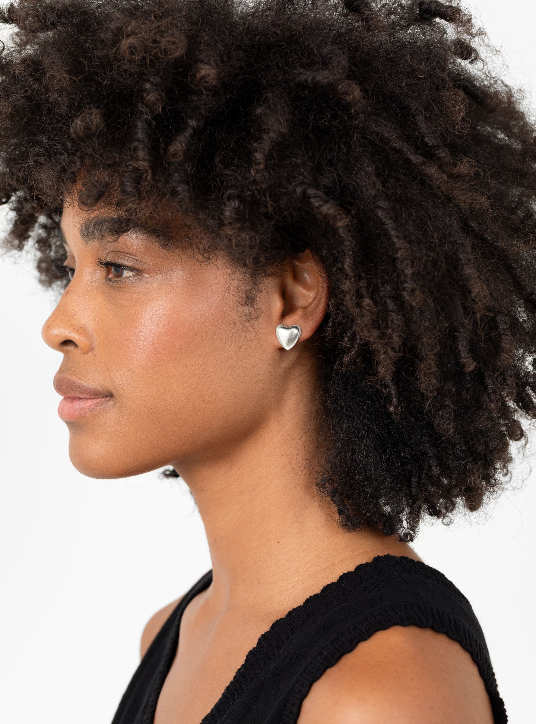The Mini Heart Studs by Annika Inez come in sterling silver with a high polish finish. Featuring a domed heart design and fastening with butterfly clasps.
