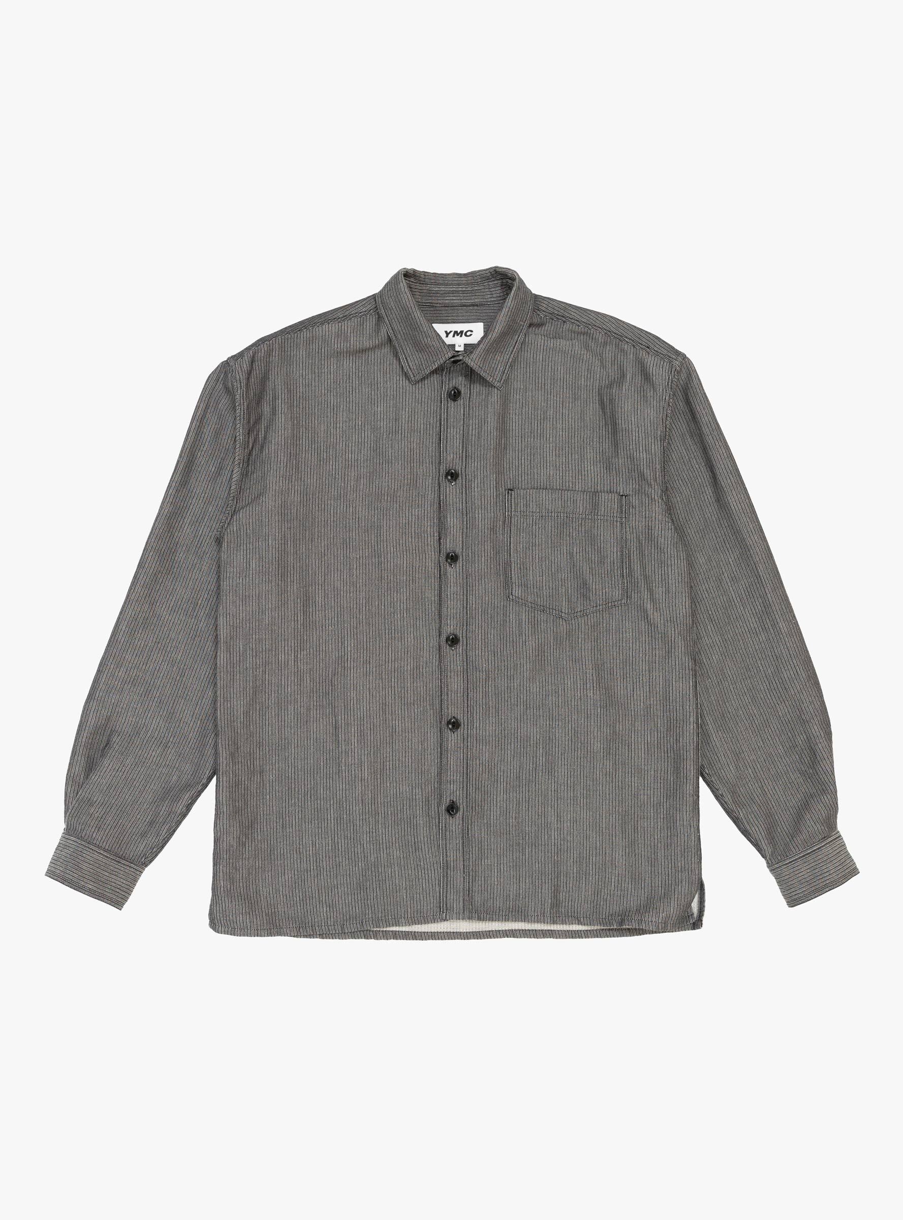 The Mitchum Shirt from YMC arrives in a charcoal. Cut from a heavy, but-soft cotton and linen blend, the shirt is made in Portugal and falls to a regular fit. A button-down closure and patch pocket at the chest finish the striped, workwear-inspired shirt.