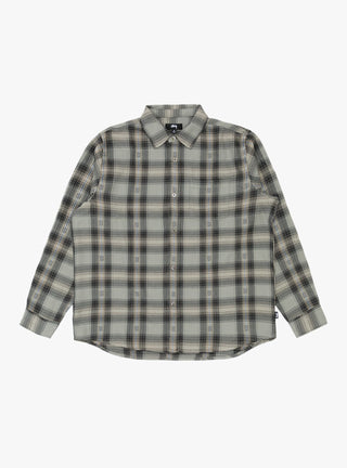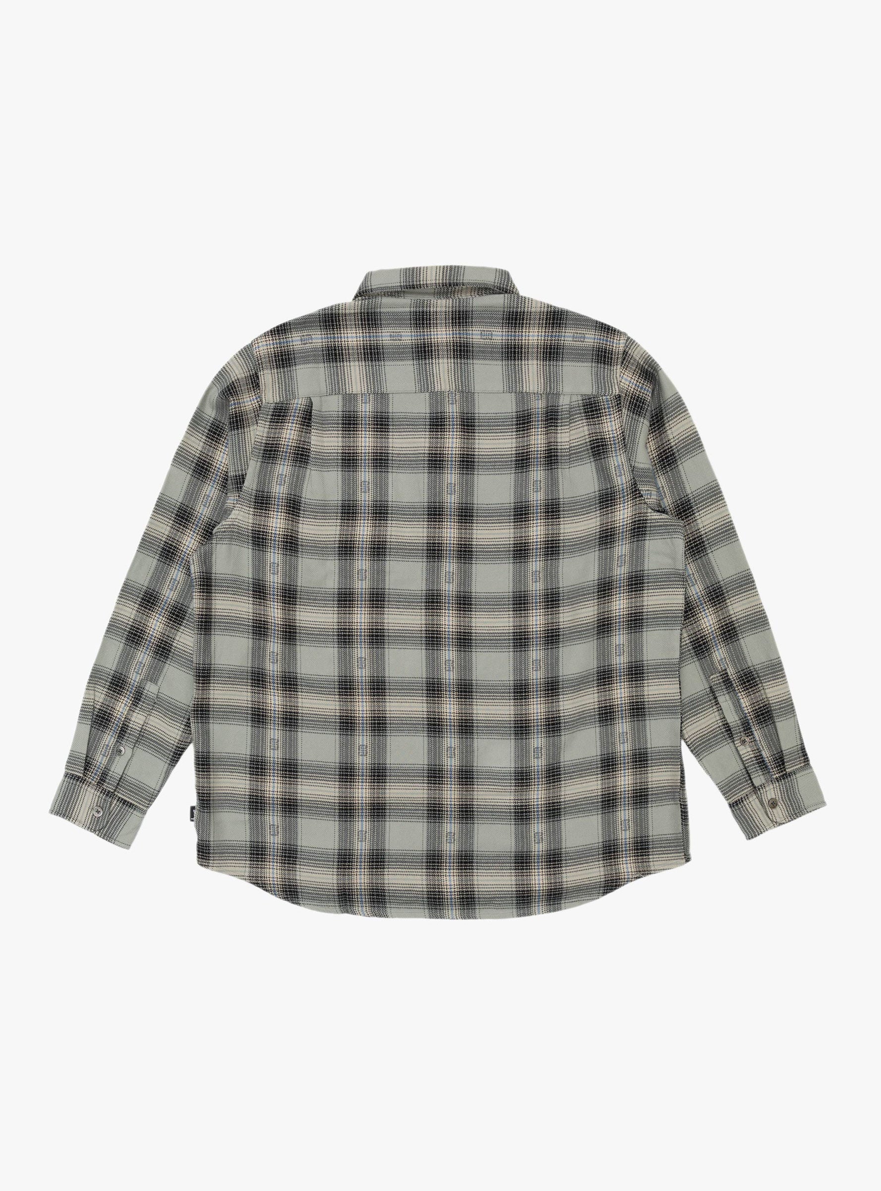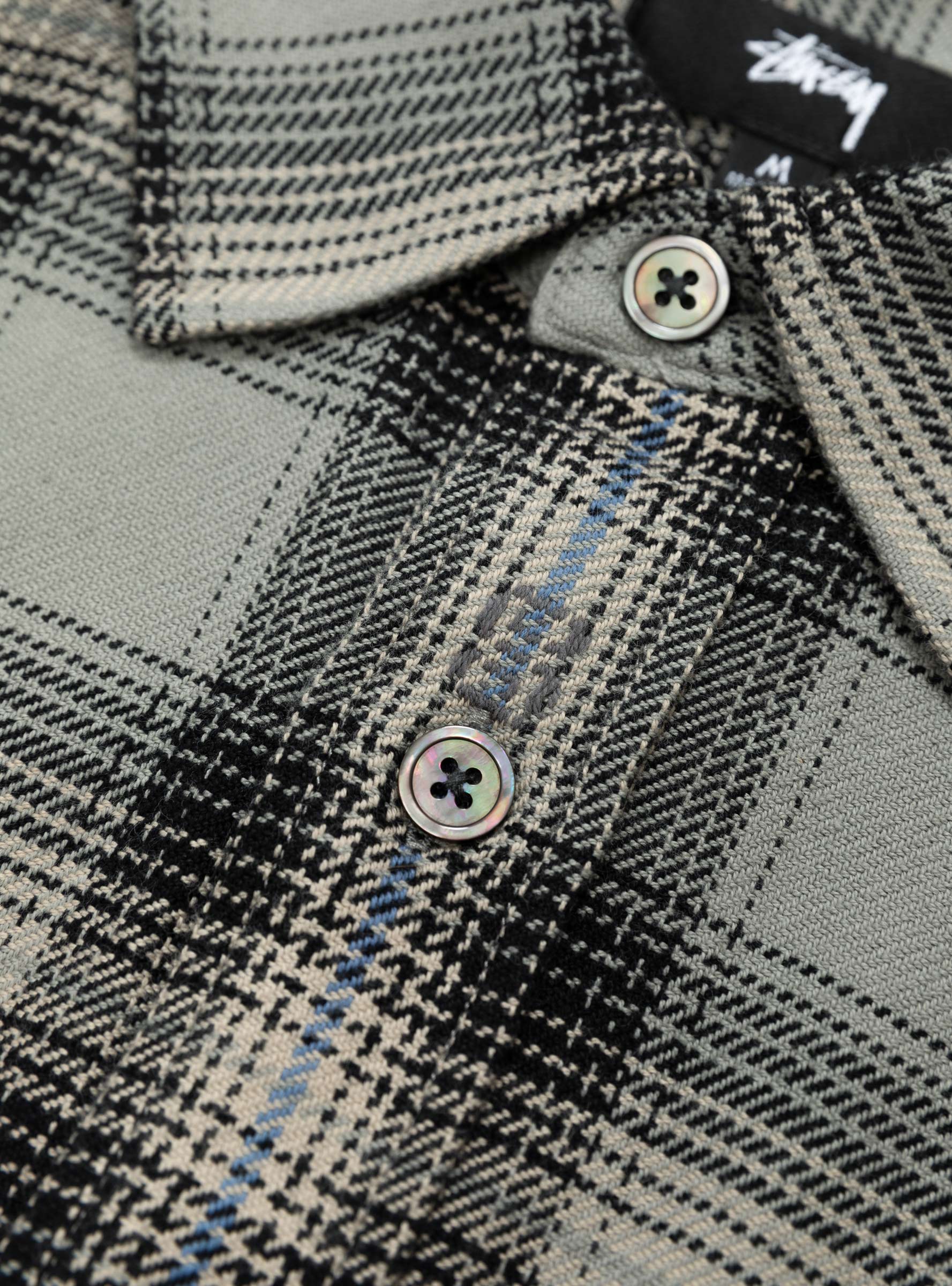 The Motif Plaid Shirt in Grey by Stüssy is made from midweight yarn-dyed cotton with an all-over woven 'S' motif. Featuring a classic collar, a single patch pocket, and the Stüssy stock flag label at the side seam, it's finished with mother-of-pearl buttons at the front.