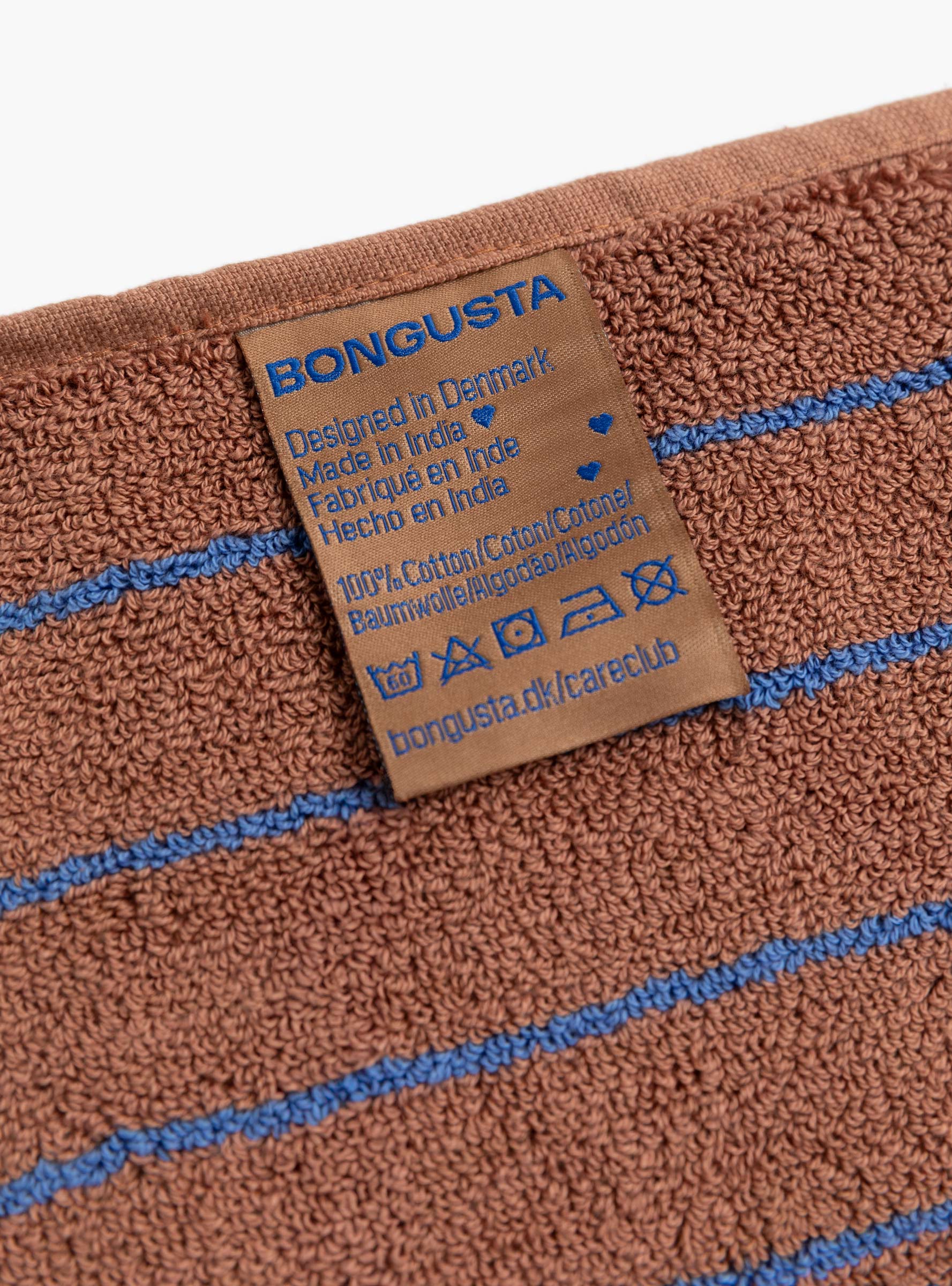The Naram Bathmat from Bongusta arrives in Camel and Ultramarine. Woven from 100% combed cotton using a double-thread construction, this OEKO-TEX® certified mat offers high absorbency and softness with a dense 1000gsm weight.