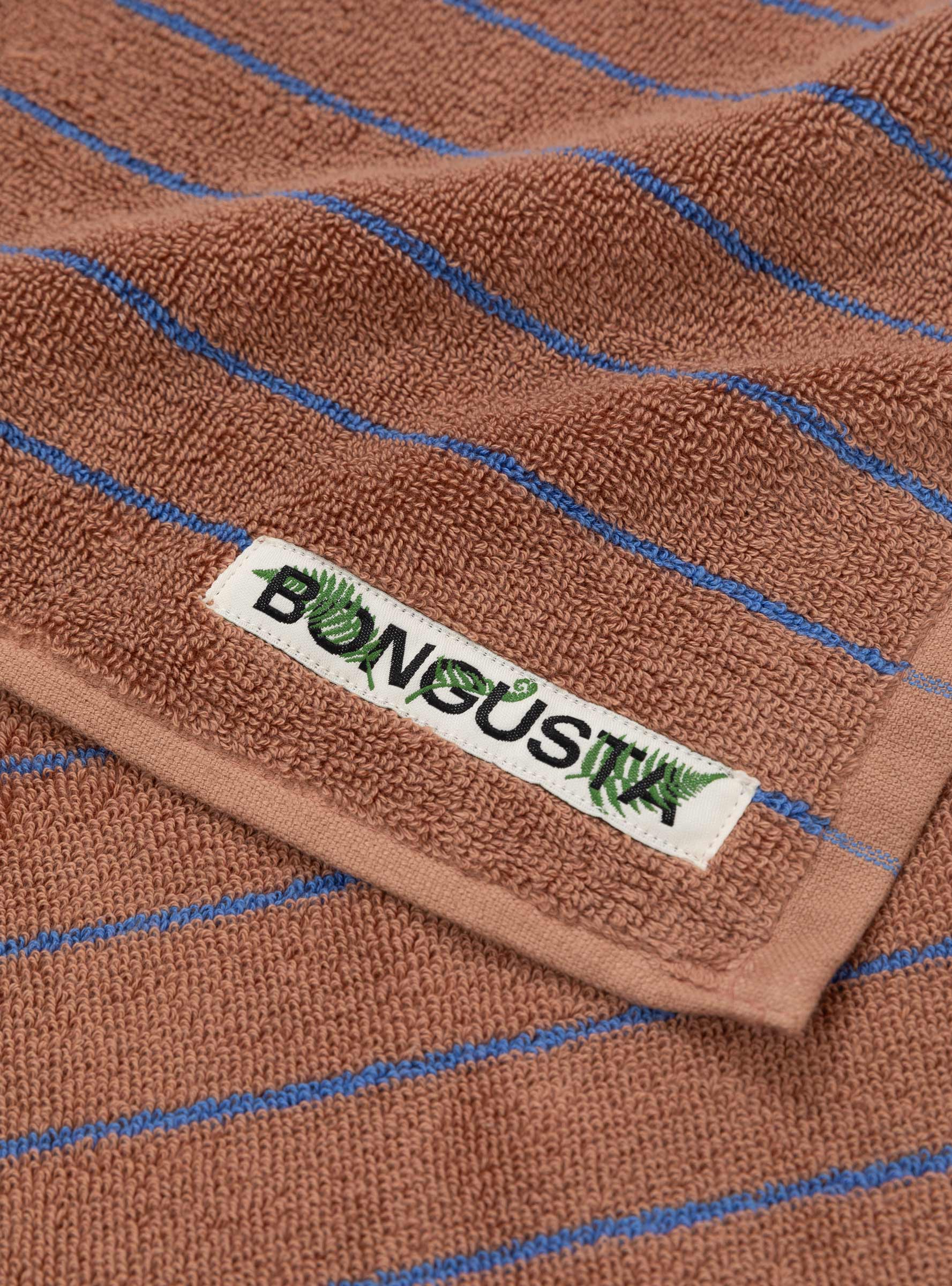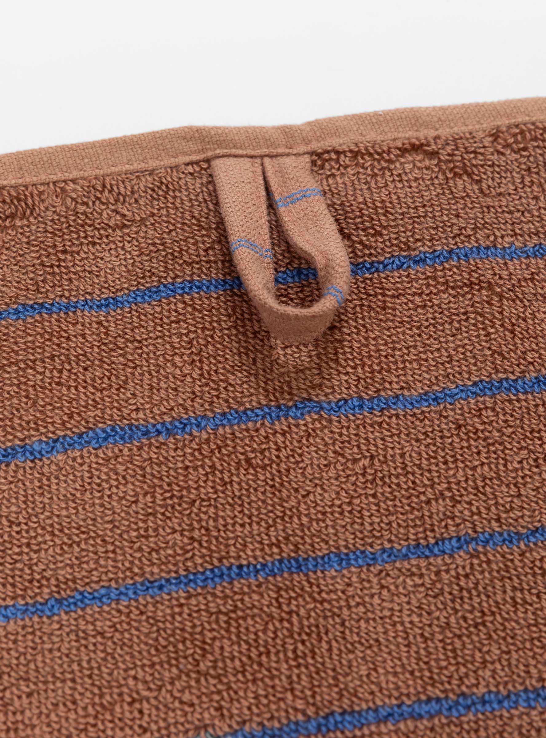 The Naram Hand Towel from Bongusta arrives in a caramel stripe colourway. Crafted from 600GSM combed cotton that is OEKO-TEX certified. The soft touch towel is made using extra long cotton fibres, making it highly absorbent.