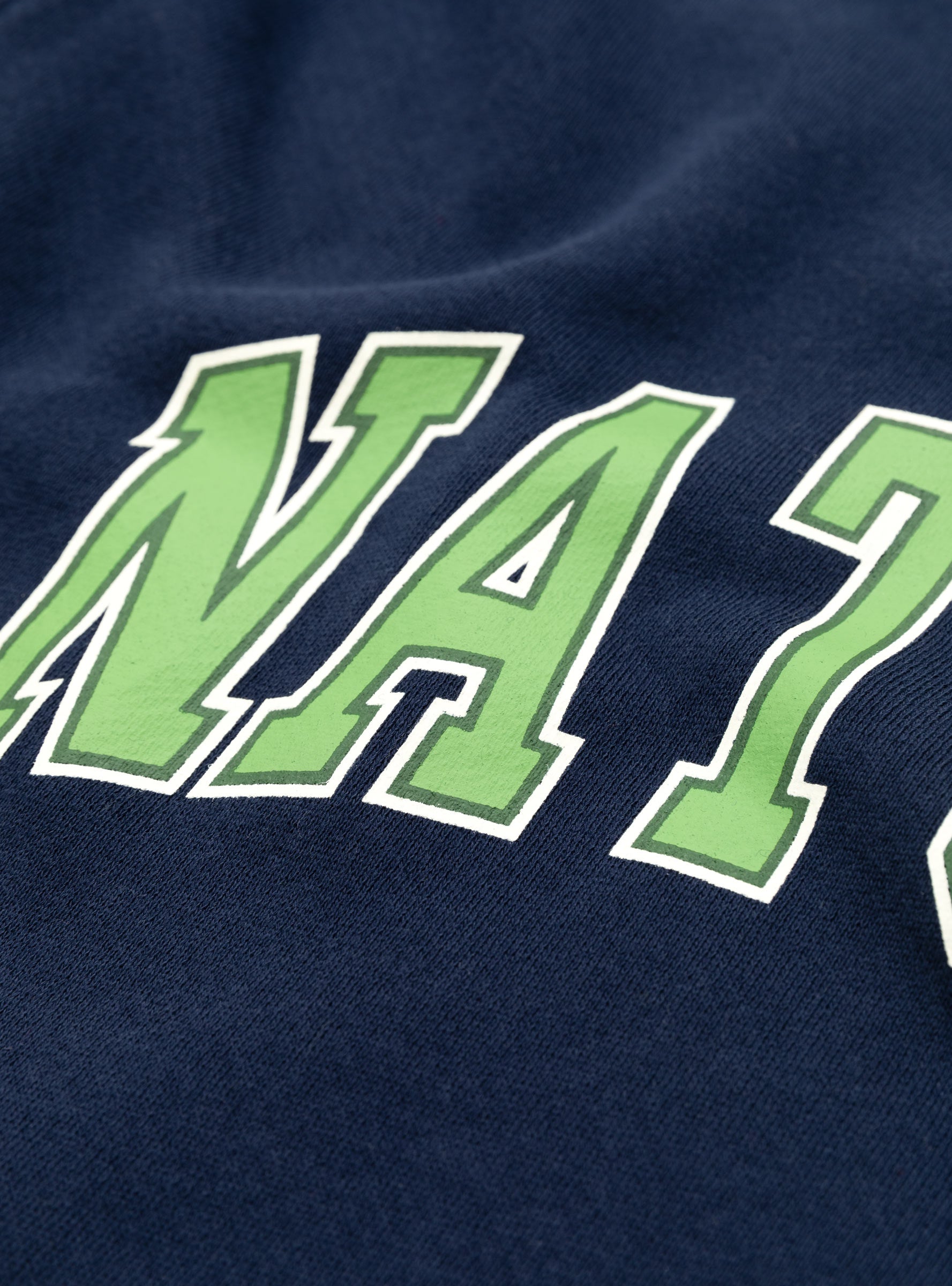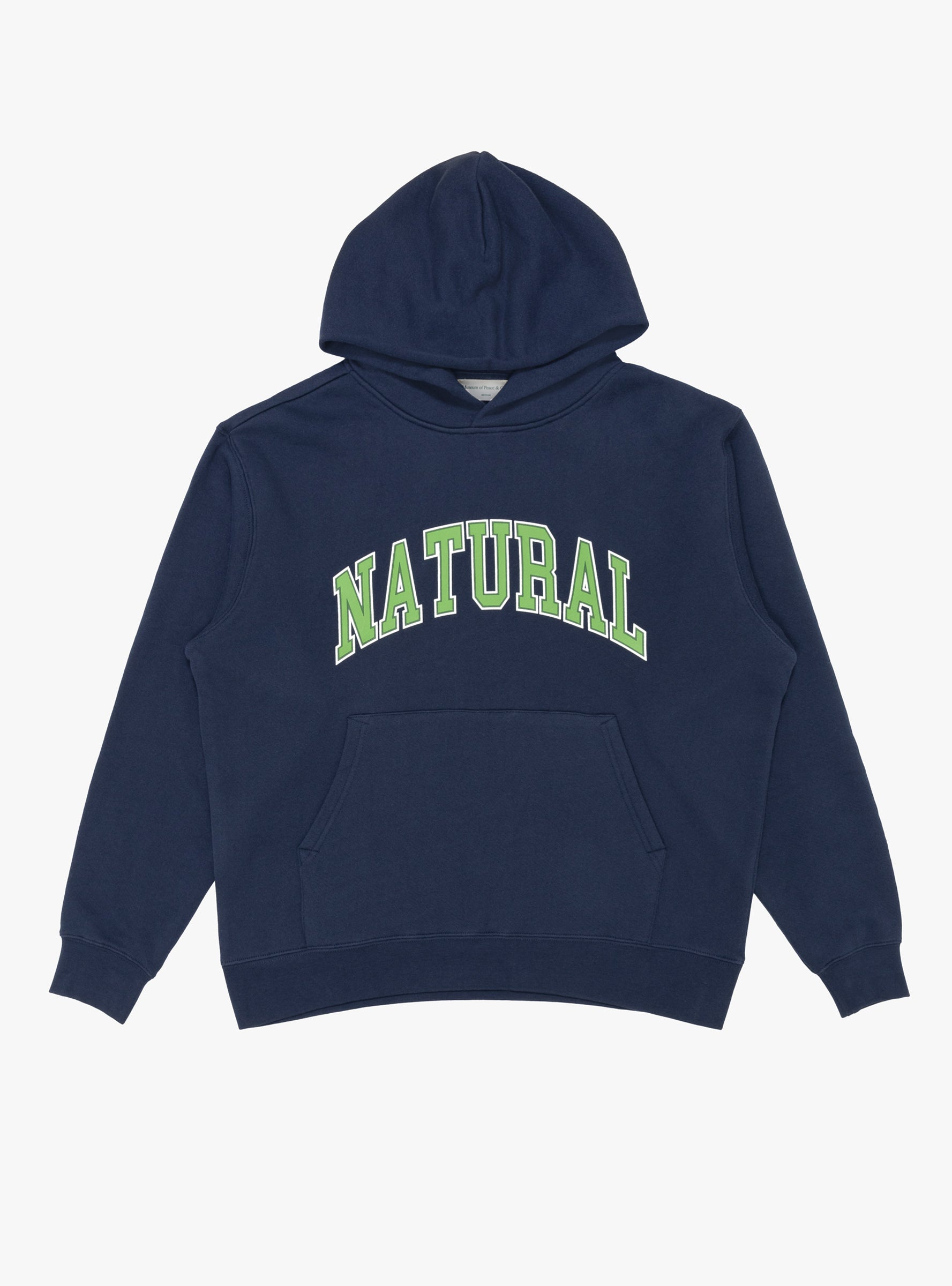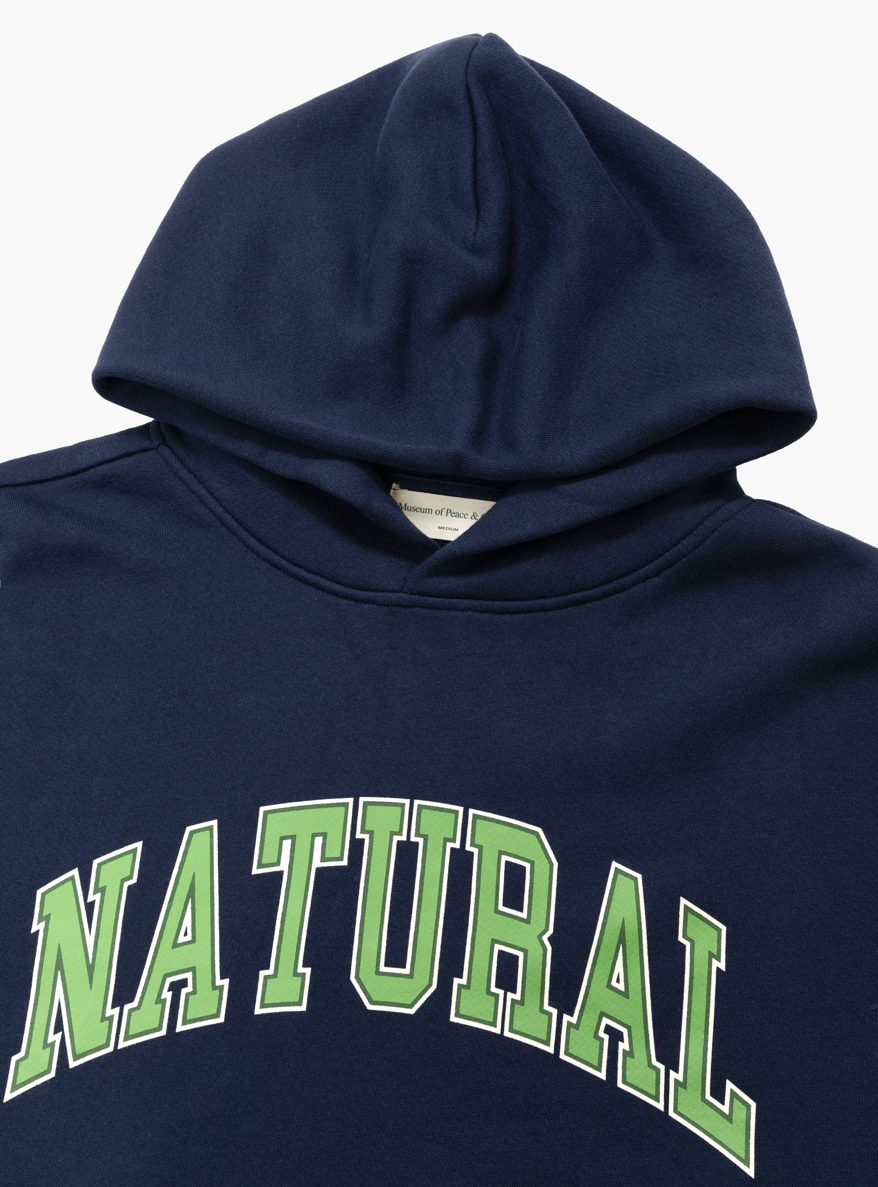 The Natural Hoodie from Museum of Peace and Quiet comes in Navy. Featuring a chest print and long sleeves, this hooded style also includes a convenient kangaroo pocket.
