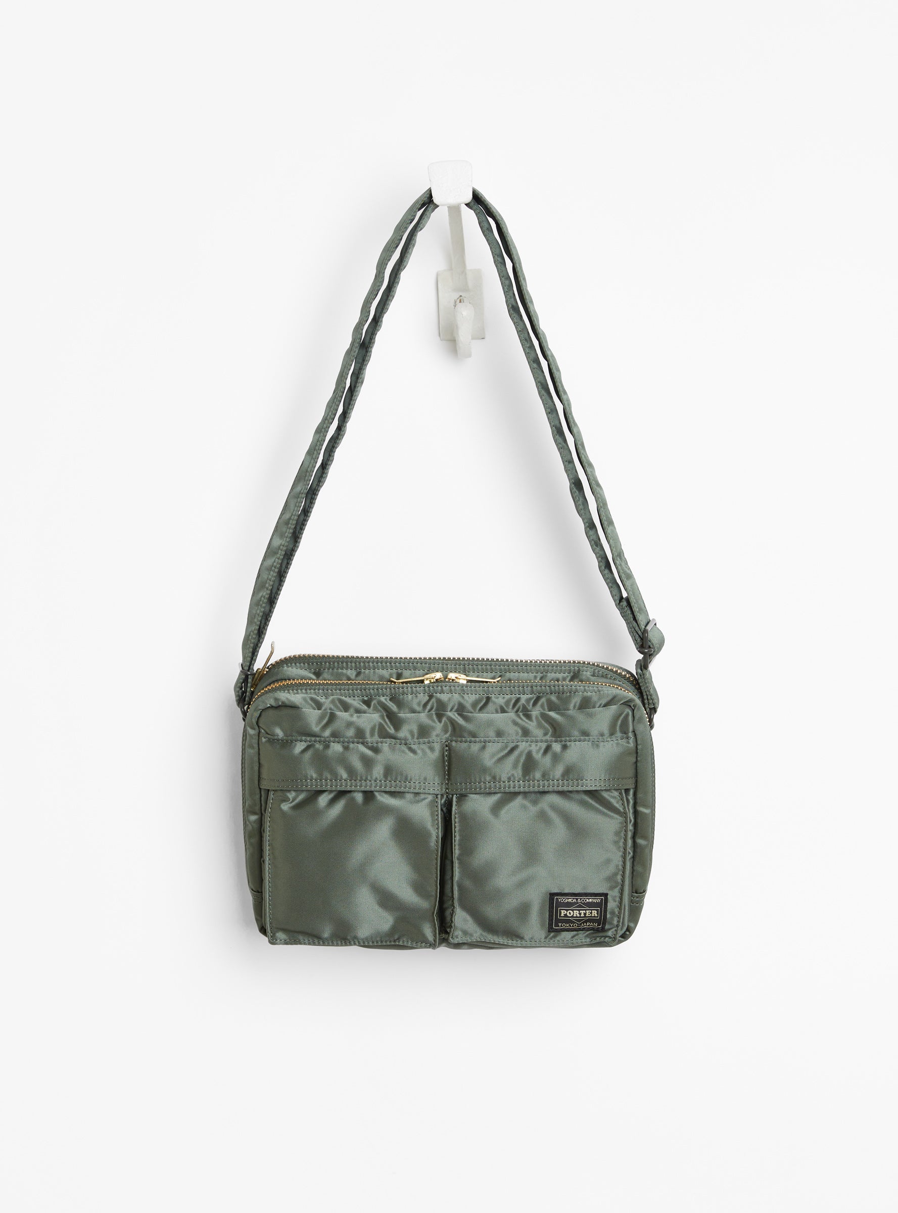 The TANKER Sling Bag from Porter Yoshida & Co. arrives in a sage green. The bag is made in Japan from a revolutionary 100% plant-based nylon that is derived from corn and castor oil. Inspired by MA-1 flight jackets, the sling bag features two zip pockets, which feature a vibrant orange lining as well as internal pockets for organisation. Two press stud front pockets as well as a rear velcro pocket offer further storage solutions and an adjustable strap finishes the piece.