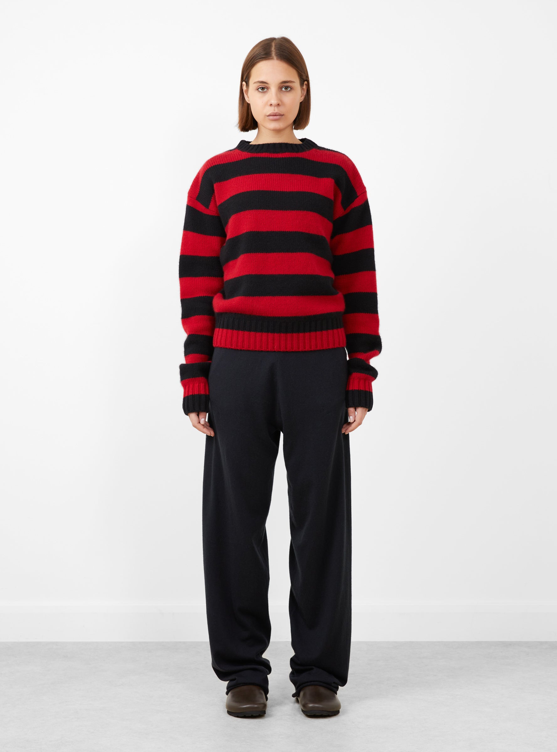The No.373 Oldie Jumper from Extreme Cashmere arrives in a 'scream' colourway, a black and red stripe. Made from cashmere, the sweatshirt falls to a relaxed fit with dropped shoulders and longer sleeves. Ribbed trims finish the crewneck knit.