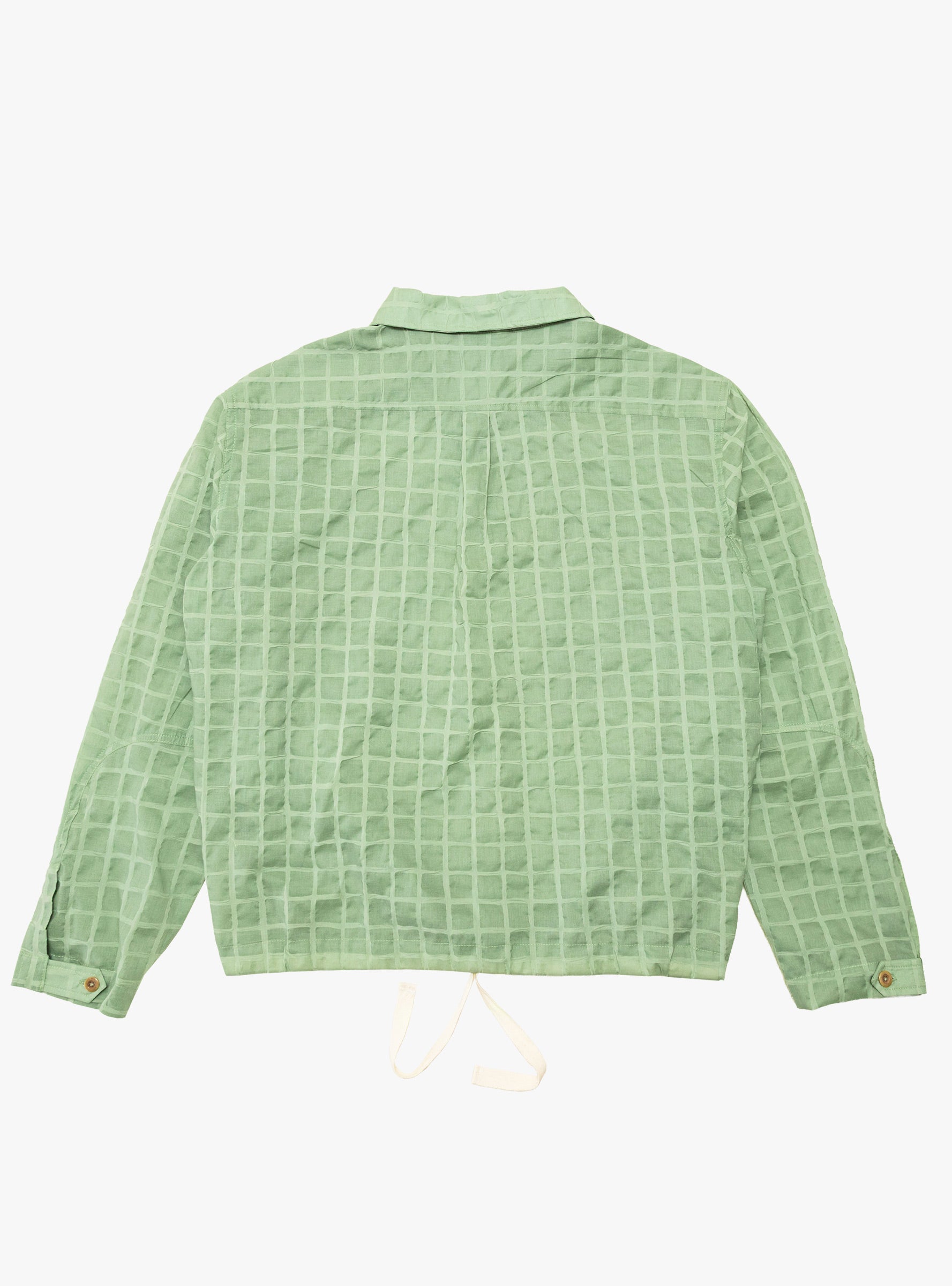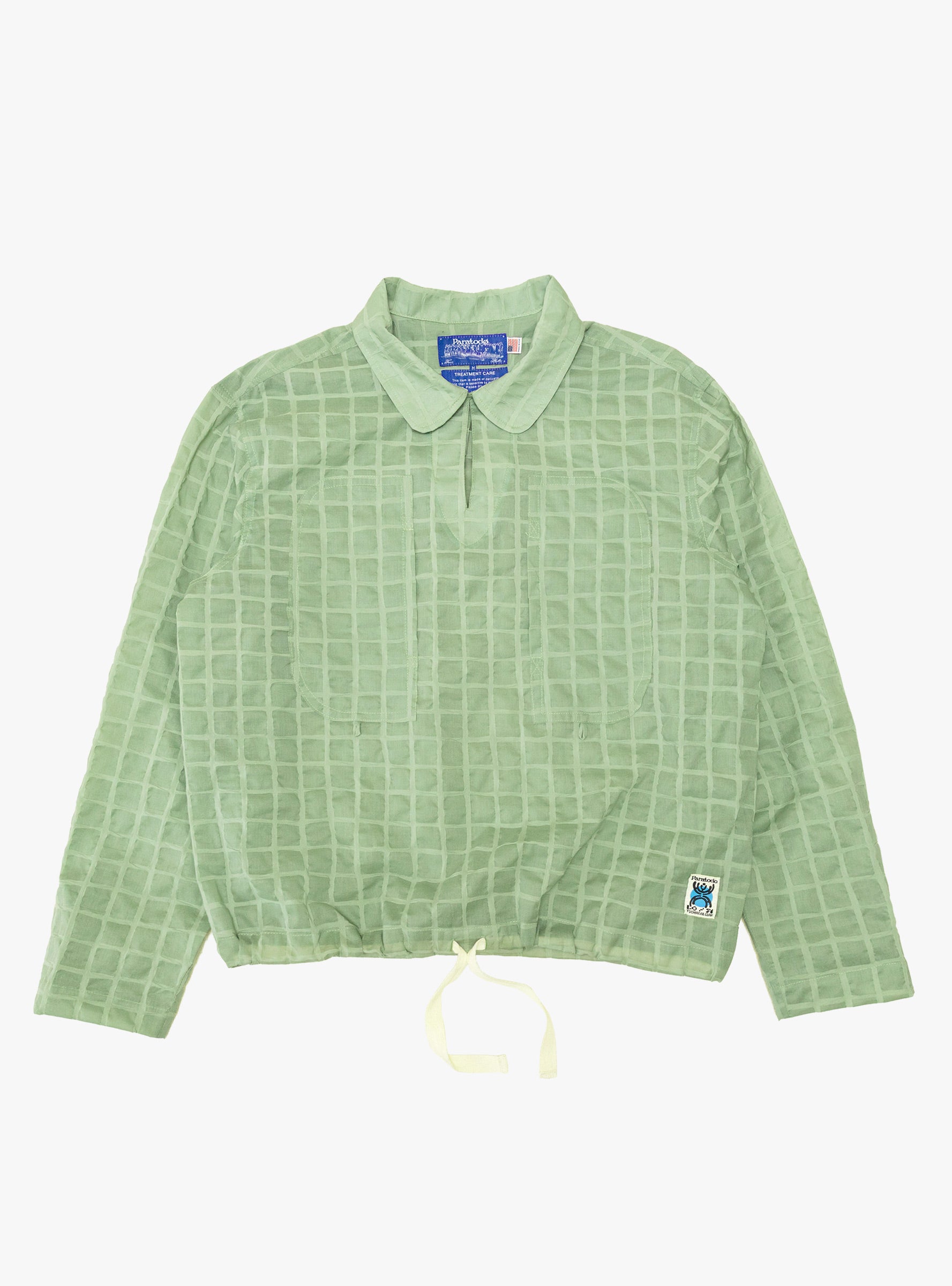 The Obra Shirt from Paratodo comes in Sage Tortoise and is made from cotton dyed-ripple organza imported from Japan. Inspired by vintage workwear, it features a V-neckline, large double chest pockets with hook loops, a waist drawstring, and vintage resin buttons. Hand-block printed fabrics and the Lo-Fi Technical Gear label complete the design.