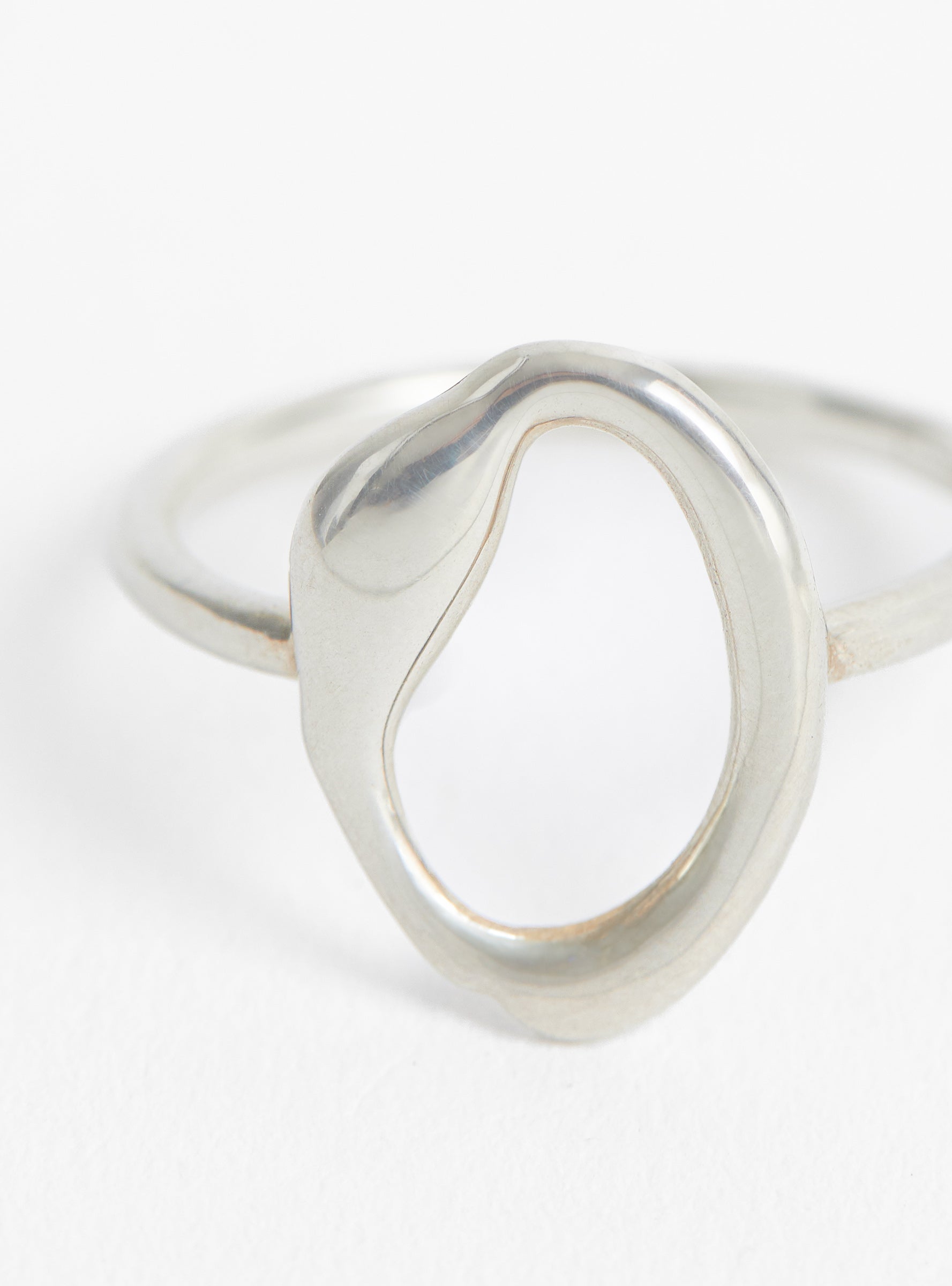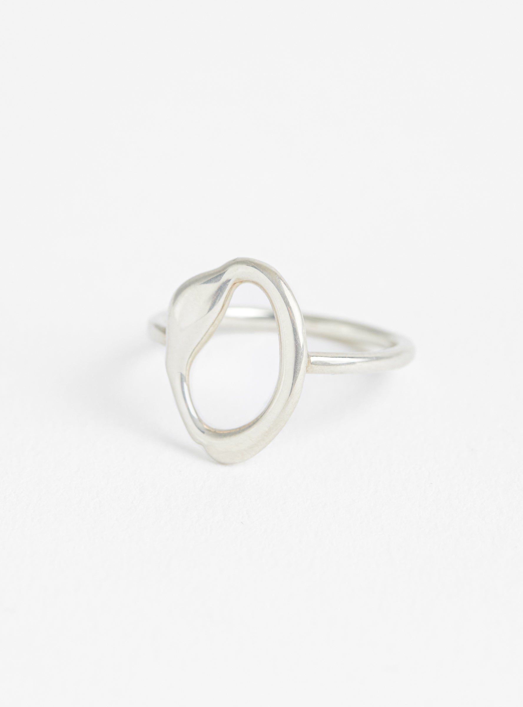 The Organic Oval by Modern Weaving is hand formed in porcelain and then moulded, cast and mounted in 925 Sterling Silver on a thin silver half round wire. The result is a ring that takes the delicate and organic form of an oval.