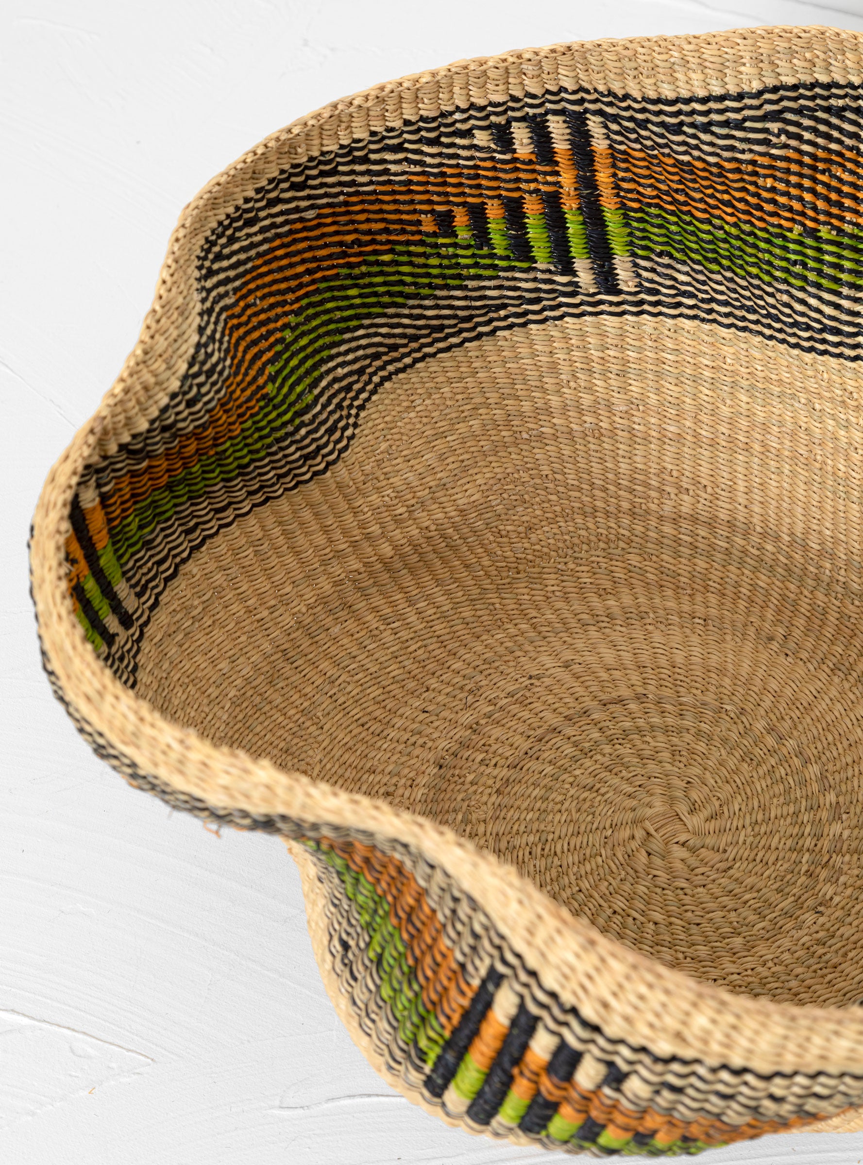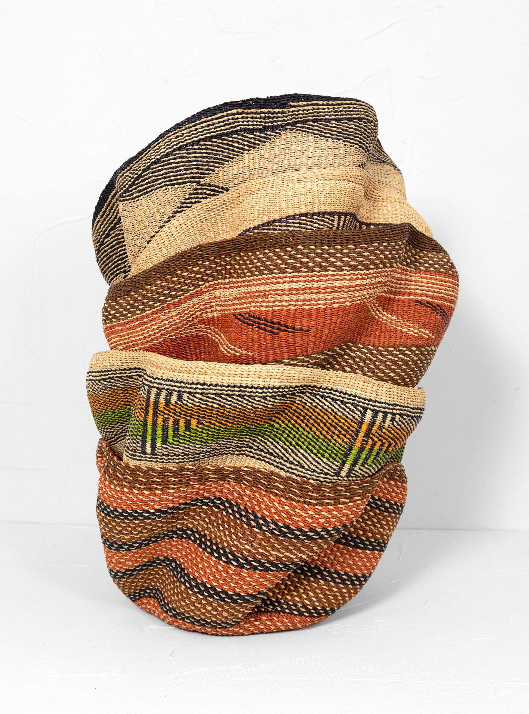 The Baba Tree Basket Company has been handweaving baskets for over fifteen years in Bolgatanga, Ghana, otherwise known as The City of Baskets. The Gurunsi artisans use a time-honoured weaving technique using elephant grass, resulting in vibrant waved baskets