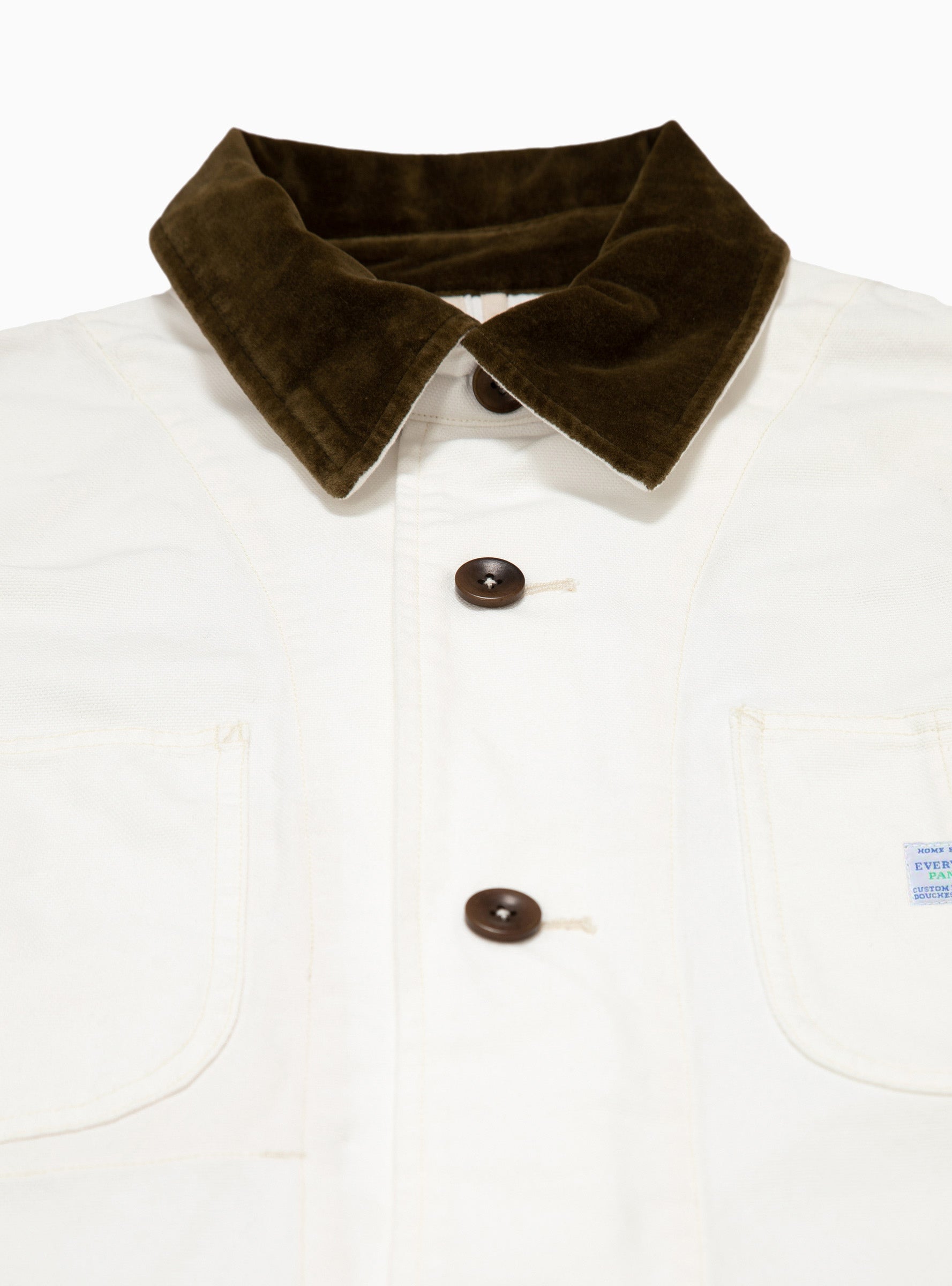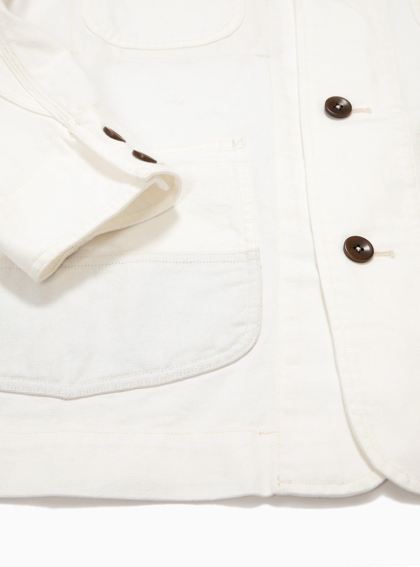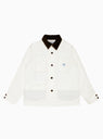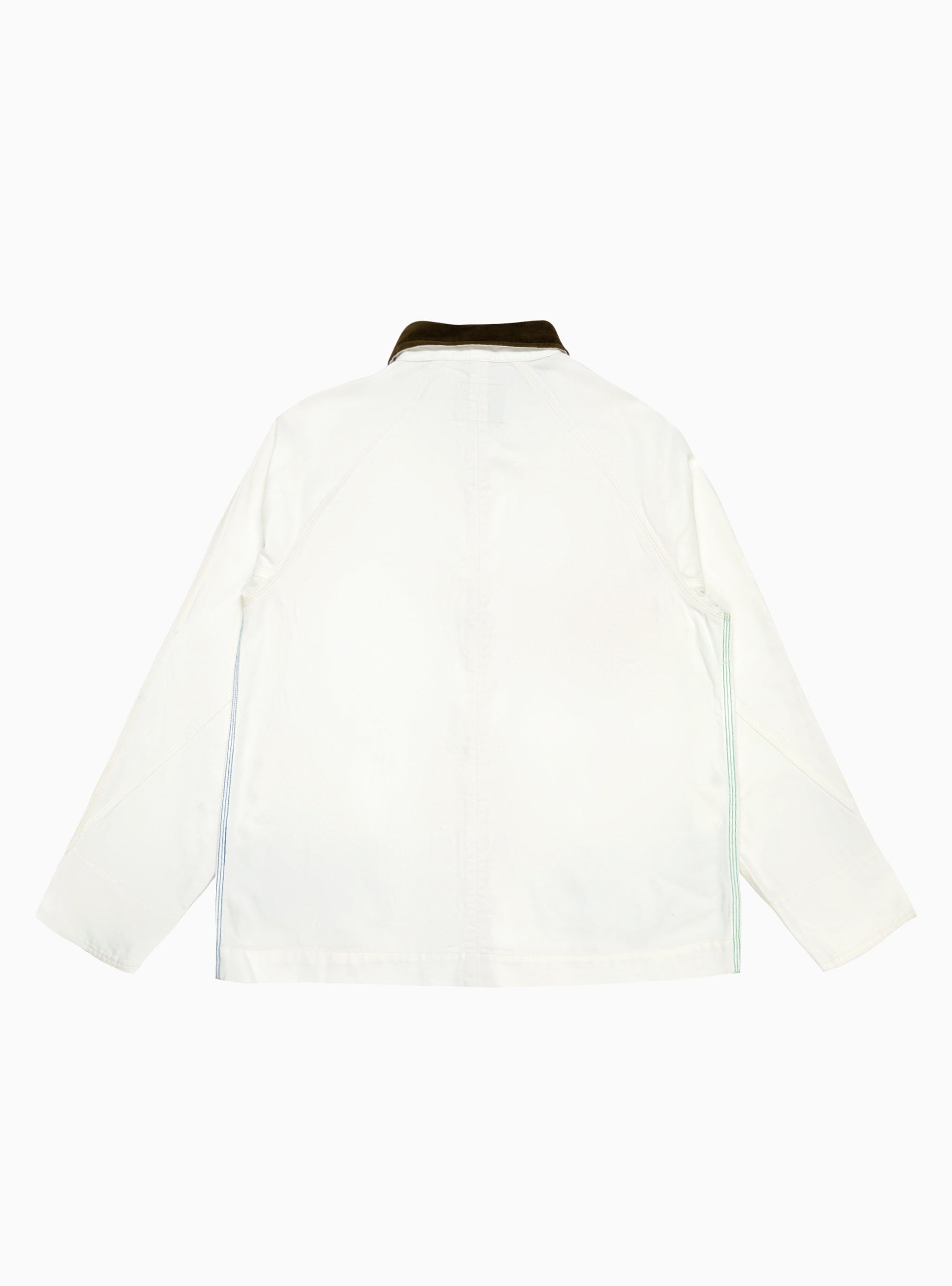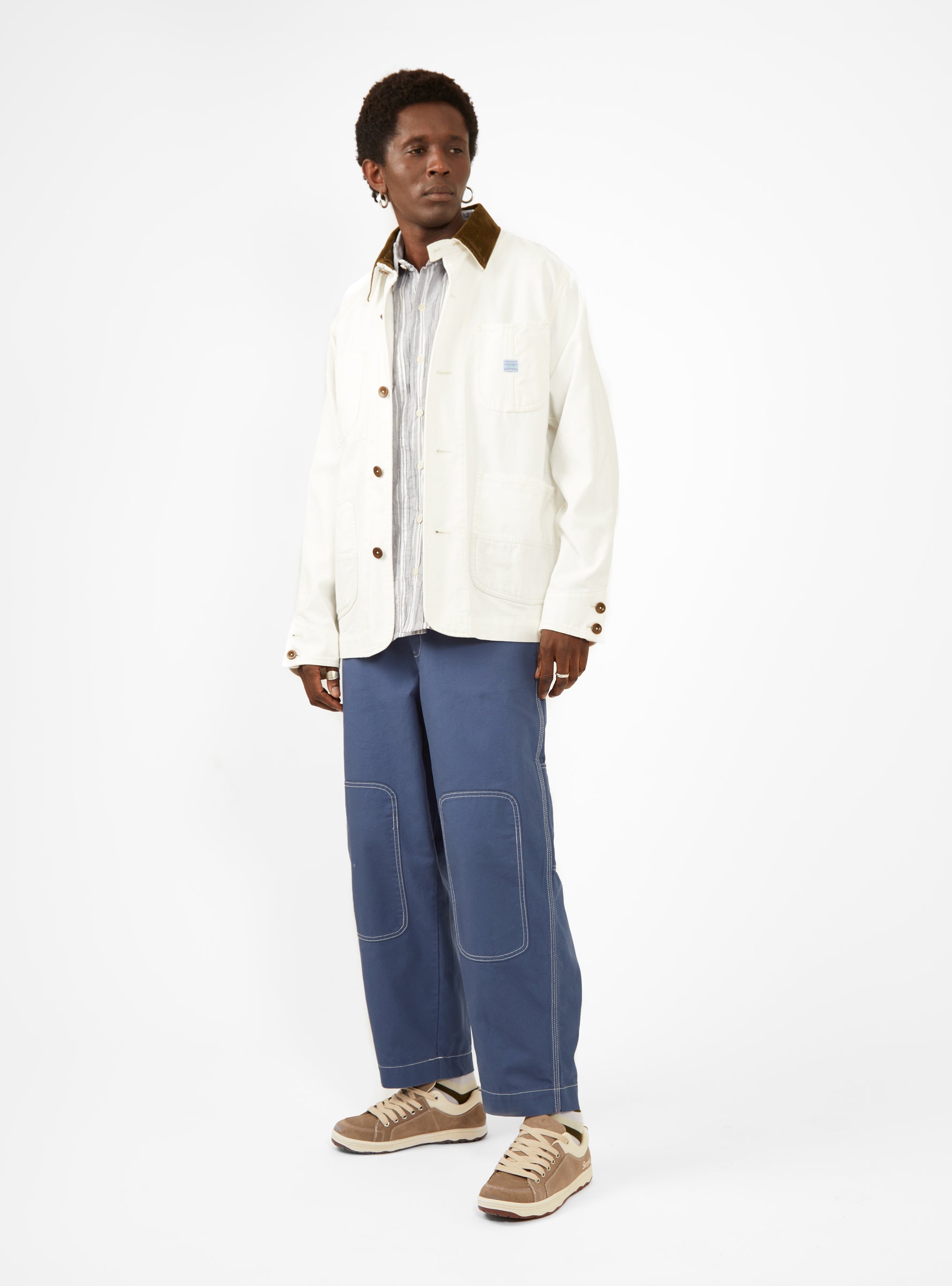 For SS23, Home Party introduces two workwear-inspired jackets, including this white Paperclip style. Made sturdy cotton canvas, it’s cut to a relaxed silhouette with an assortment of patch pockets, including a press-stud ‘paperclip’ compartment. Corozo nut buttons fasten the front and cuffs.