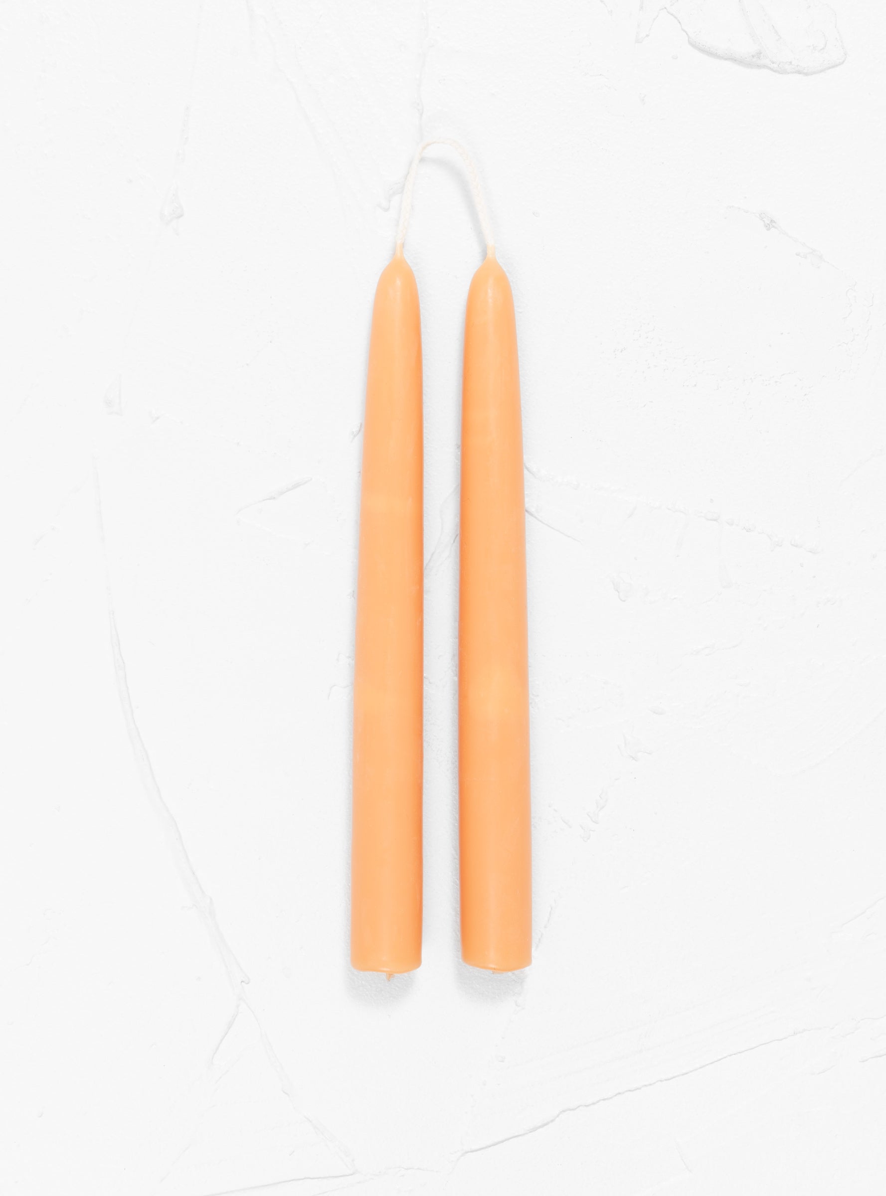 Wax Atelier employs traditional techniques to create this pair of Peach Blossom Dining candles, made in the UK from pure beeswax with cotton wicks.