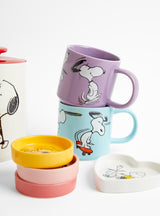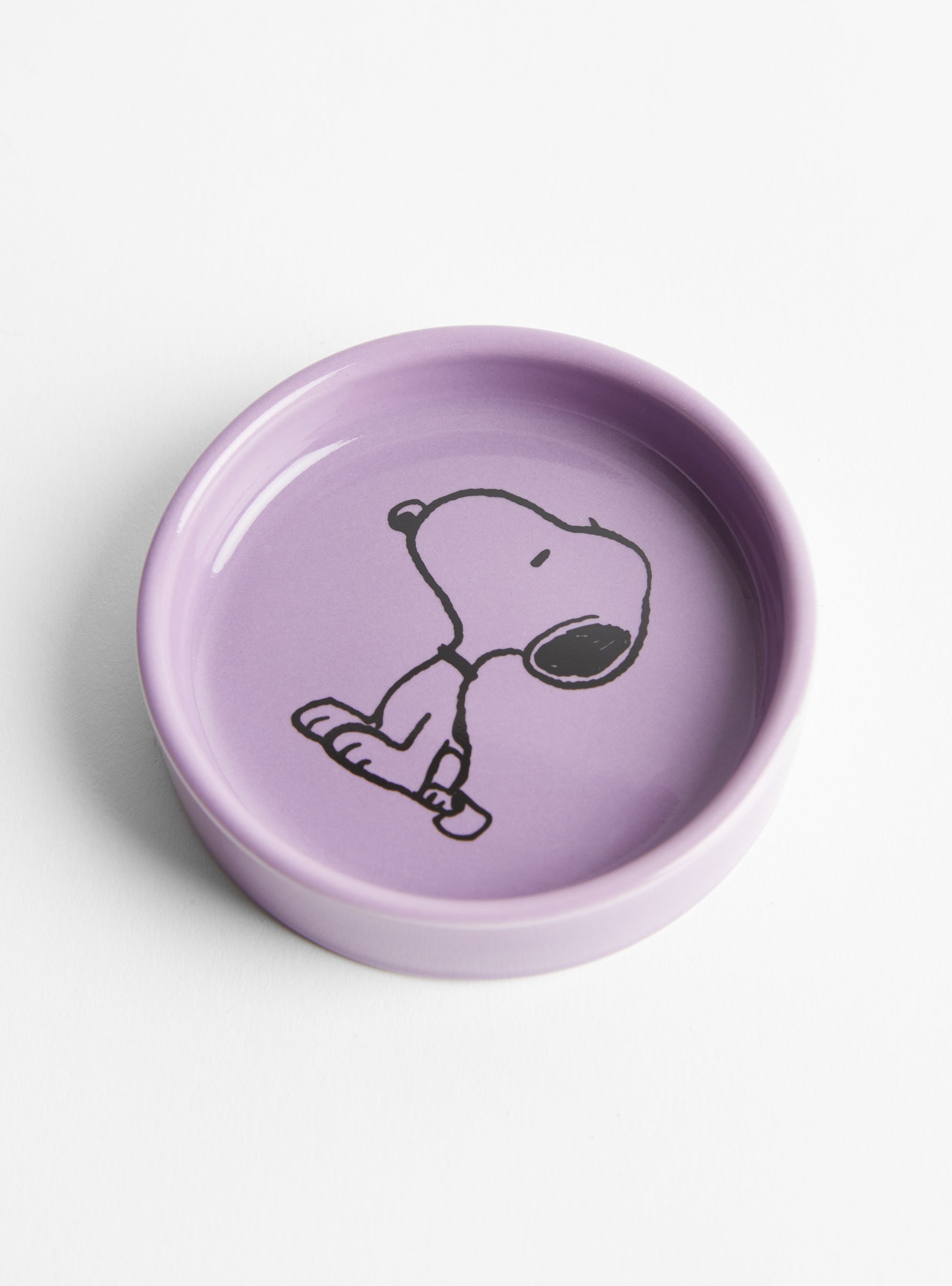 This Peanuts Pin Dish in purple features a bold Snoopy sketch on a coloured glaze. Measuring 8cm wide, this dish is perfect for rings, keys or small trinkets, and comes in a vibrant slide-out gift box.