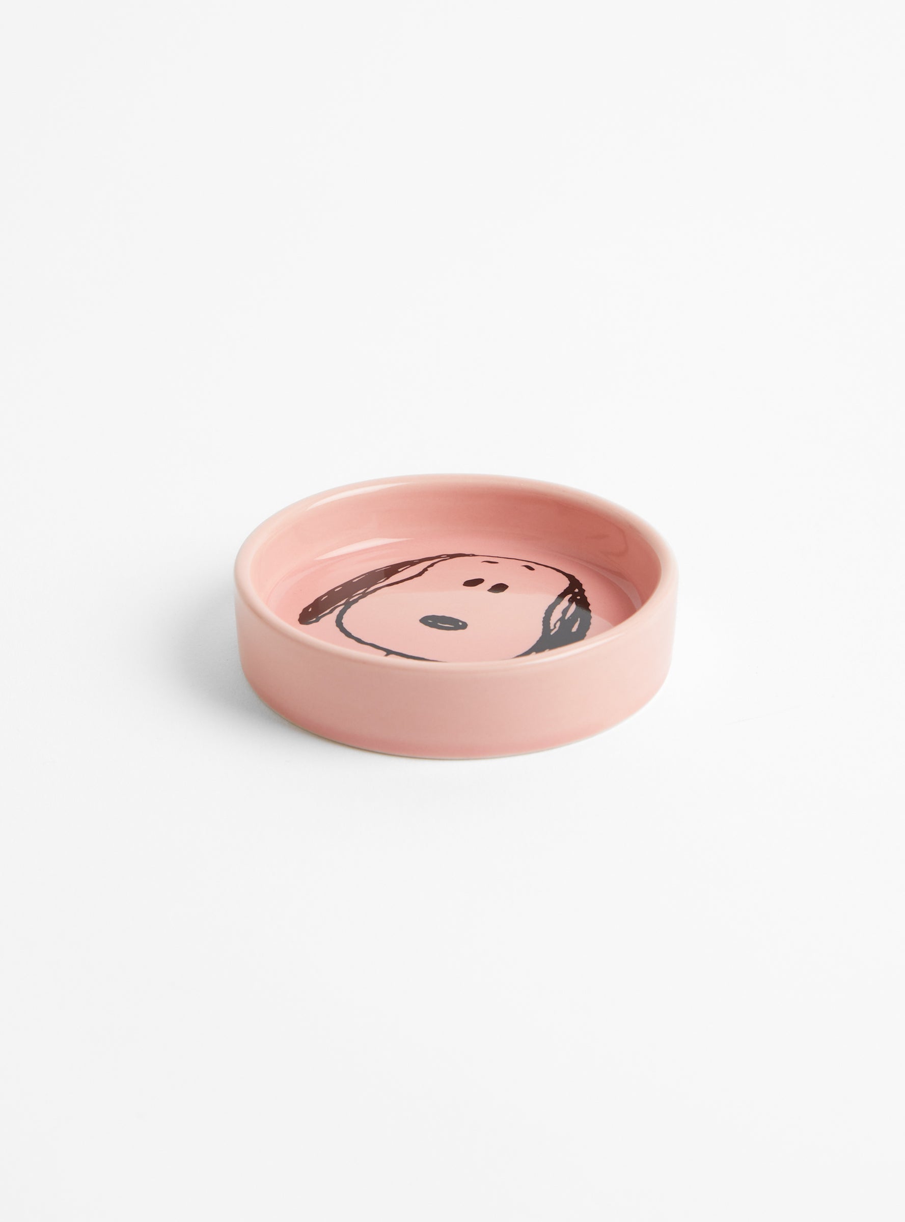 This Peanuts Pin Dish in pale pink features a bold Snoopy Visage sketch on a coloured glaze. Measuring 8cm wide, this dish is perfect for rings, keys or small trinkets, and comes in a vibrant slide-out gift box.