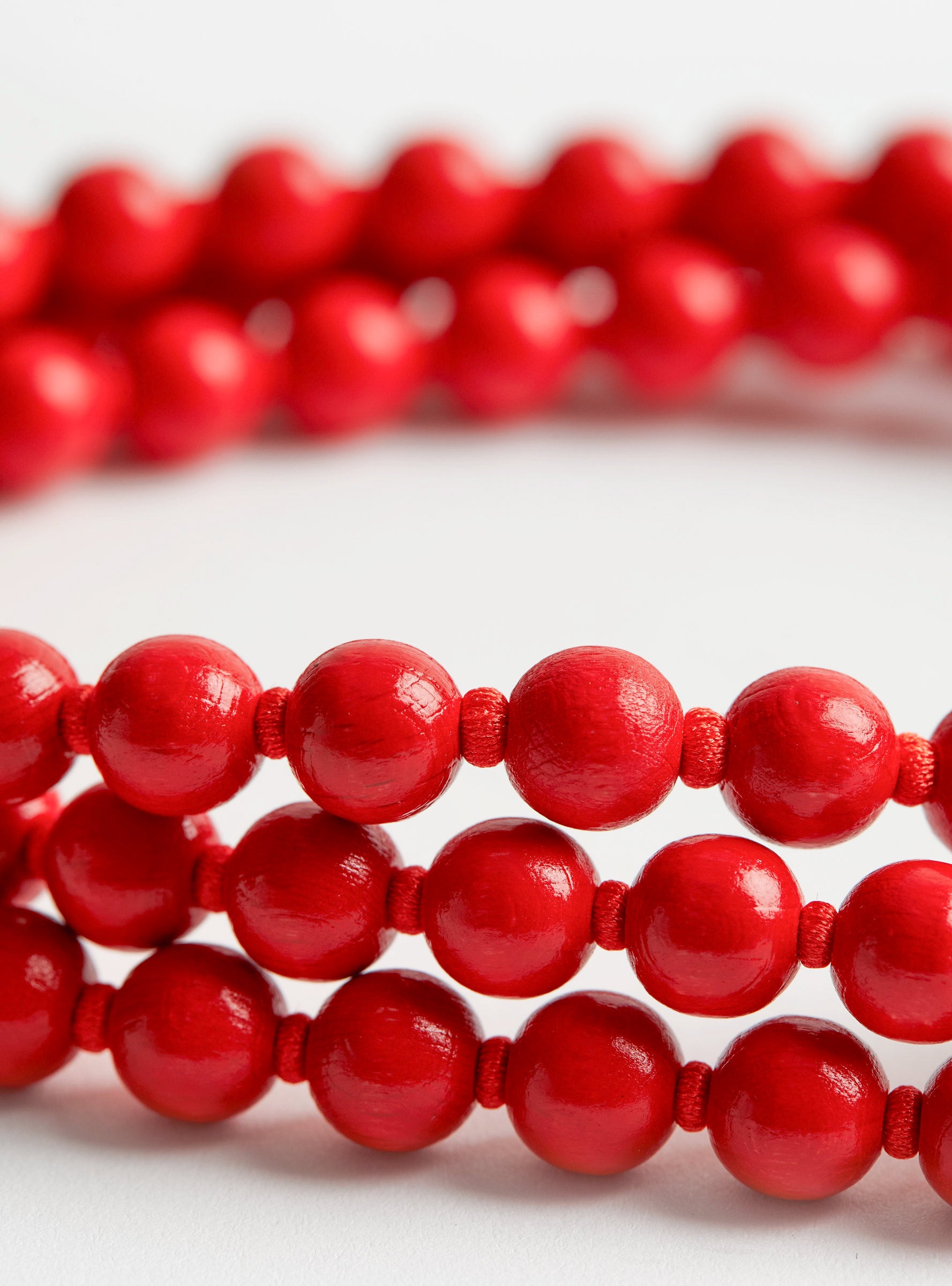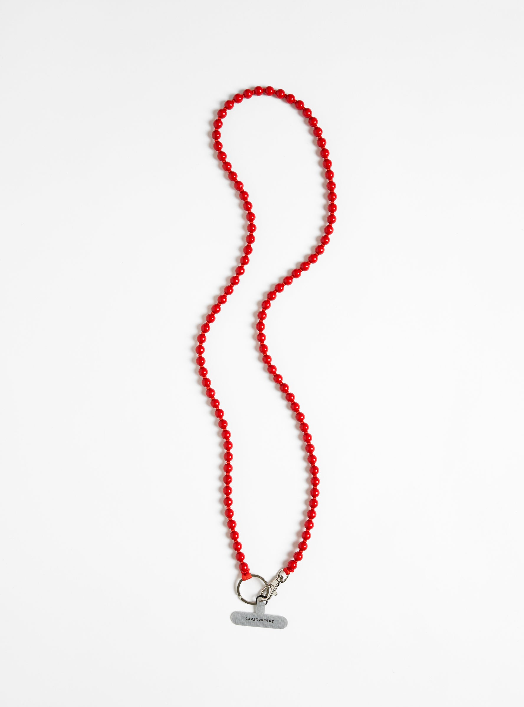Handmade in Berlin, the Phone Necklace from Ina Seifart comes in Red with an elastic band and threaded wooden beads.
