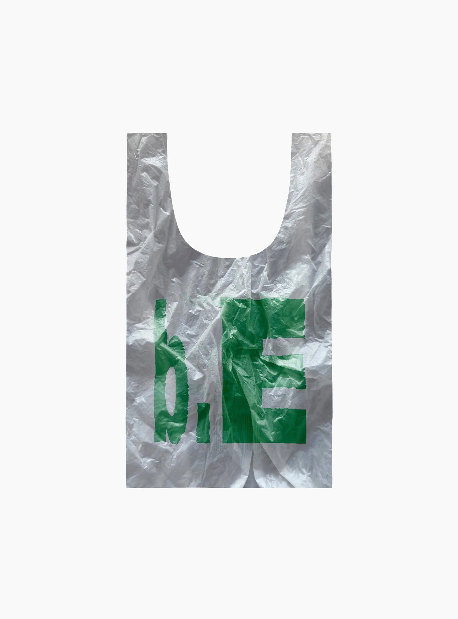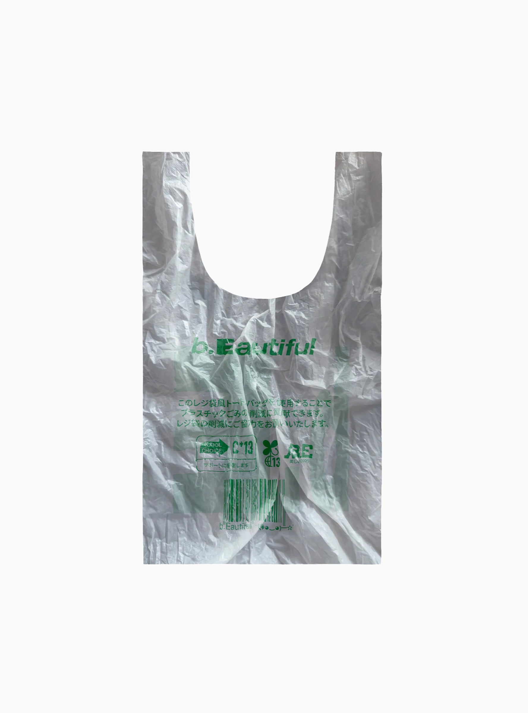The Plastic Reusable Bag in White and Green from b.Eautiful is crafted from recycled polyester and designed for everyday use. Lightweight yet durable, it folds into a compact pouch for easy storage and expands to hold up to 50 lbs when in use.