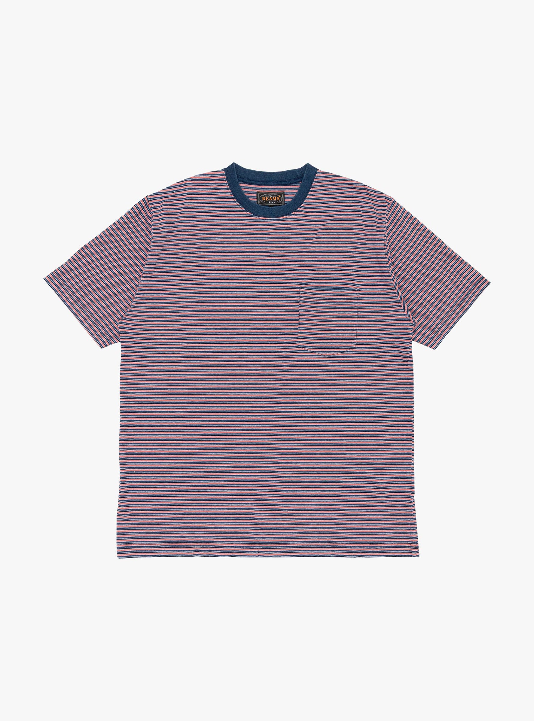 The Pocket Tee Off Red Indigo from Beams Plus is cut from 100% cotton with a stripe design. Finished with a crewneck collar and single chest patch pocket, it offers a clean everyday style.