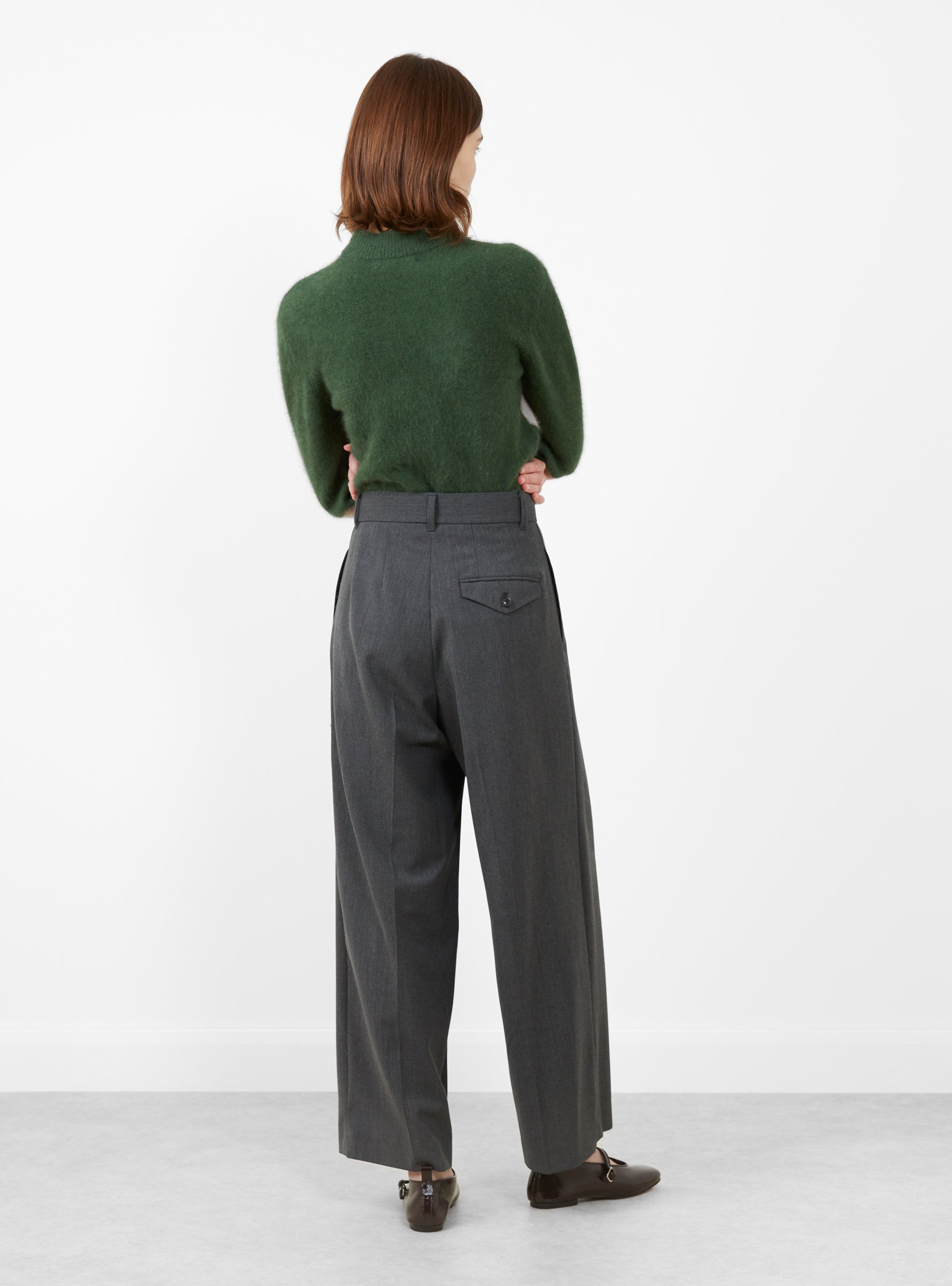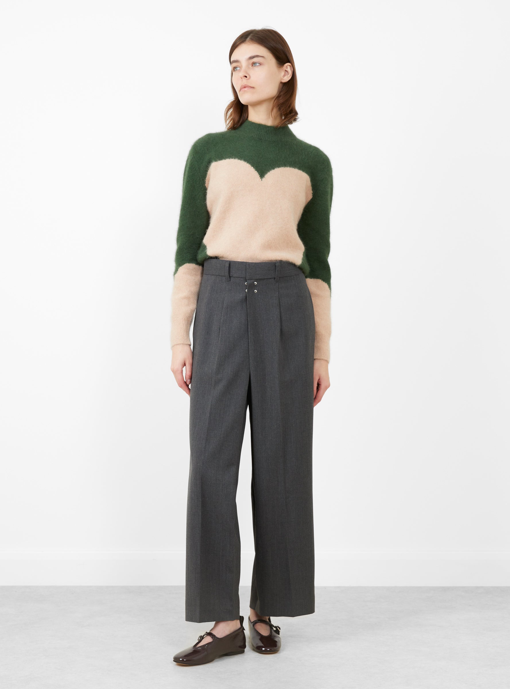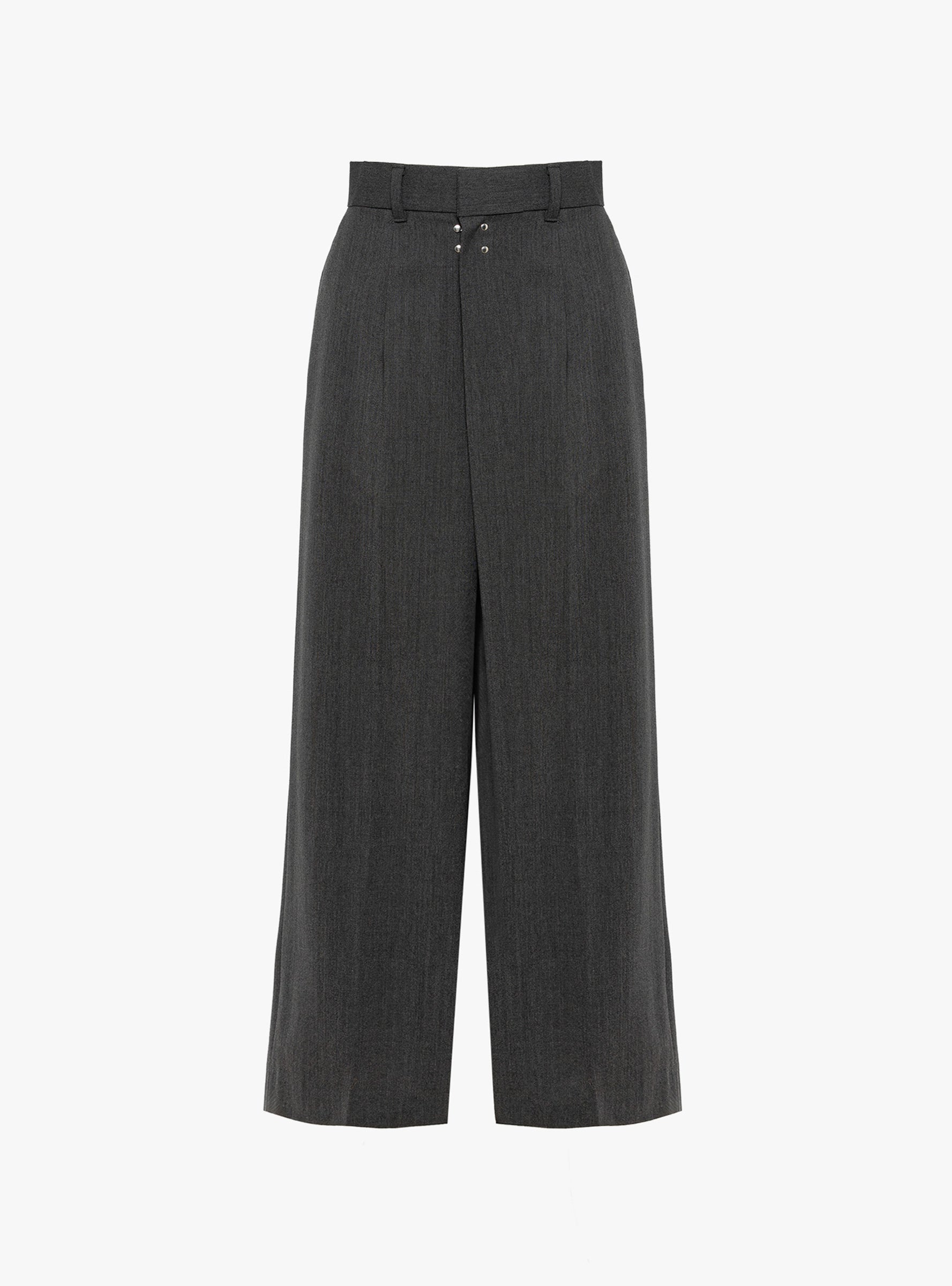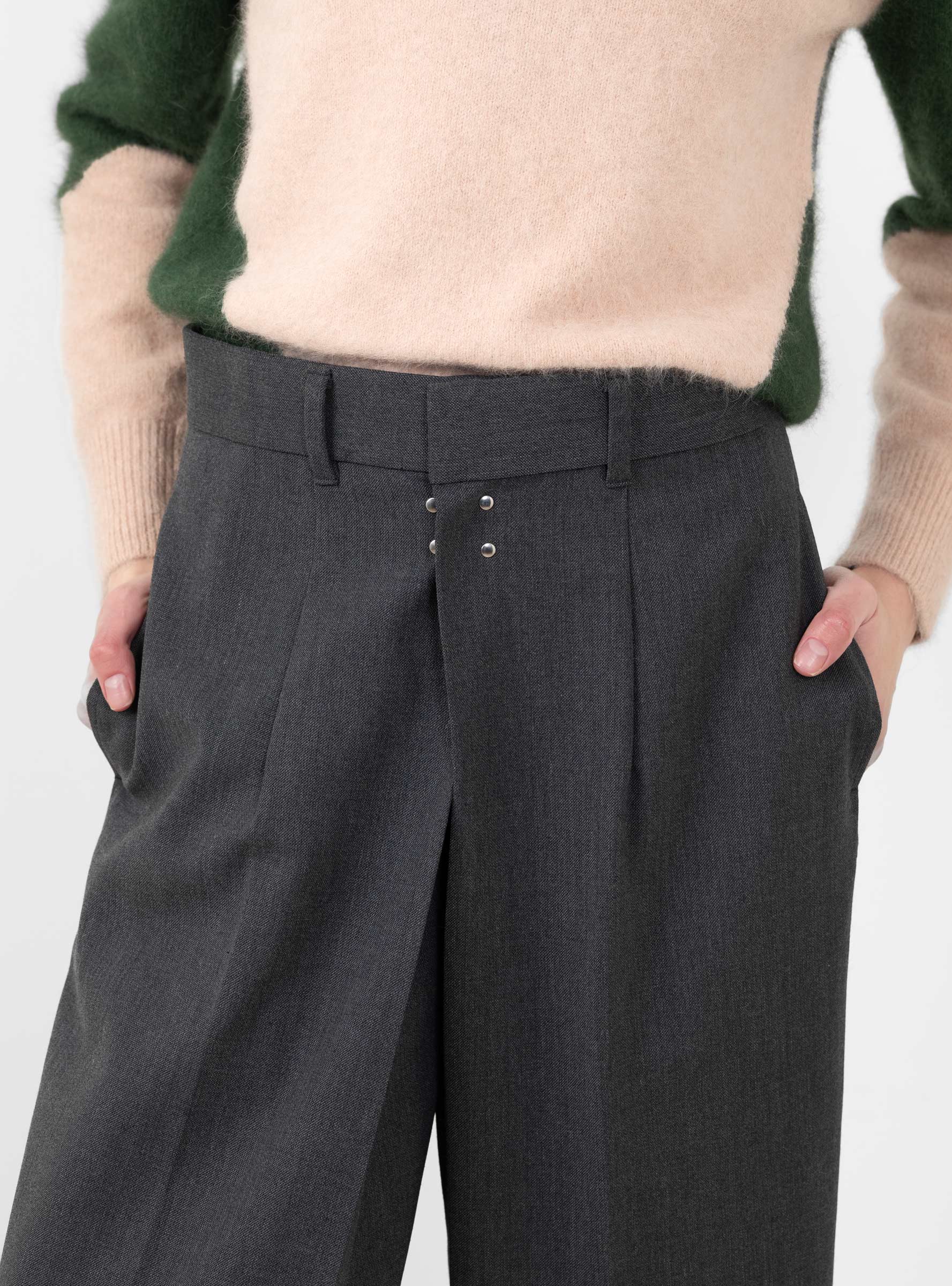 The Polyester Wool Trouser from TOGA PULLA arrives in Grey, crafted in Japan from a wool polyester blend. Designed with a wide leg, the trouser features belt loops and silver hardware detailing at the front waistband.