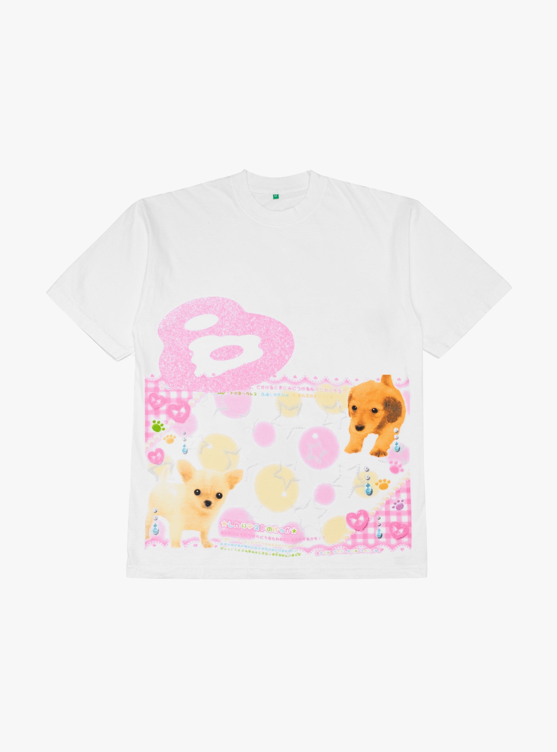 The Puri T Shirt from b.Eautiful comes in White. Made in Los Angeles from 6.5oz cotton, the top is garment dyed for a washed finish and has a relaxed fit. Pink graphics featuring puppies appear on the front.