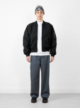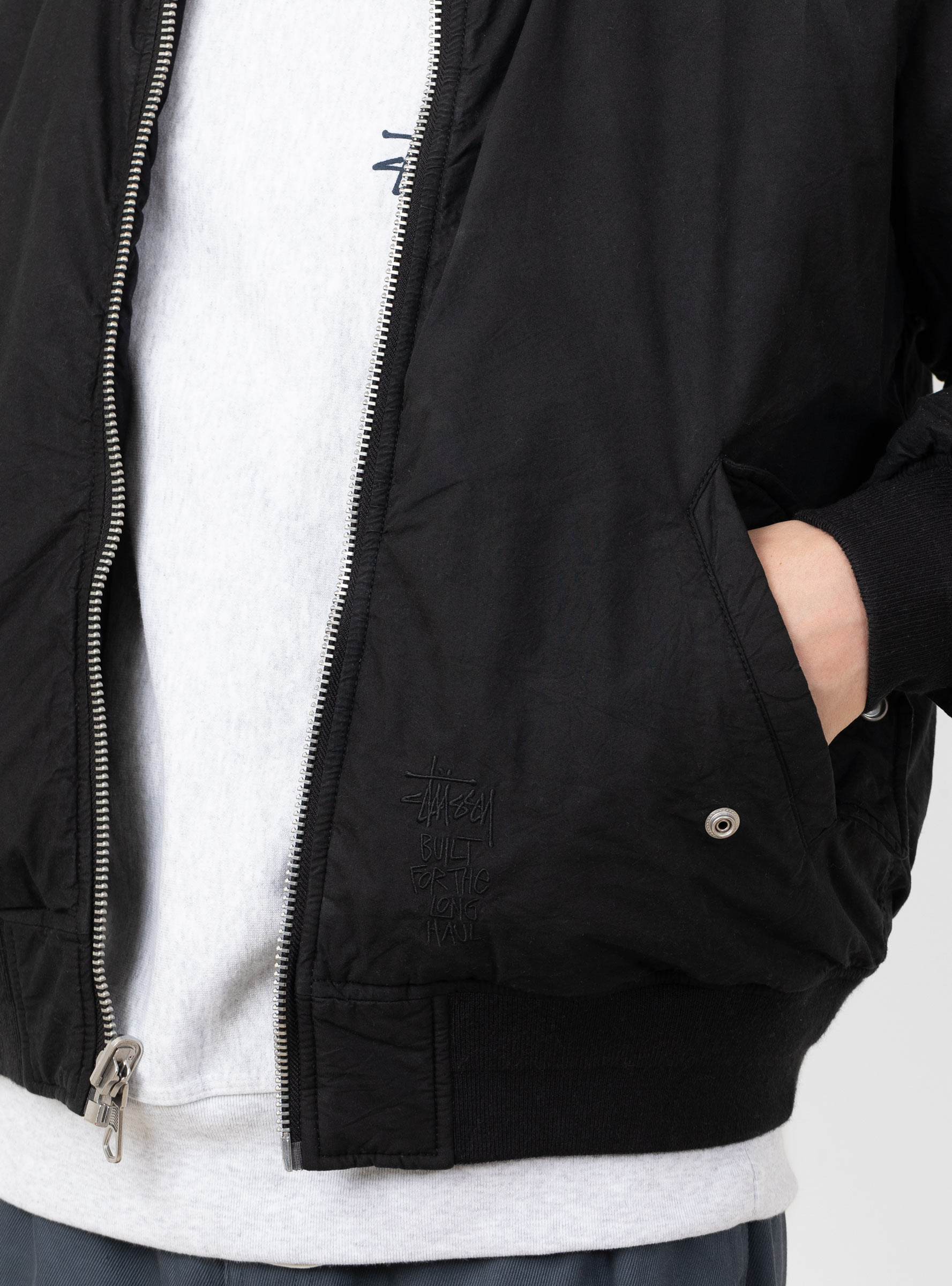 The Quilted Bomber from Stüssy is cut from a black waxed cotton and falls to a relaxed fit. The jacket features a quilted lining, giving the jacket texture, warmth, and shape. The reversible jacket is smooth on one side and quilted on the other. Both sides feature side slant pockets. Ribbed trims and a zip closure, as well as a sleeve zip pocket on one reverse finish the jacket.