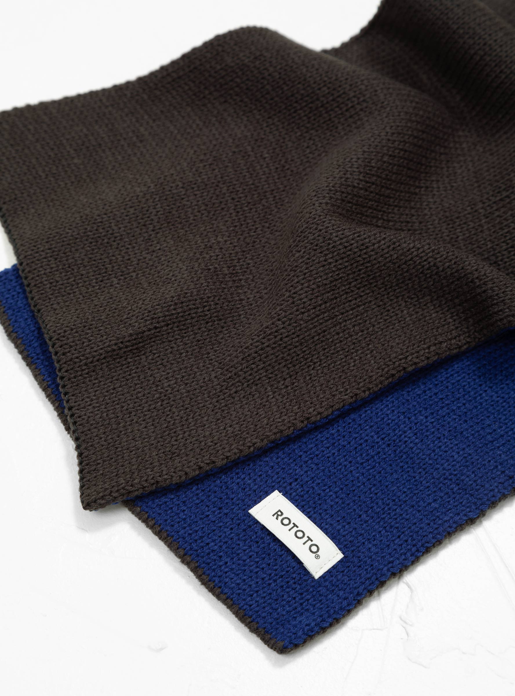 Unlock multiple styling options this winter with ROTOTO’s charcoal and blue Chunky Muffler scarf, made in Japan with a reversible construction.