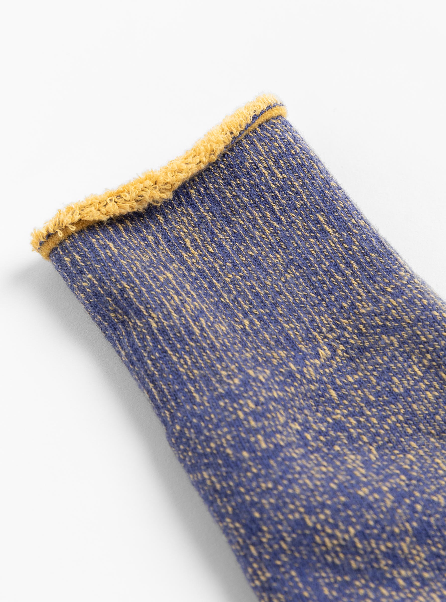 The Reversible Pile Socks Blue and Light Yellow from ROTOTO are made in Japan from a cotton-based blend. The reversible design adds versatility while providing a soft, comfortable fit.