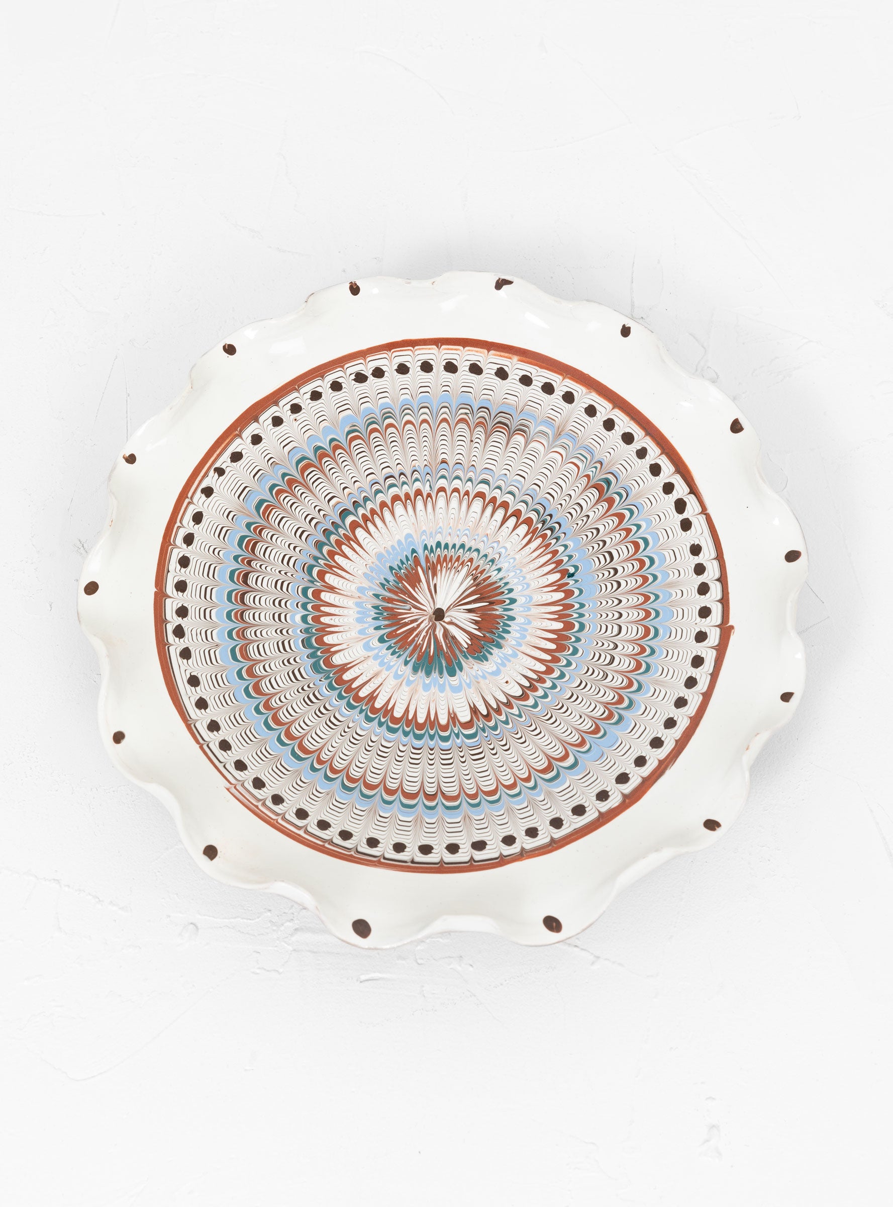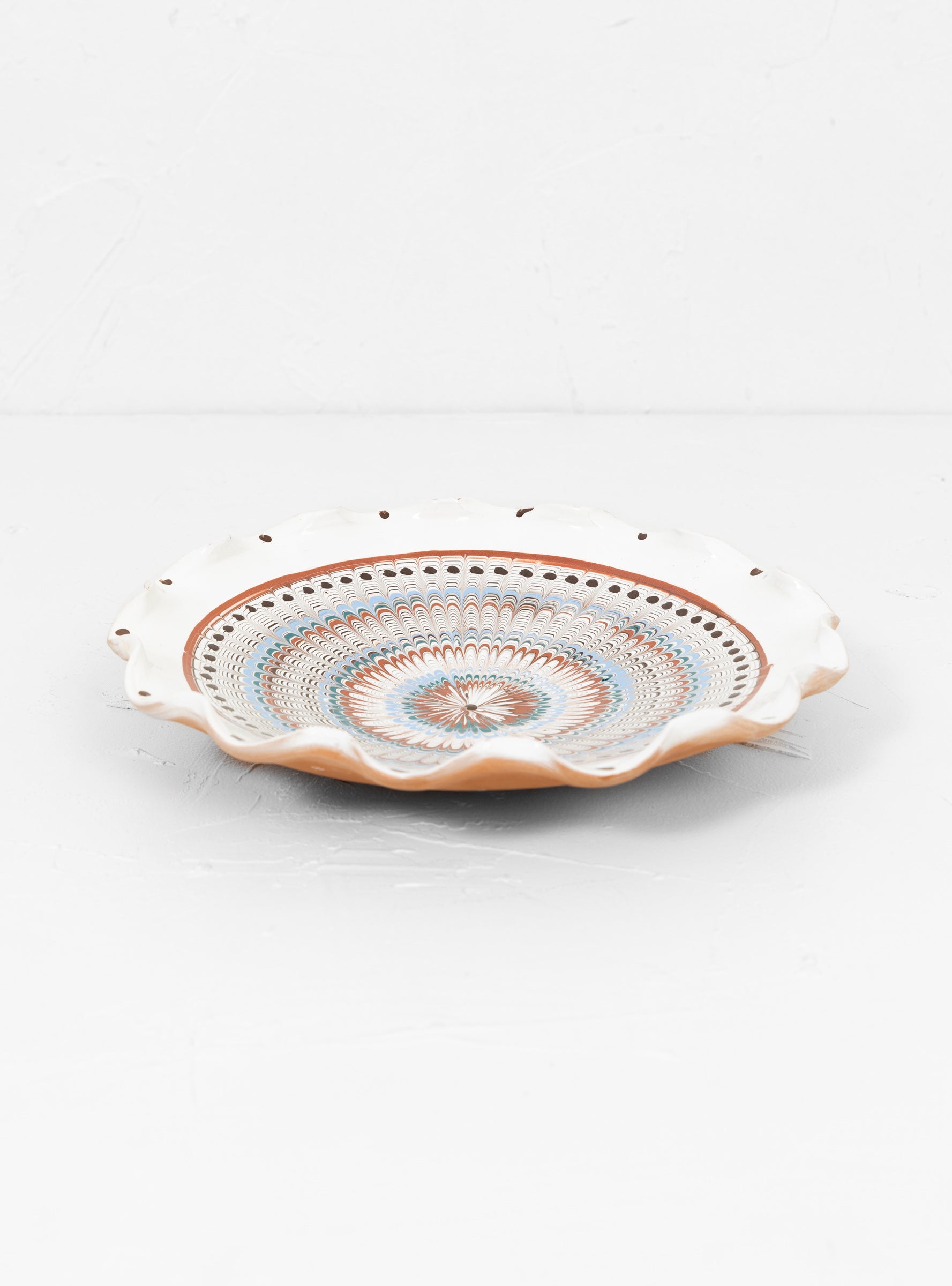 The Ripple Plate from Casa De Folklore is handcrafted by artisans in Romania, using methods passed down through generations. It is then painted using natural minerals and clay paints, an undulating brown, green and blue finish is applied to this ripple edge plate.