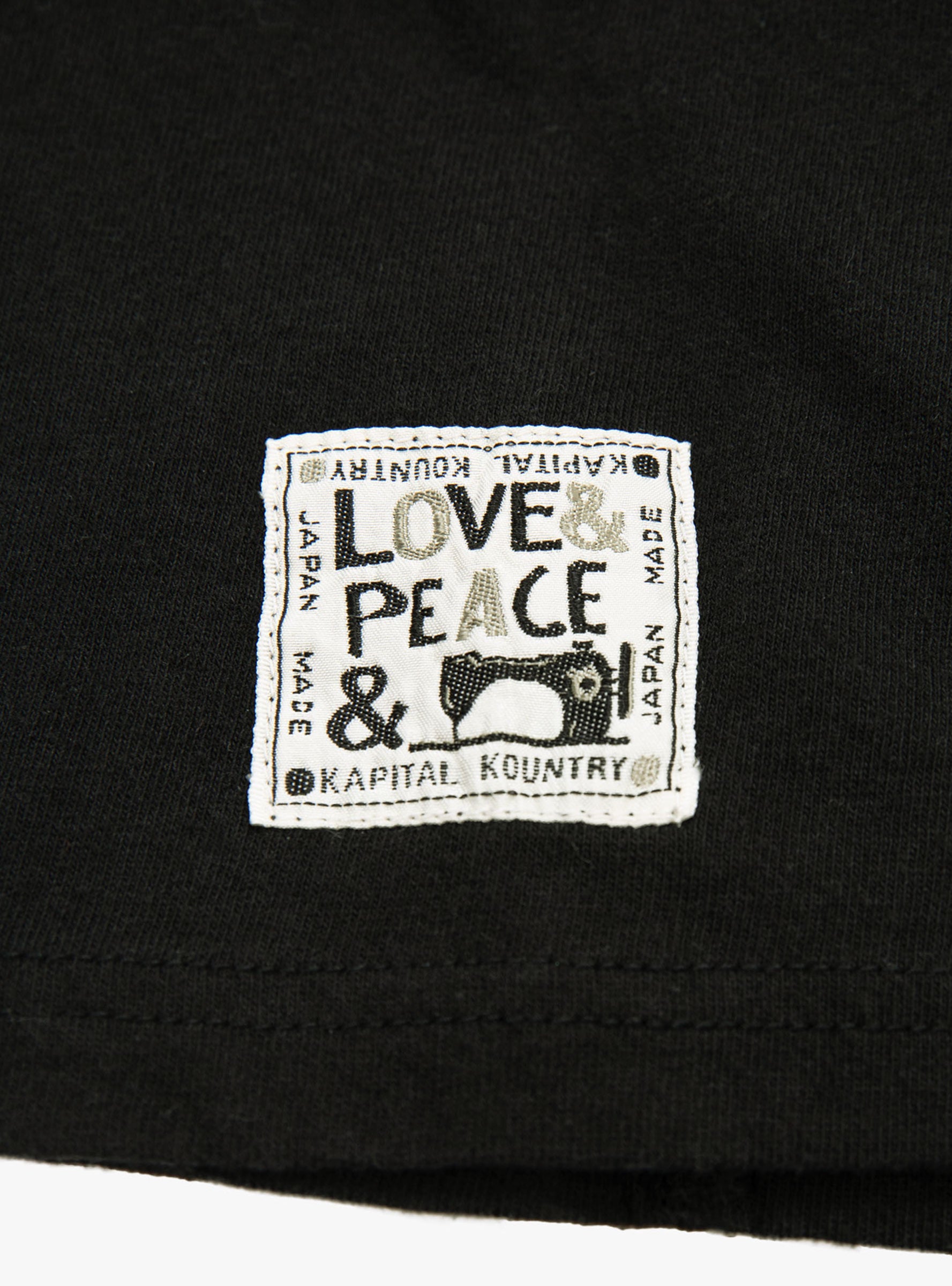 The Rookie T-Shirt from Kapital is cut from a black, soft cotton-jersey. Falling to loose fit, the tee is printed with brand's name at the chest in a faded white. A 'Love & Peace' patch at the sleeve reminds us what is important.