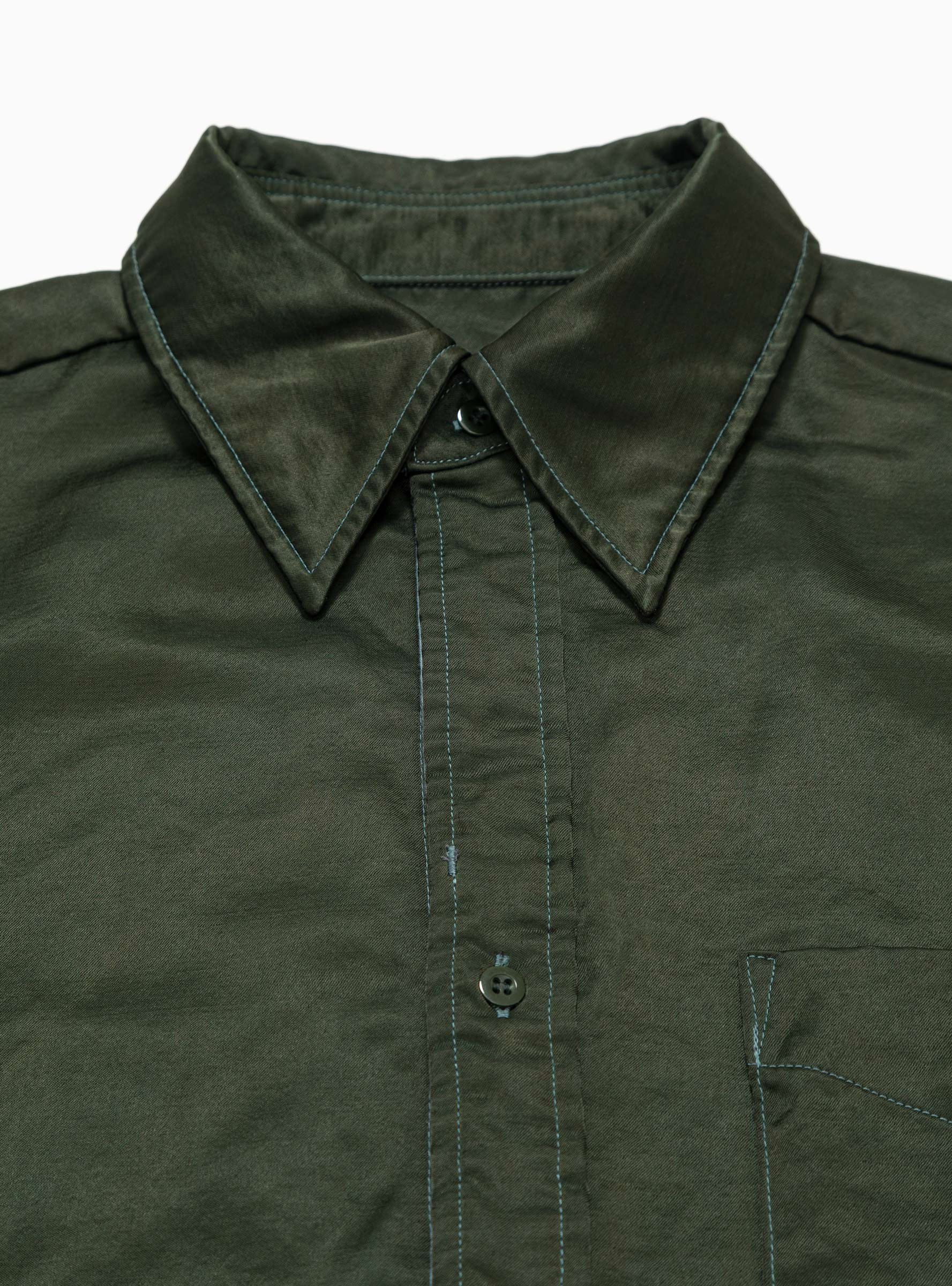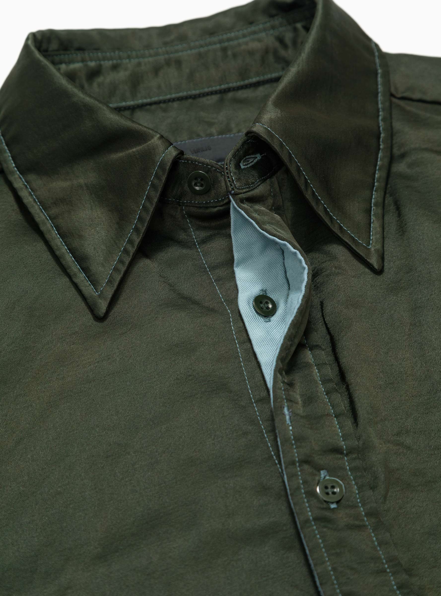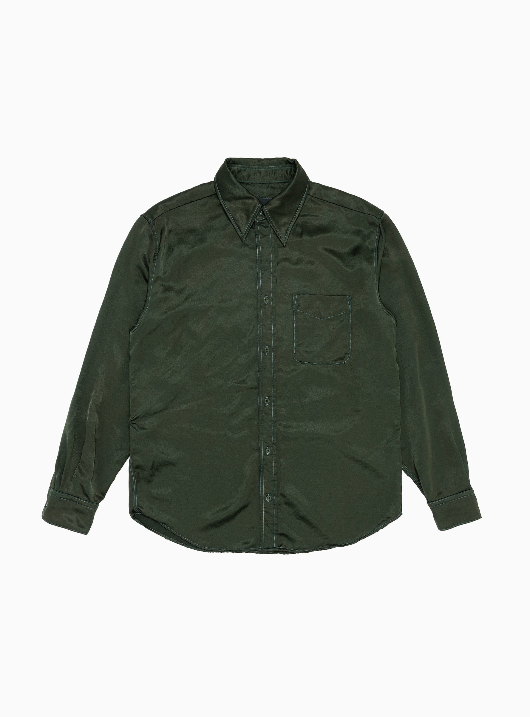 Made in Japan from green satin with pale-blue topstitching, this shirt from TOGA VIRILIS is cut to a relaxed silhouette with a patch pocket at the chest and features the label logo chainstitch-embroidered at the back.