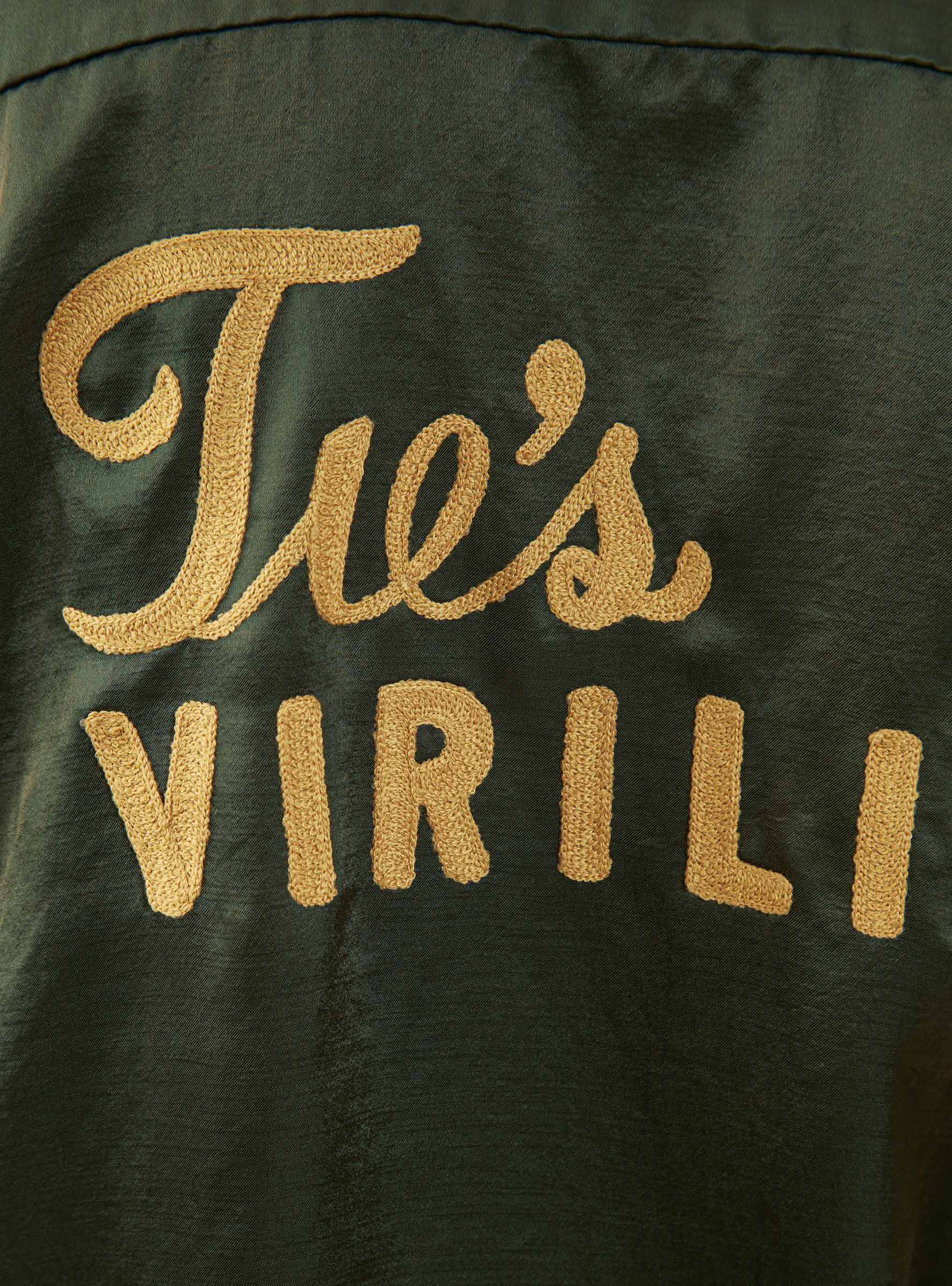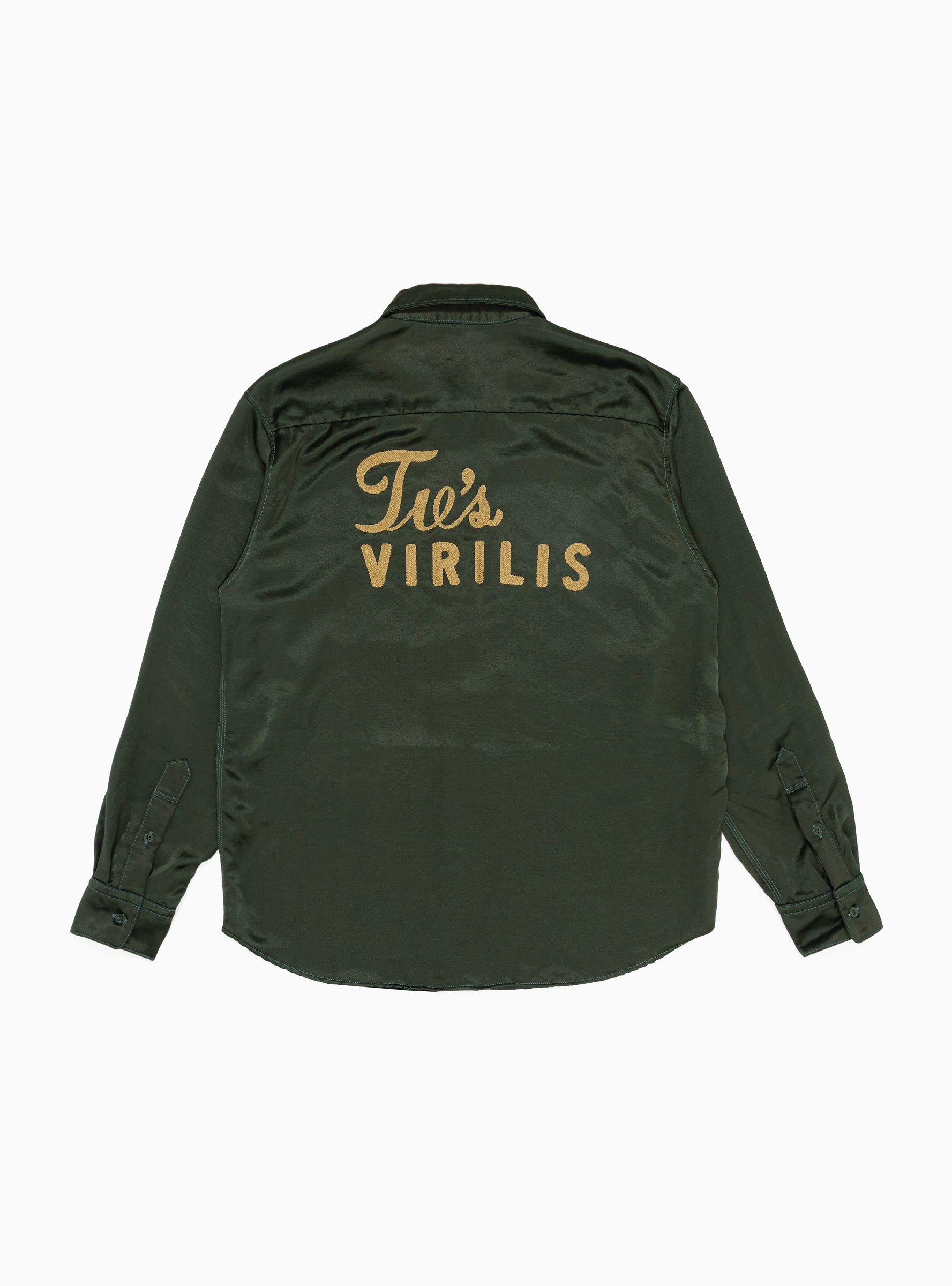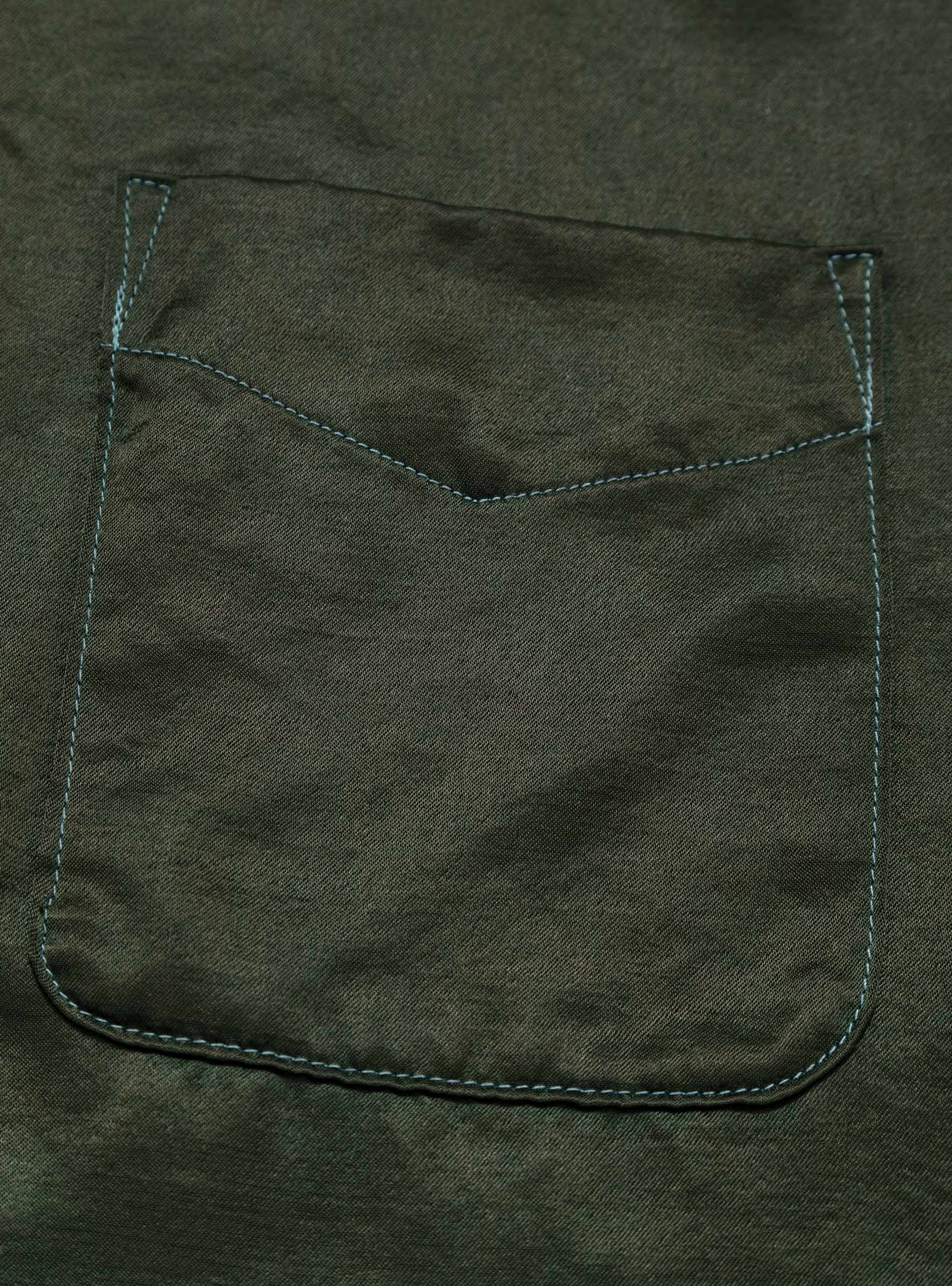 Made in Japan from green satin with pale-blue topstitching, this shirt from TOGA VIRILIS is cut to a relaxed silhouette with a patch pocket at the chest and features the label logo chainstitch-embroidered at the back.