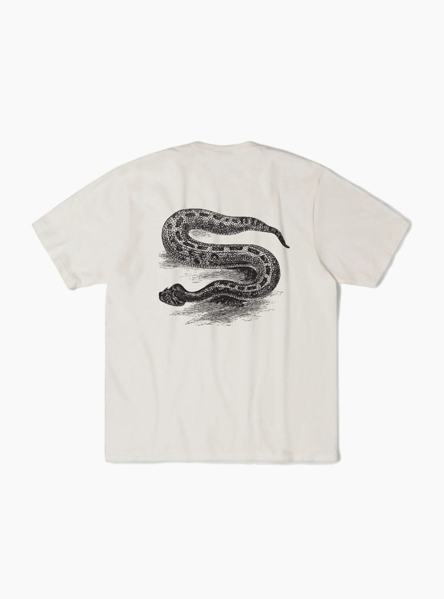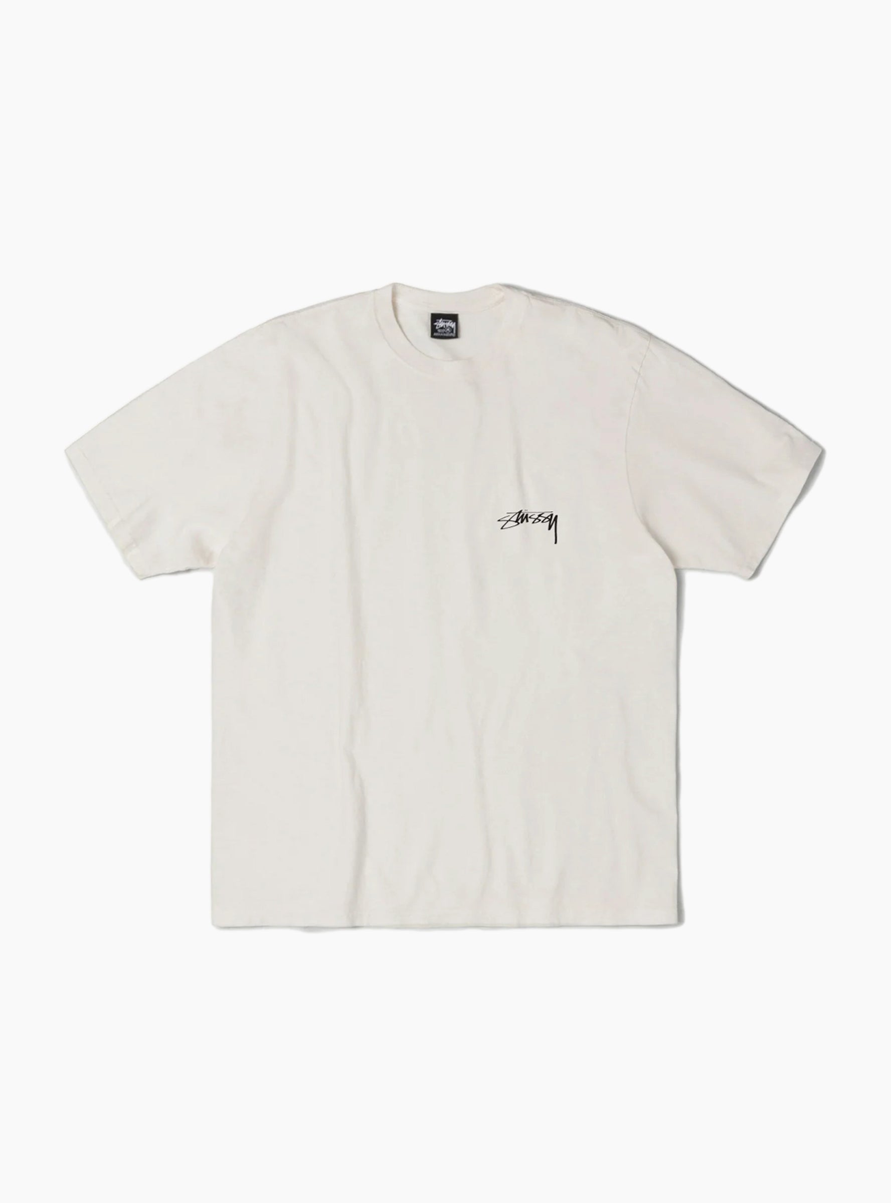 The Serpent Pigment Dyed Tee from Stüssy arrives in Natural and is made from midweight pigment-dyed cotton. This relaxed-fit short-sleeve tee features a ribbed crewneck, a screenprinted Stüssy logo on the chest, and a snake graphic across the back.