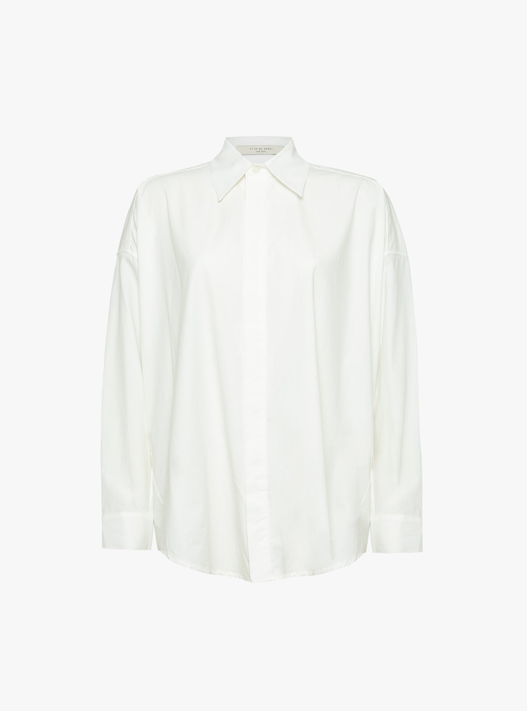 The Signature Cocoon Dress Shirt comes in Off White from 7115 by Szeki and is made from sand-washed cotton with a subtle crinkle texture. This shirt features a classic, slightly exaggerated collar, hidden button closure, and adjustable cuffs. Side seam panels create a soft cocoon silhouette through the back for a fluid, flattering fit.