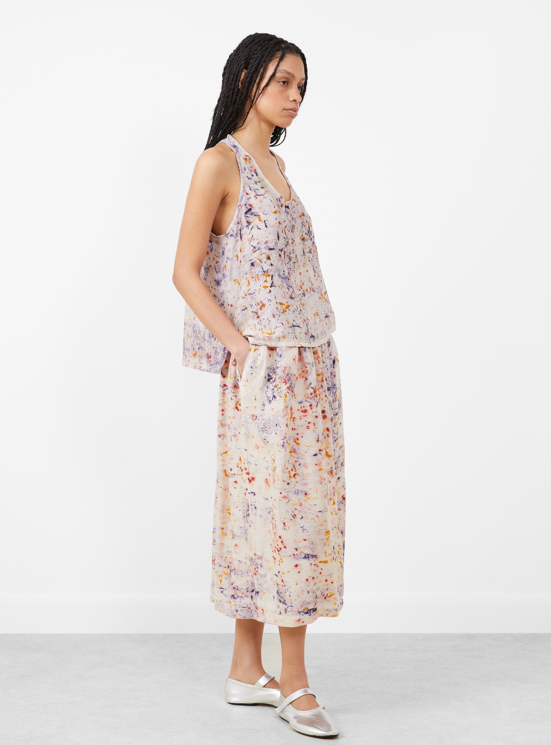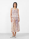 The Silk Tank Top by Anntian arrives in multi-mineral-dyed colour of Longwood, Marigold and Madder. Made with 100% silk in Germany, this halter neck blouse features a tent-like triangular silhouette with a v-neck design. Pair with the Silk Skirt in Longwood, Marigold and Madder for the completed look.