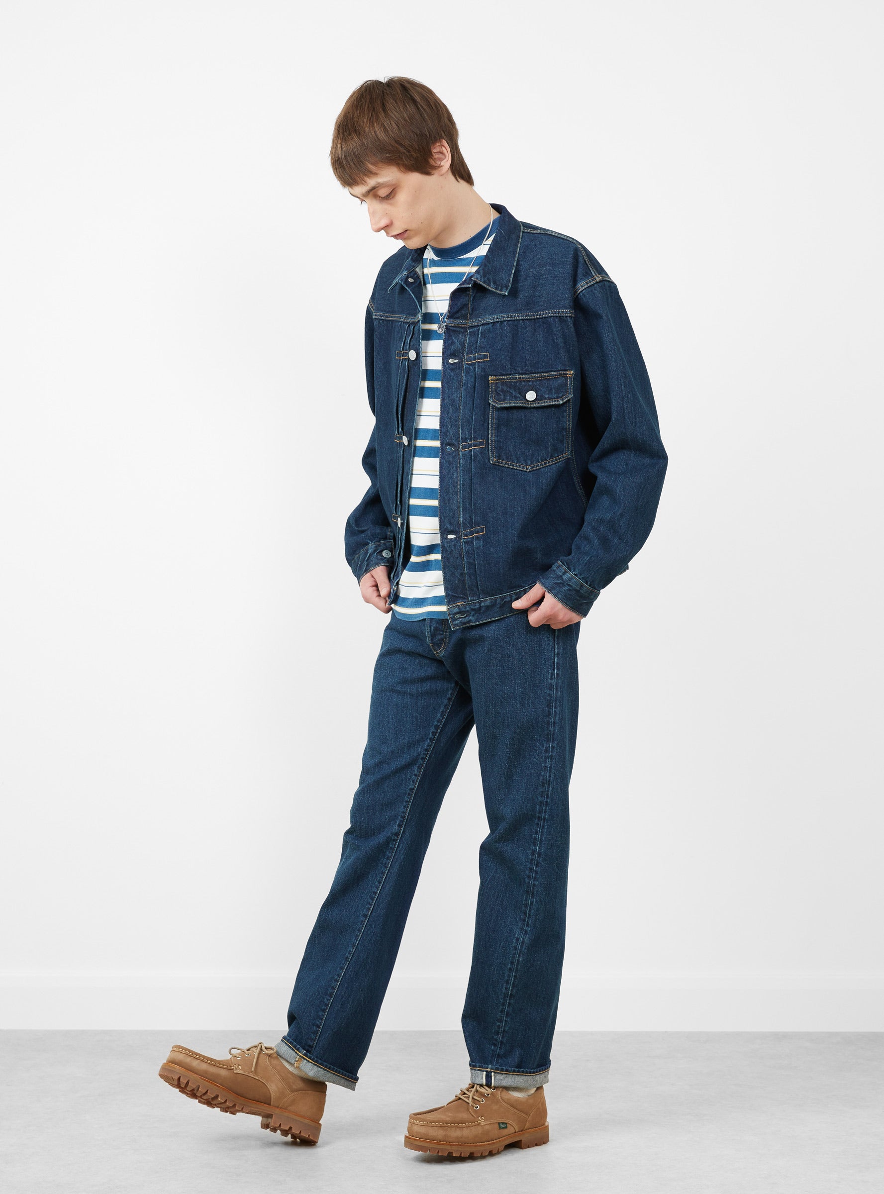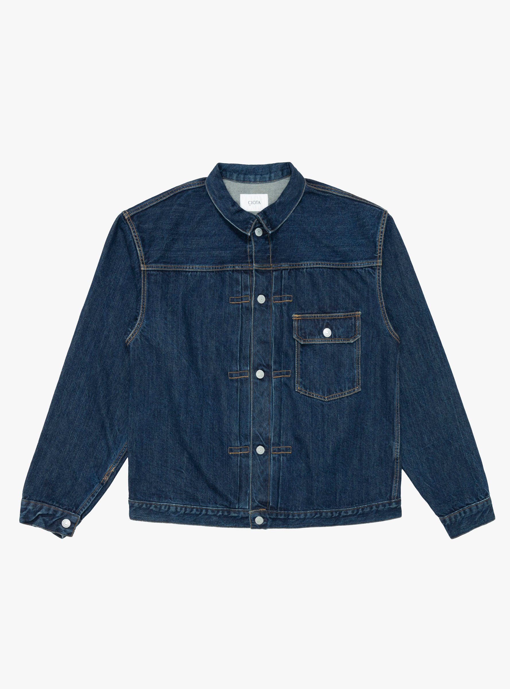 CIOTA’s Single Pocket Denim Jacket comes in Dark Blue Damage and draws inspiration from 1950s vintage designs. Featuring details like a flap pocket, needle-less back cinch, and front pleats, it's designed with a slightly longer length, wider armholes, and a boxier fit than the brand's classic version. Crafted from 13.5oz raw indigo selvedge denim, the fabric evolves over time, embracing the natural character of untreated denim.
