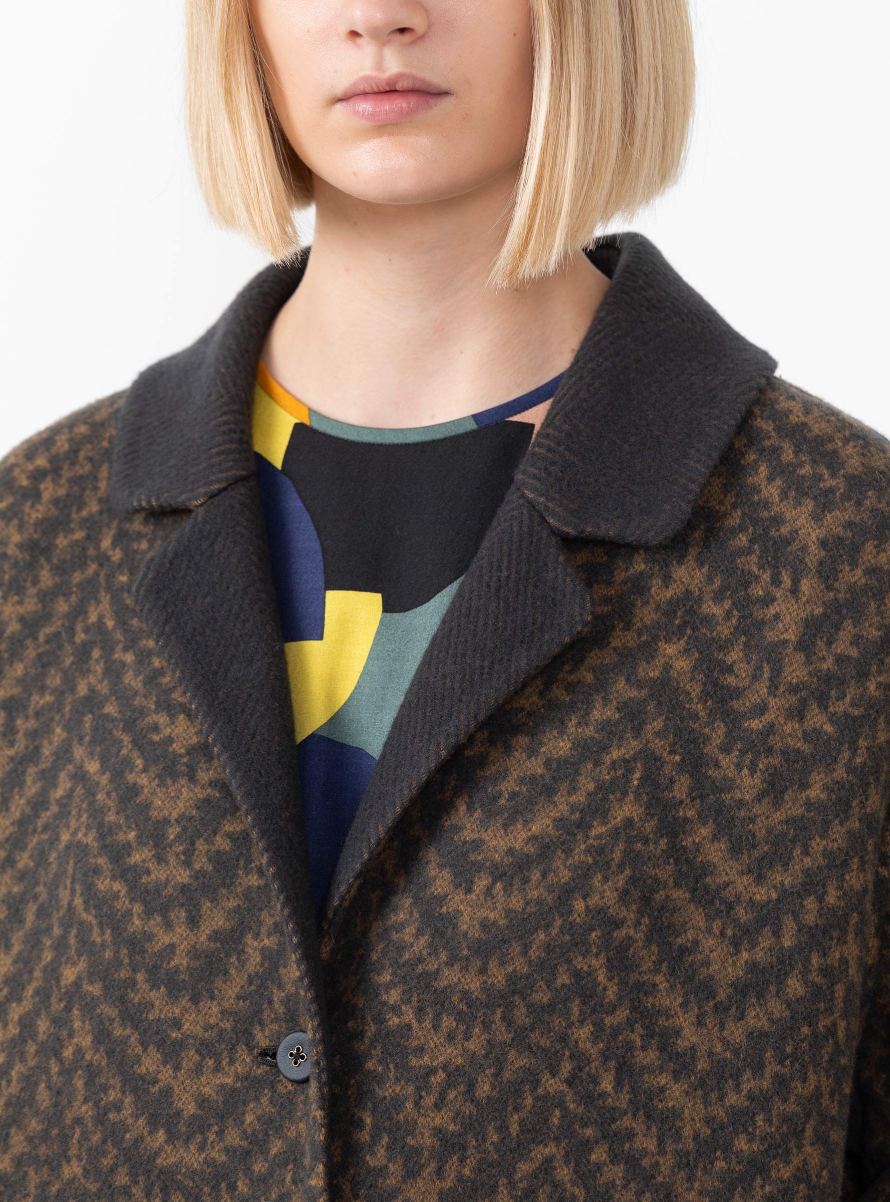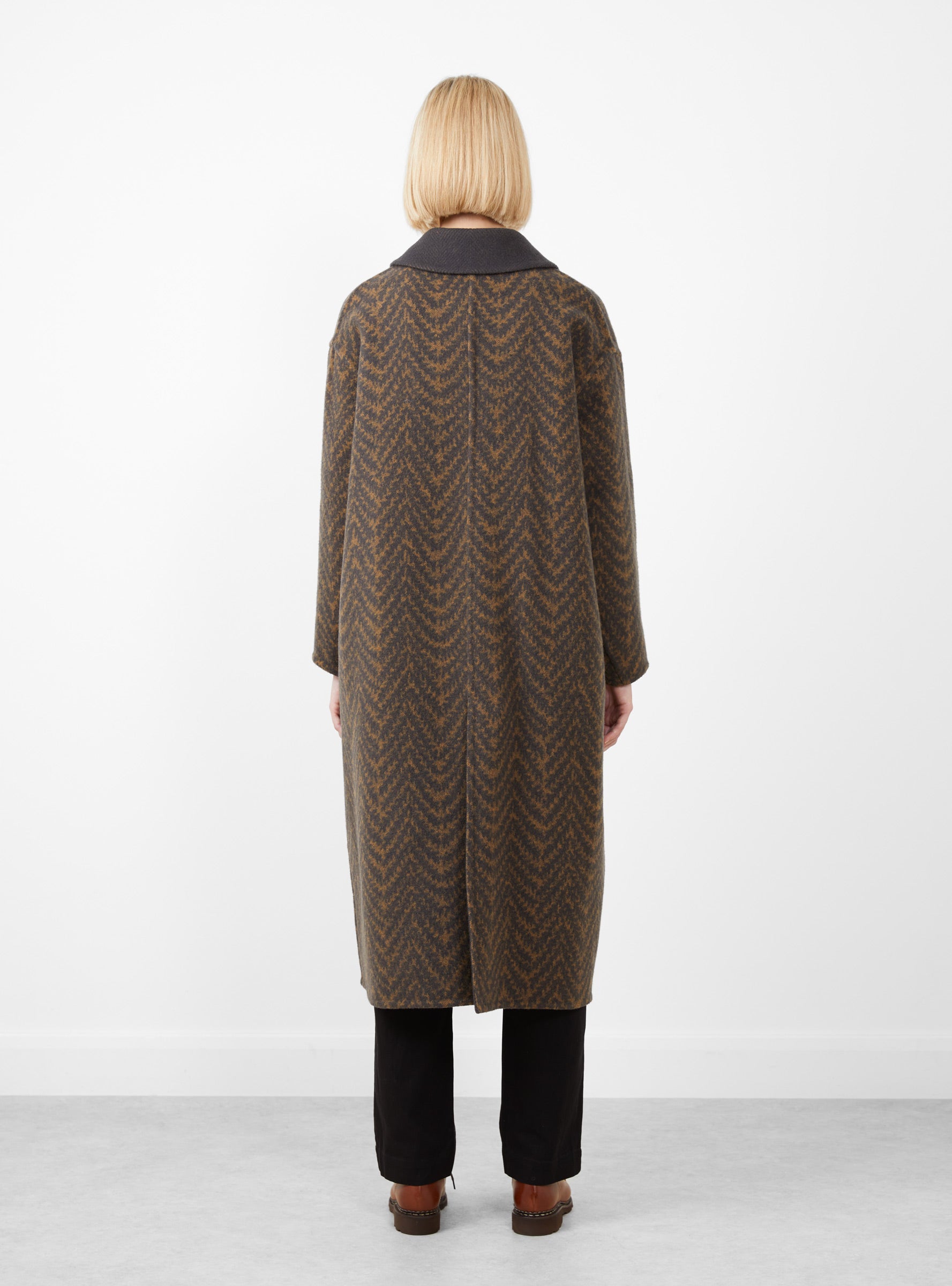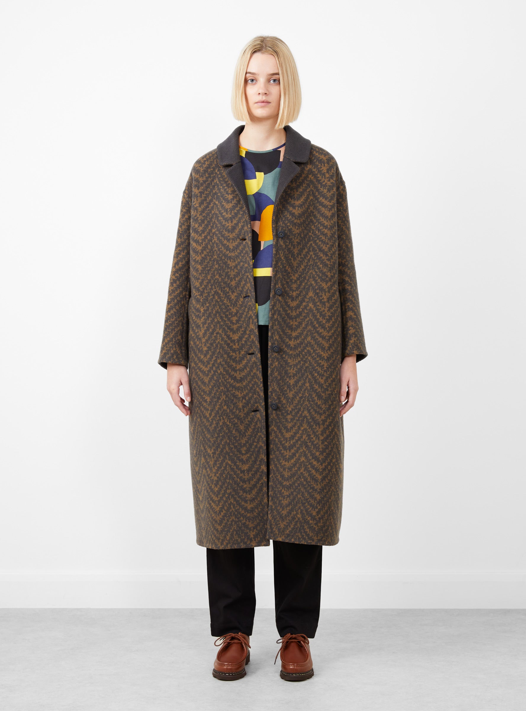 The Skog Coat from Minä Perhonen comes in a textured brown colourway. Made in Japan from a wool-heavy blend, the warming jacket falls to a regular fit. A contrasting collar and button down closure features through the middle, whilst side slant pockets and a slit at the hem offer storage and mobility.