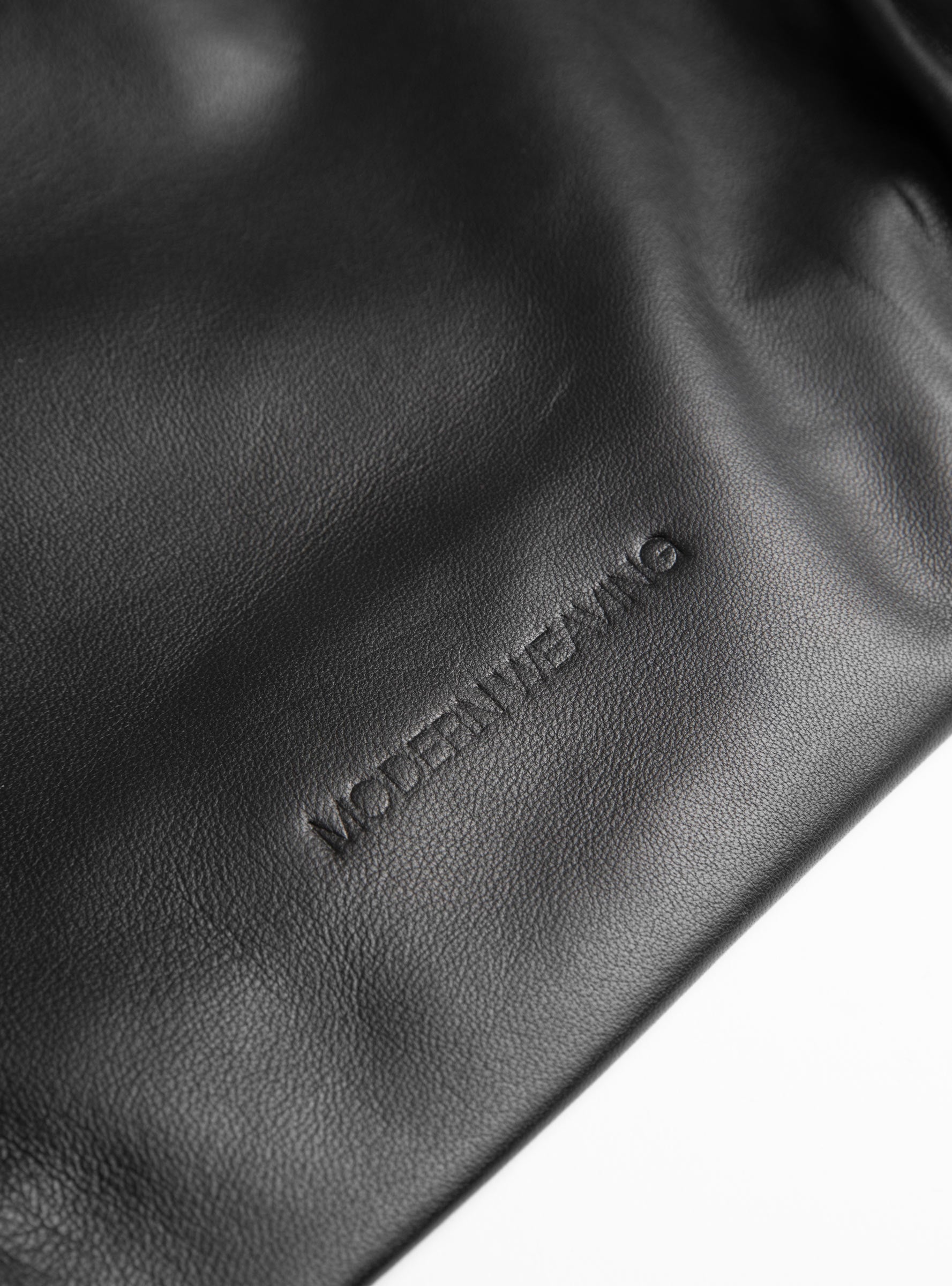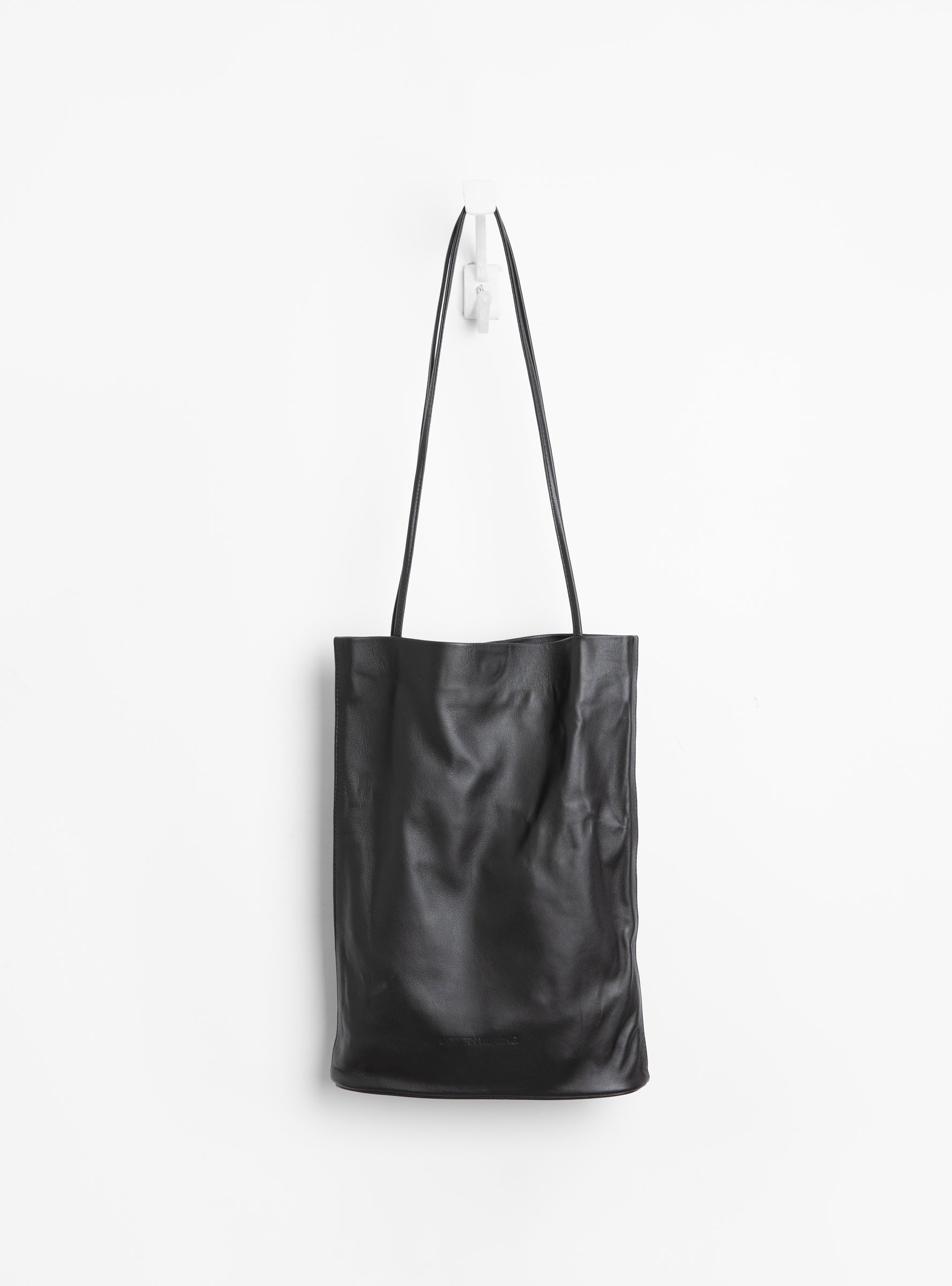 The Slim Elongated Tote arrives from Modern Weaving in Black. This minimalist tote is crafted from unlined, butter-soft Italian lamb leather, offering a supple hand and natural drape. Designed with slim feminine straps and a soft-structure body with an oval-shaped reinforced base, it combines everyday functionality with refined proportions.