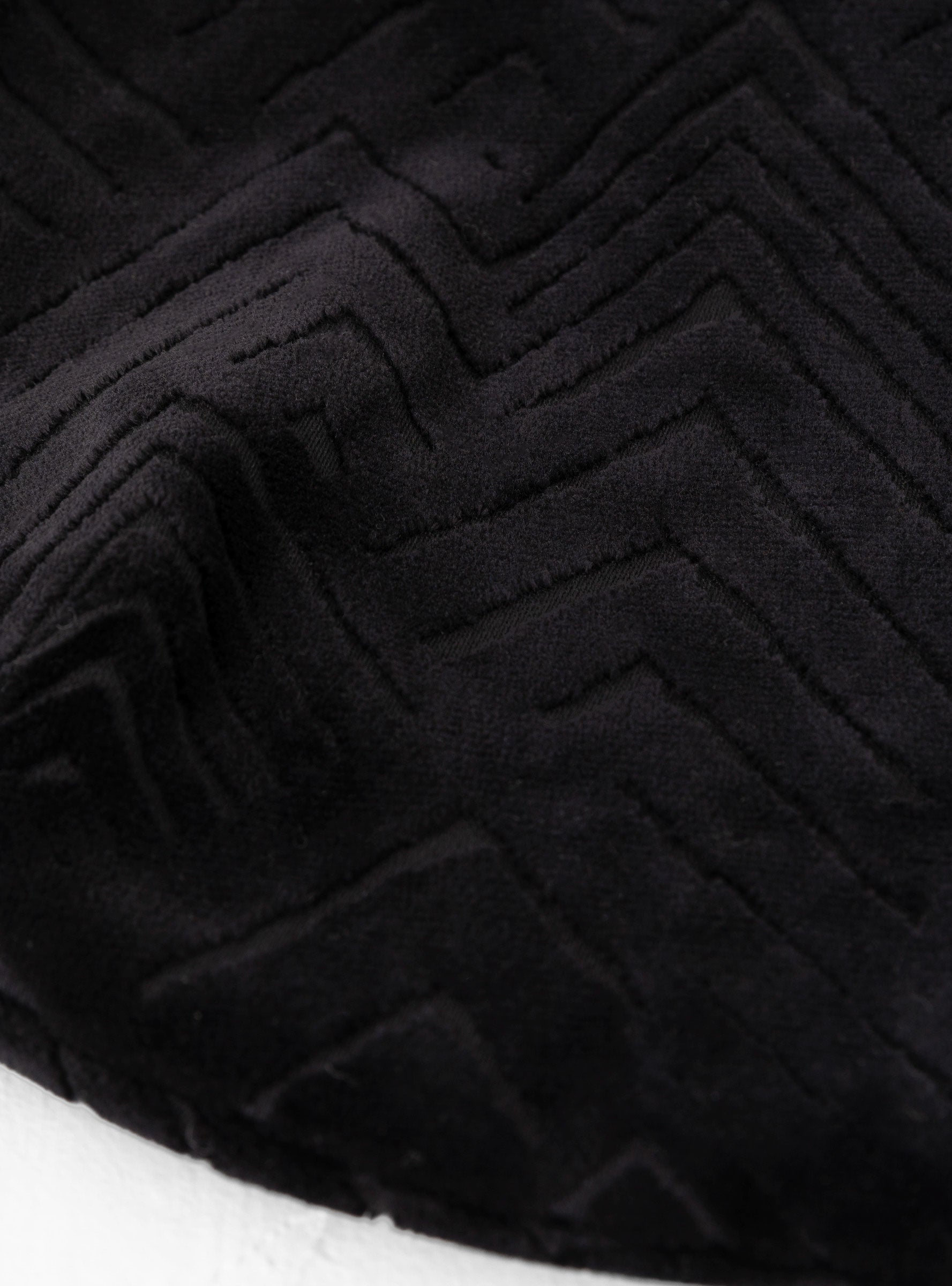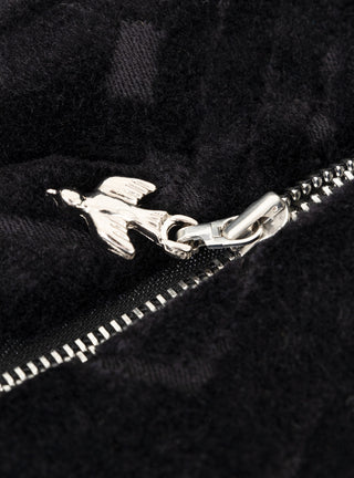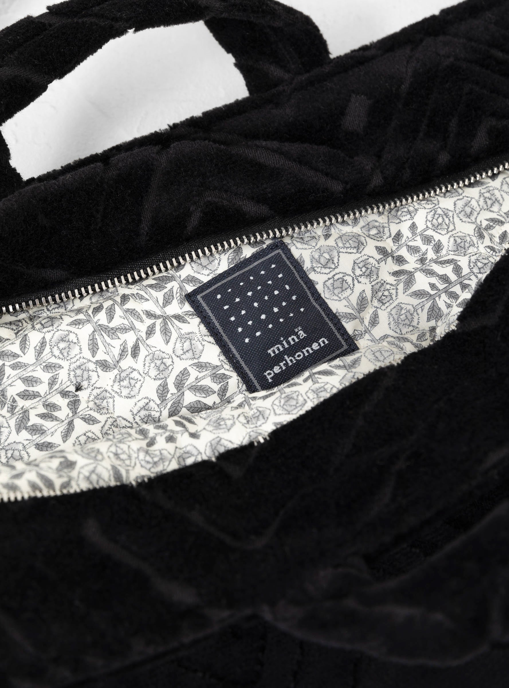 The Echo Bag from Minä Perhonen comes in a black. Made in Japan, the everyday bag is cut from a textured, velvet-like cotton with an exposed, white pattern and takes a rounded shape. It features a zip closure with a bird-shaped zipper, as well as a patterned lining. An adjustable shoulder strap as well as handles offer multiple carrying opportunities.