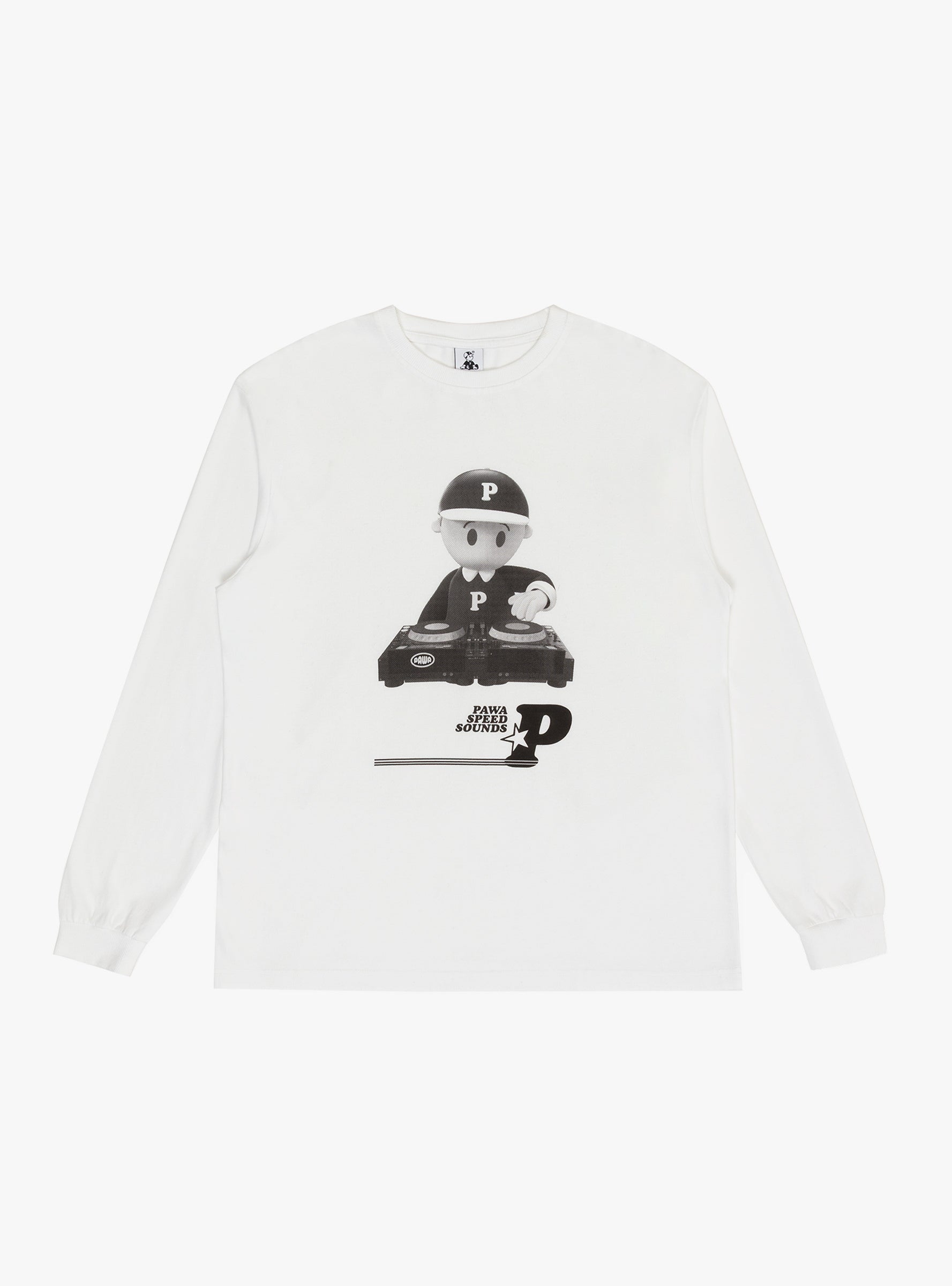 The Speed Sounds Long Sleeve from Pawa Speed Sports arrives in Off White and is cut from heavyweight 230GSM cotton. Designed with ribbed trims at the collar, cuffs, and hem, it features a screen-printed DJ graphic across the chest designed by the brands London in-house team.