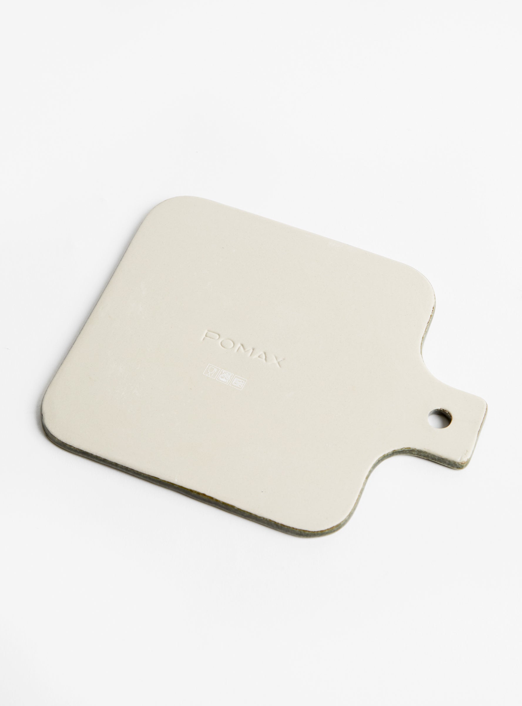 The Spiro Presentation Plate from Pomax's stoneware collection comes in Dark Green. It features a raw exterior and glossy, easy-to-clean interior.