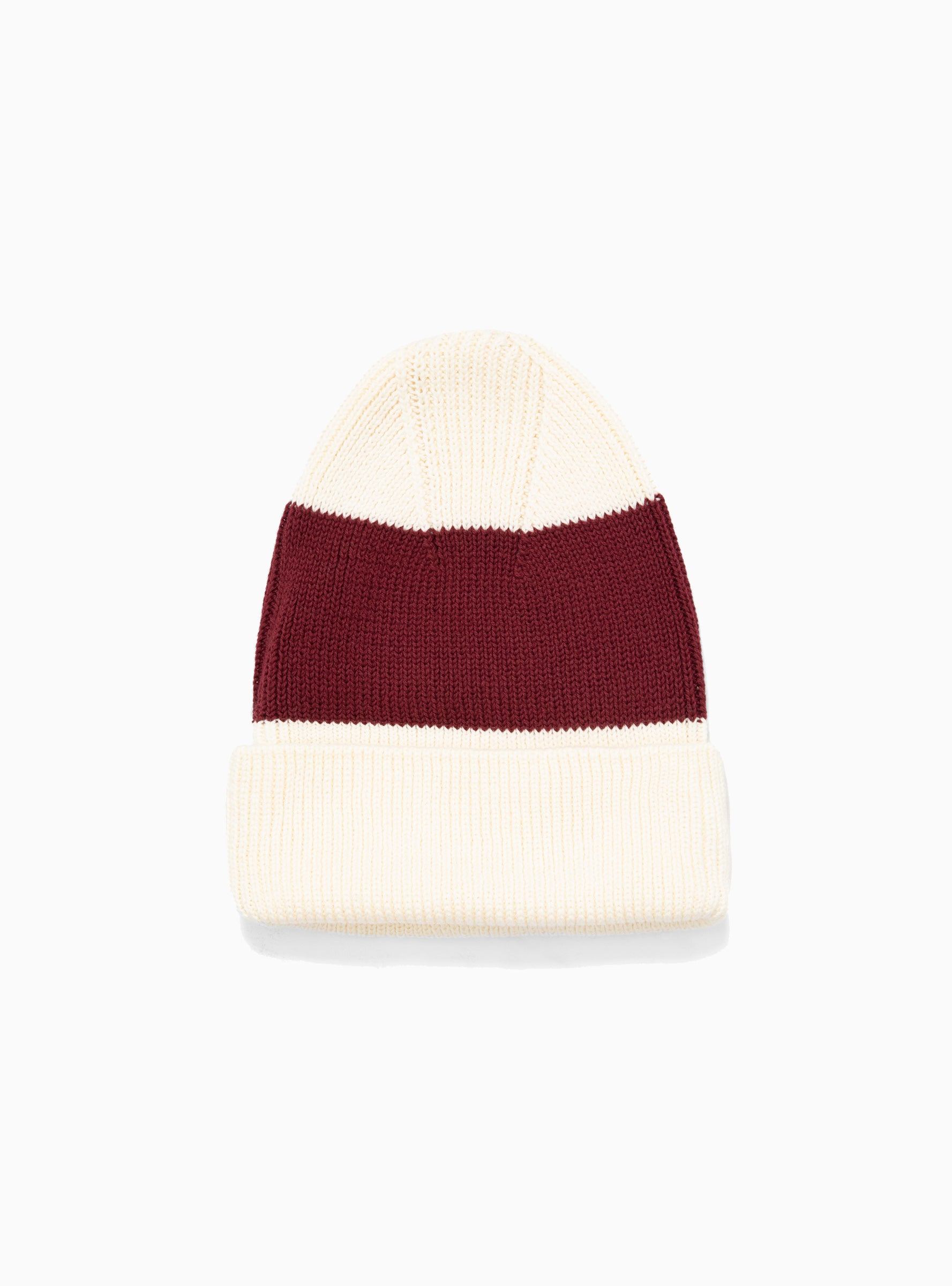 The Stripe Cotton Beanie from The English Difference features a graphic take on a classic style. Knitted in the UK from premium cotton, the beanies are made in a chunky rib with a deep turn-up cuff.