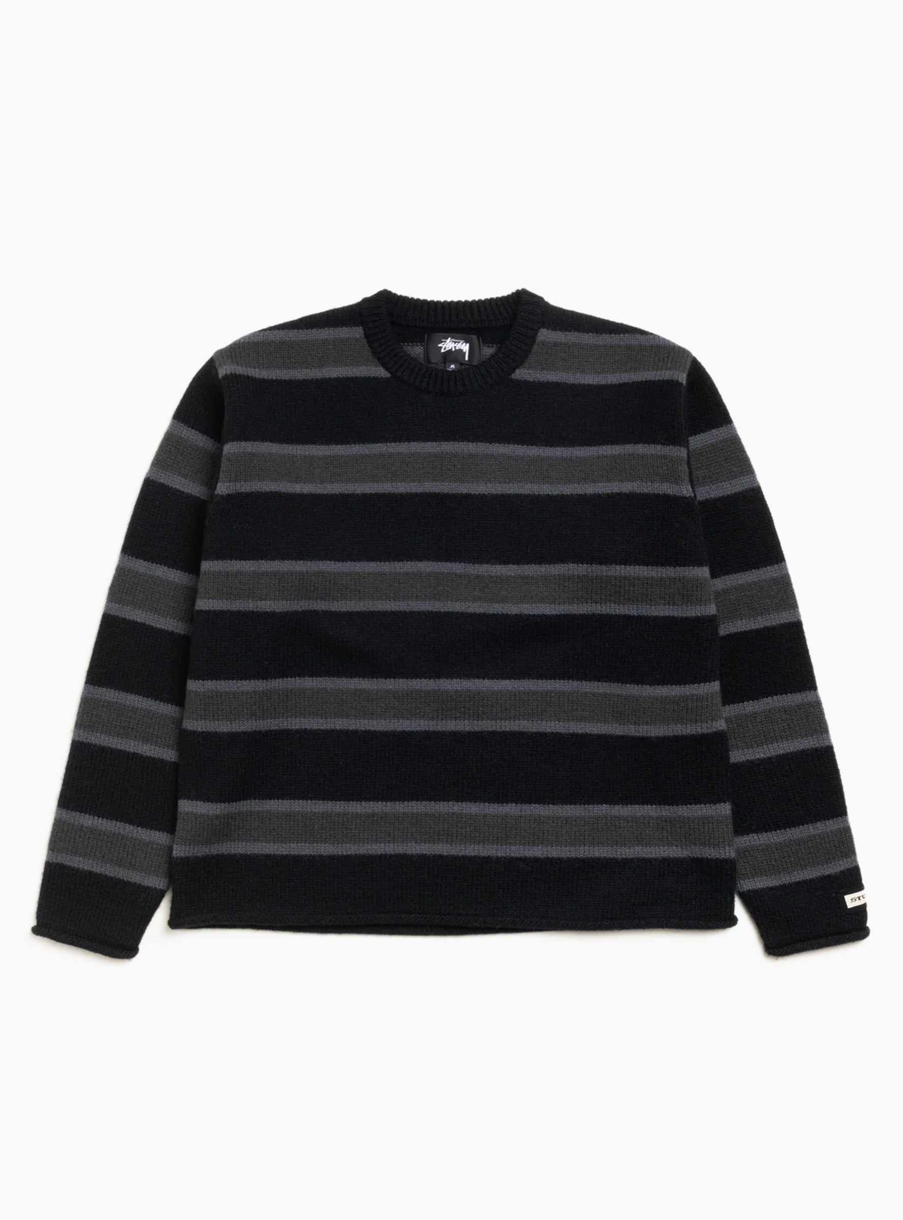 The Striped Sweater from Stüssy comes in Black and is made from 100% wool. This relaxed-fit sweater features a 5-gauge knit, double ribbed crewneck, and rolled edges at the cuffs and hem. The Stüssy serif woven label sits at the left cuff.
