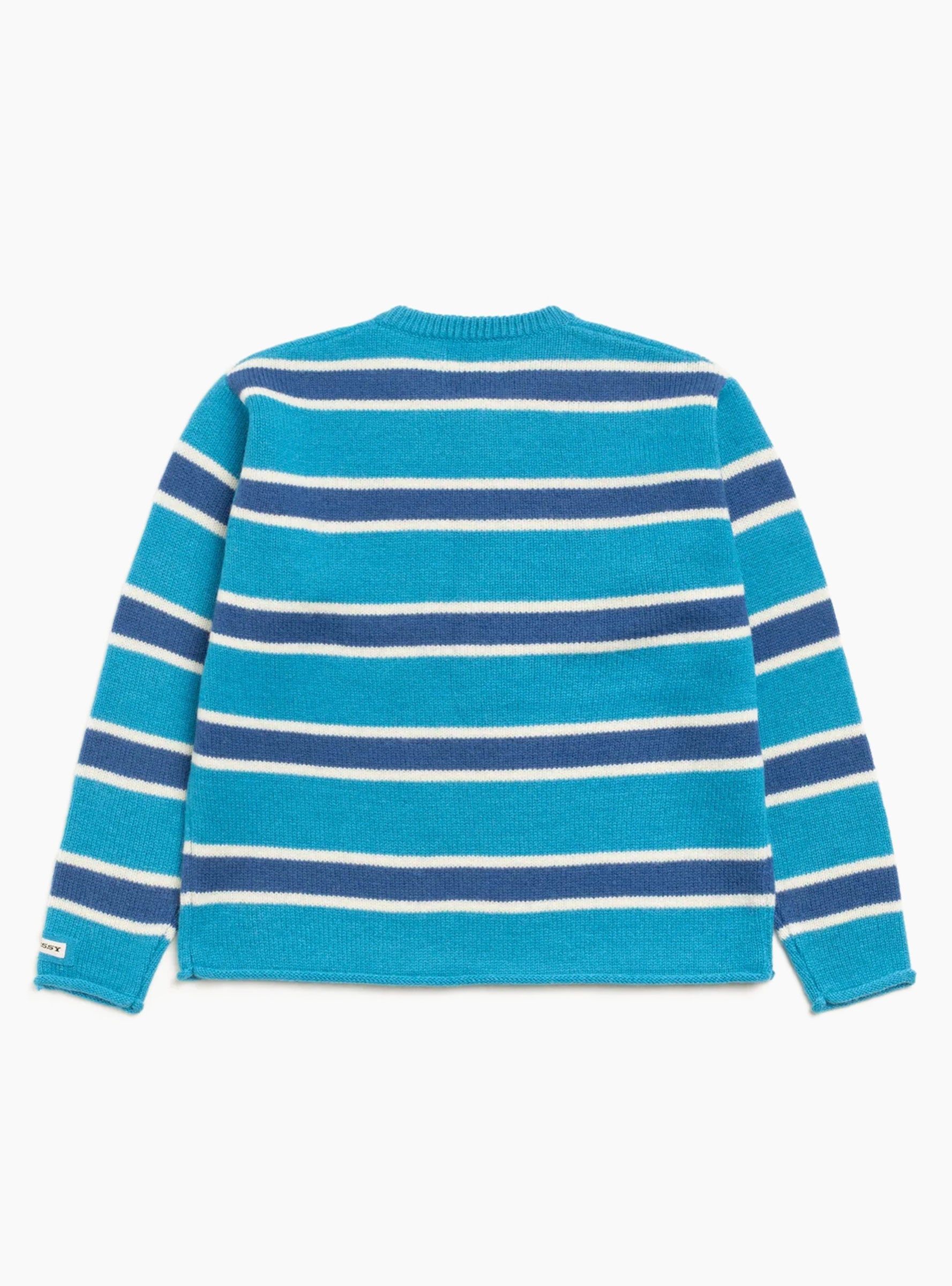 The Striped Sweater from Stüssy comes in Blue and is made from 100% wool. This relaxed-fit sweater features a 5-gauge knit, double ribbed crewneck, and rolled edges at the cuffs and hem. The Stüssy serif woven label sits at the left cuff.