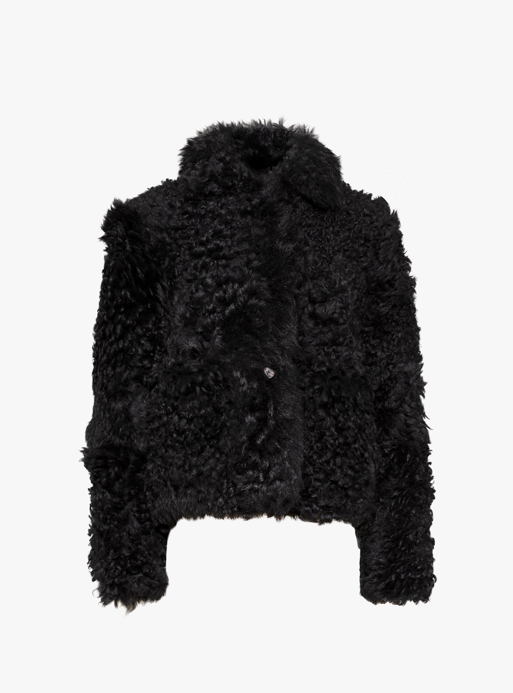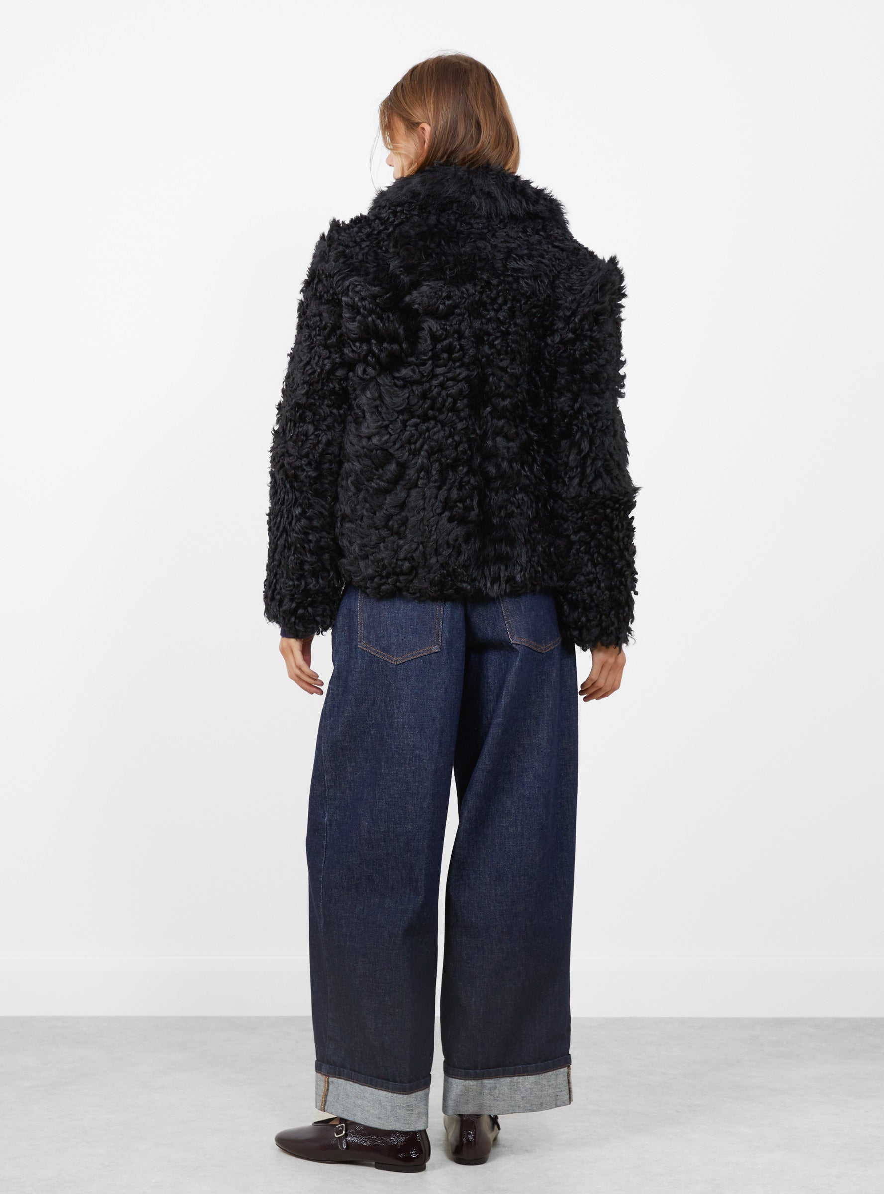 The Suede Back Toscana Ada Jacket from Cawley arrives in Black. Cut from 100% sheepskin with a suede back Toscana finish, it offers a slim fit with refined detailing. Designed with a pointed collar, patch pockets, and horn button fastening, the jacket balances structure with the natural texture of its material.