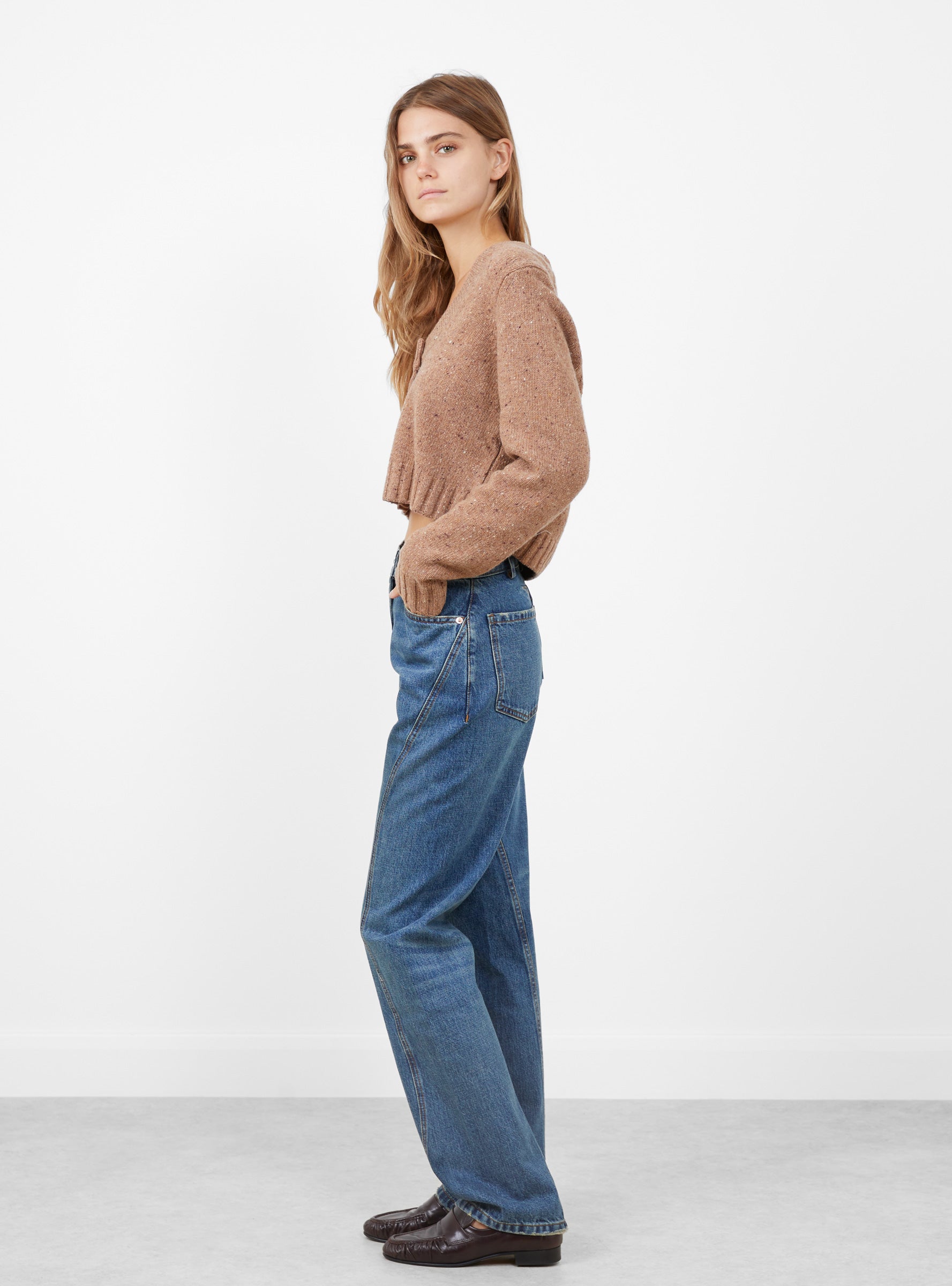 The Swerve Jeans in Aged Indigo from Rachel Comey are cut from premium Japanese Mission Denim and produced in Los Angeles. Designed with a mid-rise and straight-leg silhouette, the jeans feature seam detailing across the front and yoke, offering a relaxed fit with a lived-in finish.
