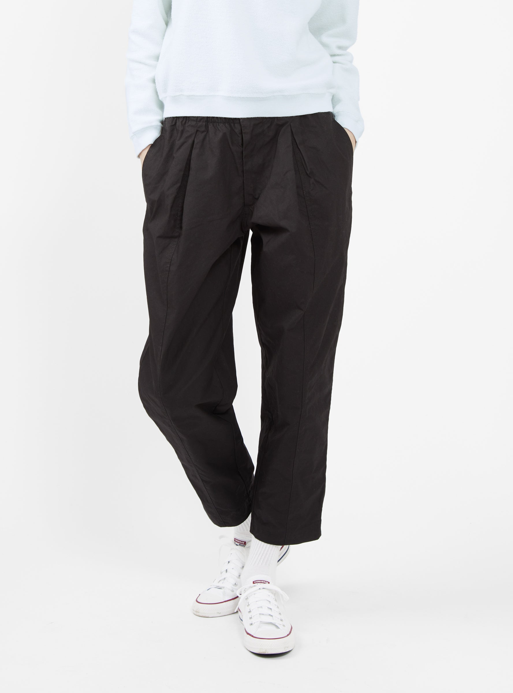 Inspired by singer David Sylvian's balloon trousers, these black YMC Sylvian trousers have a relaxed silhouette with tapered legs and a comfortable elasticated waist.