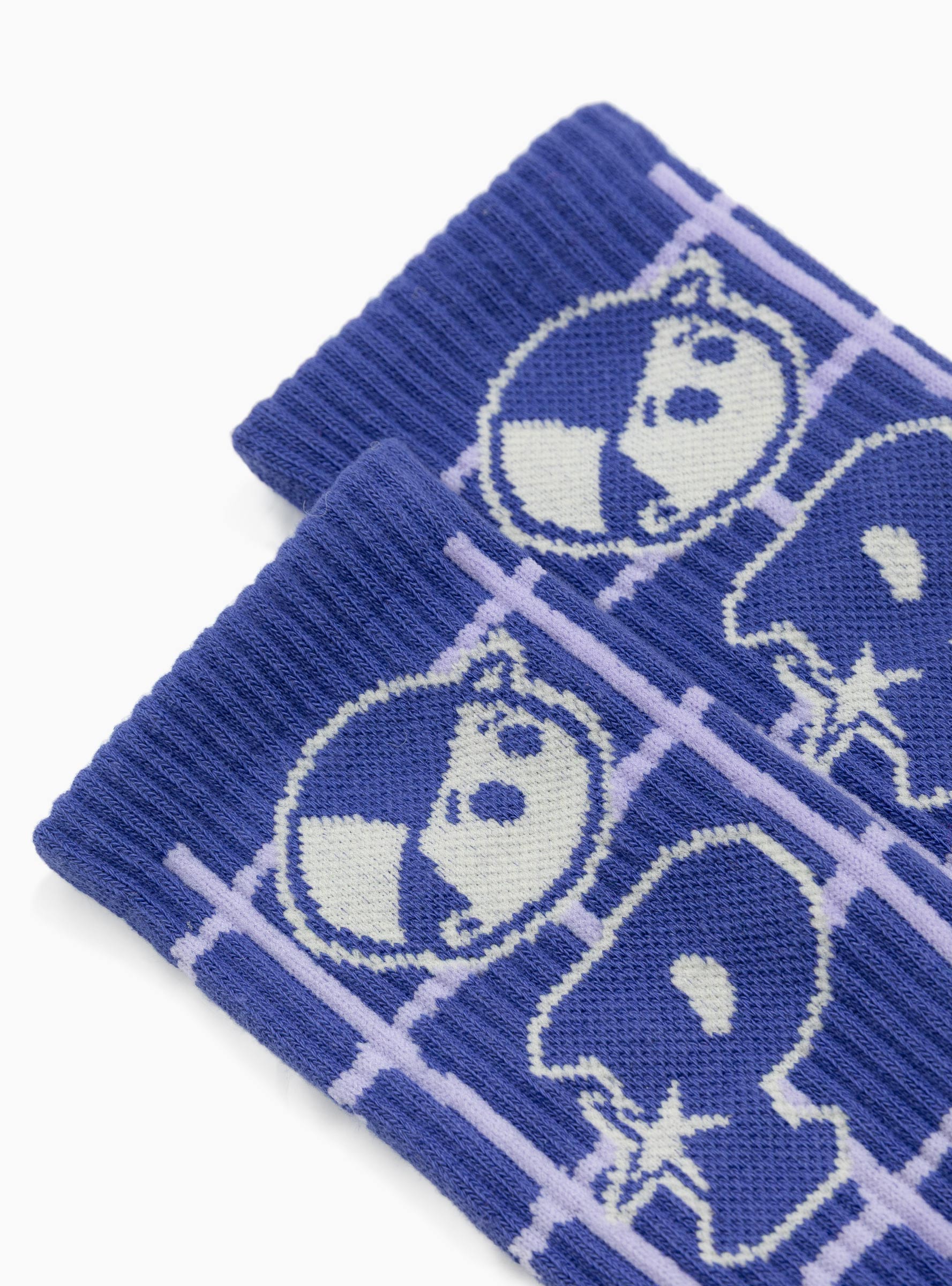 The Tartan Classic Socks come in Blue from Pawa Speed Sports and are made from a cotton blend. Designed in a jacquard sports sock construction, they feature a blue and purple tartan pattern with the brand’s classic boy logo at the side, finished with a ribbed cuff.