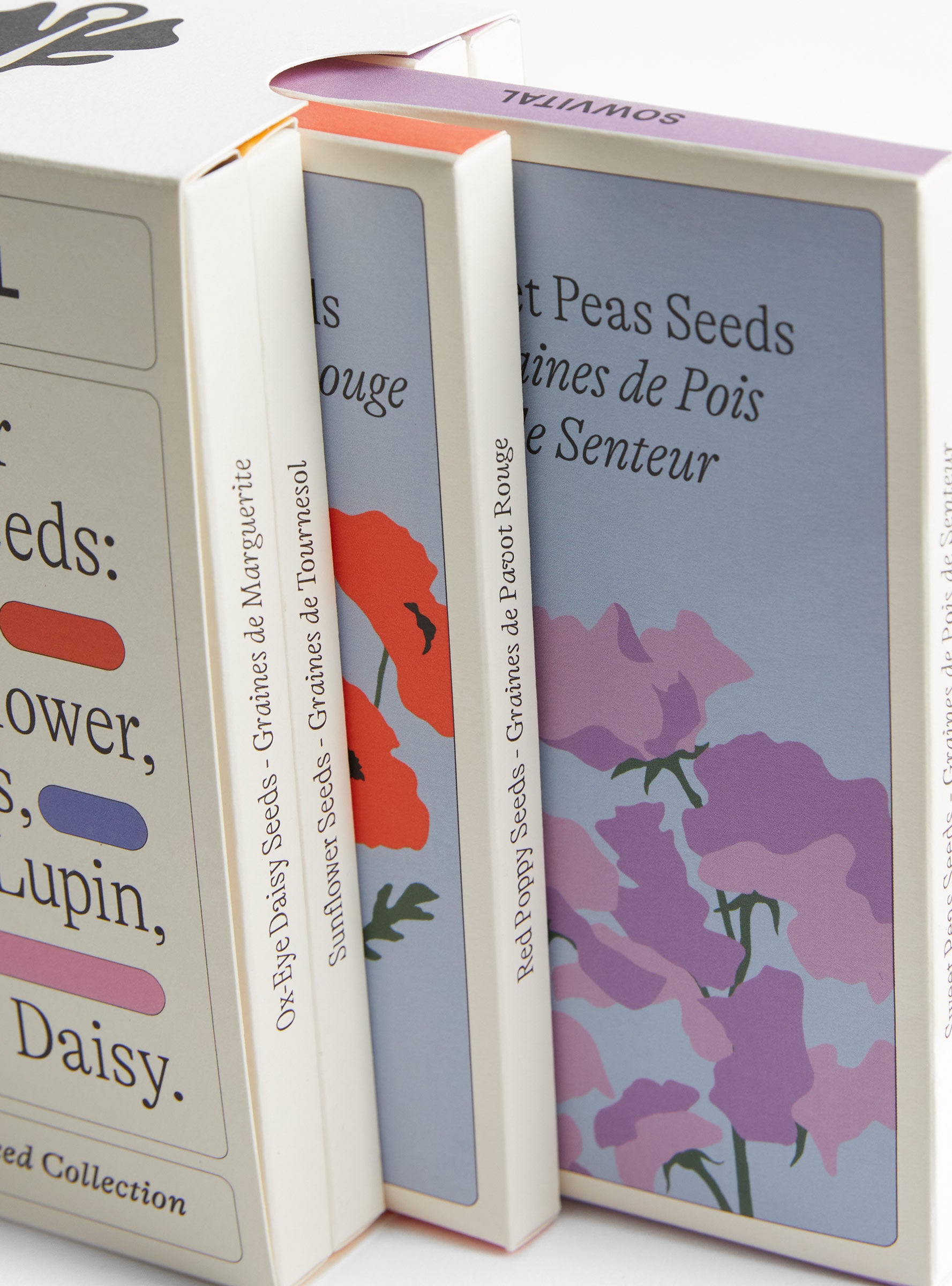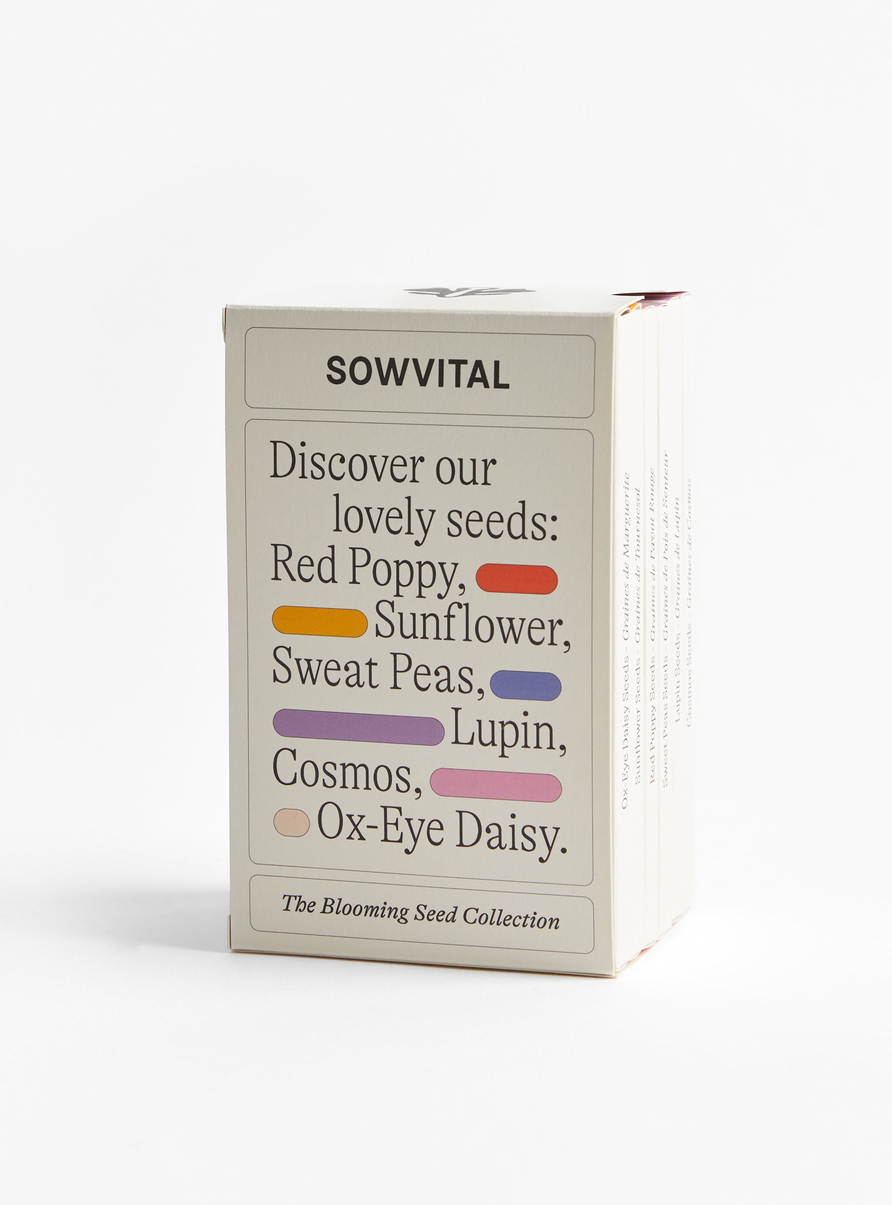 The Flower Seed Collection from Sowvital is a curated selection of six pollinator-friendly, easy-to-grow flowers, designed to bring colour and life to your home garden. Each variety is packaged like a mini book in a sleeve, providing a simple and thoughtful way to grow red poppies, sunflowers, sweet peas, lupins, cosmos, and ox-eye daisies.