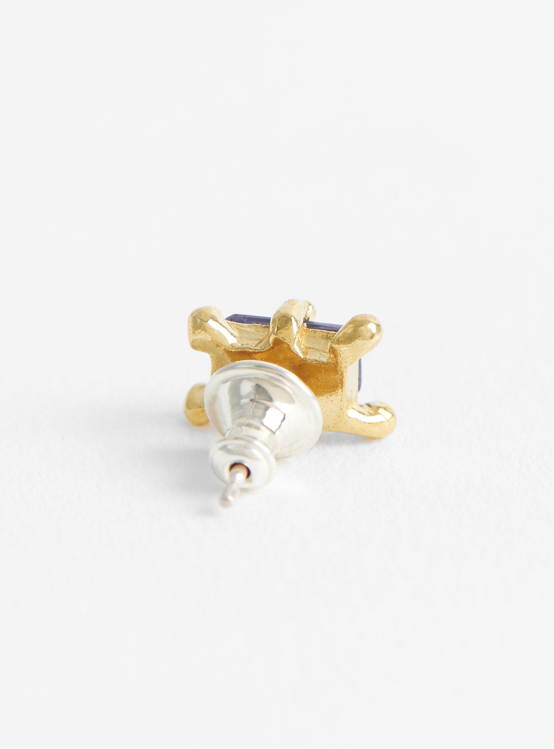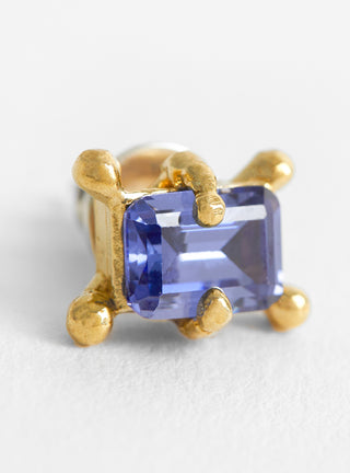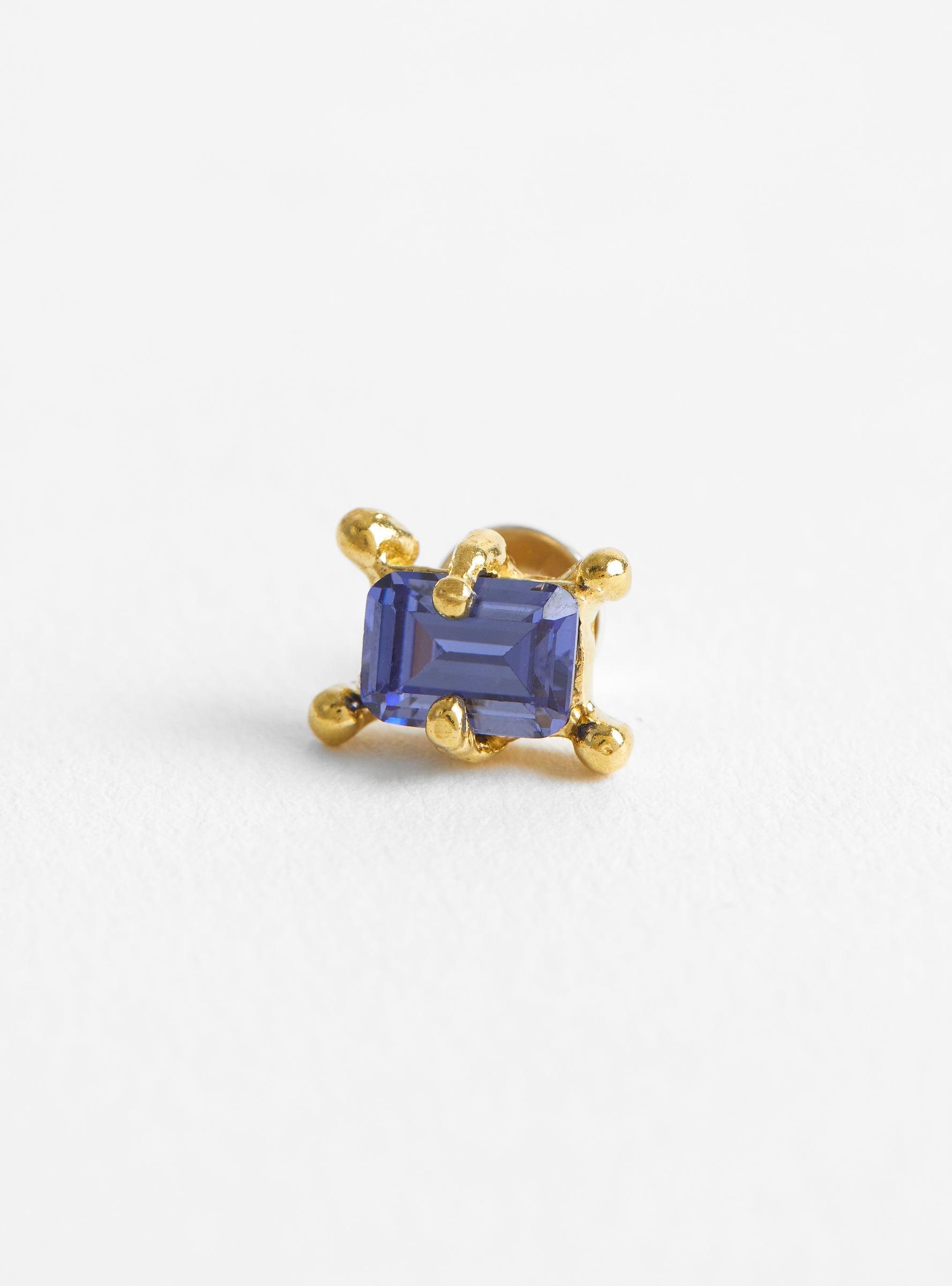 The Lucky Little Tanzanite Blue by Ruby Jack is handcrafted in the UK from brass, featuring a blue tanzanite. As a small team, the brand creates playful designs inspired by anecdotes from the founder's personal life.