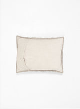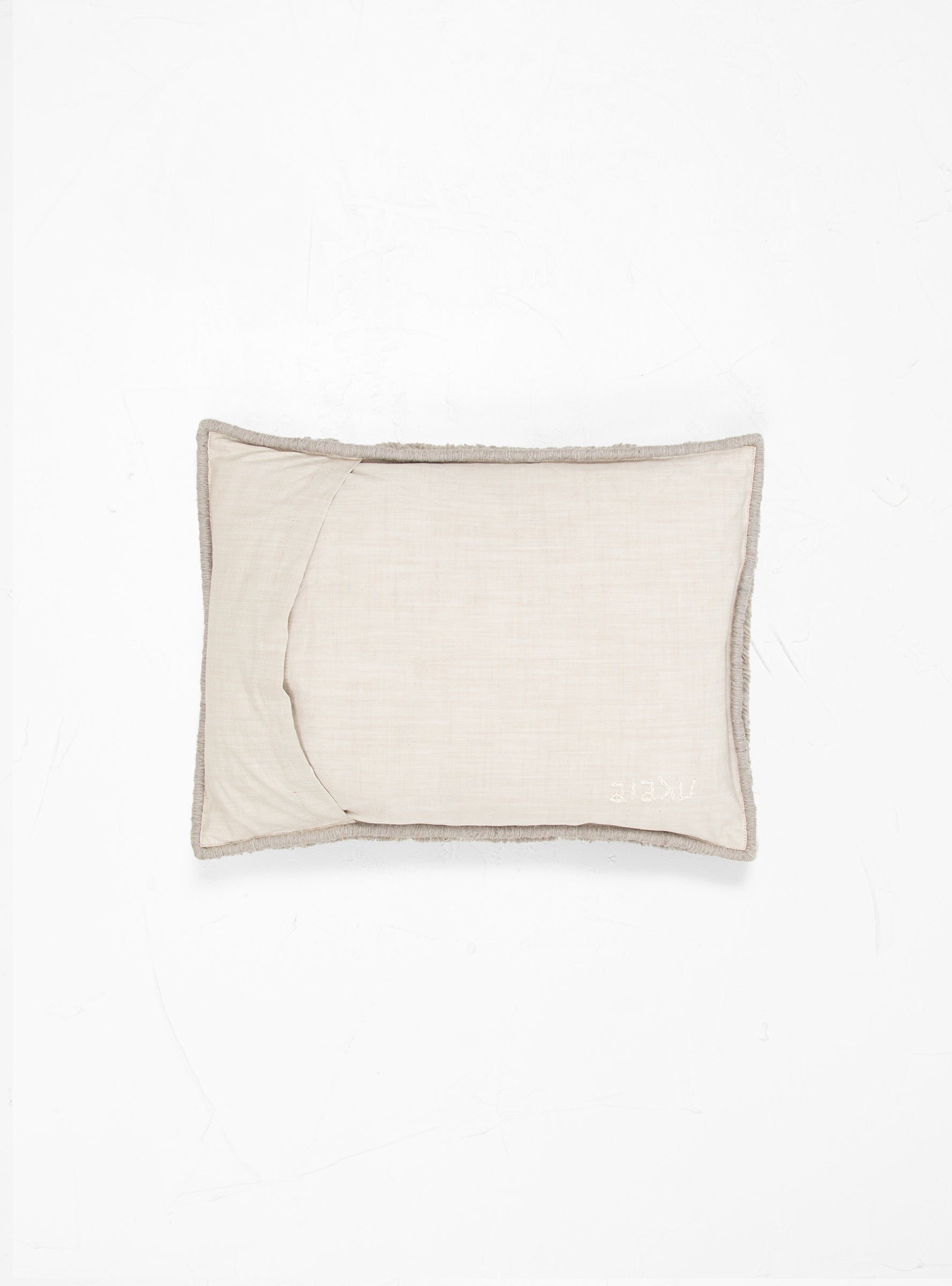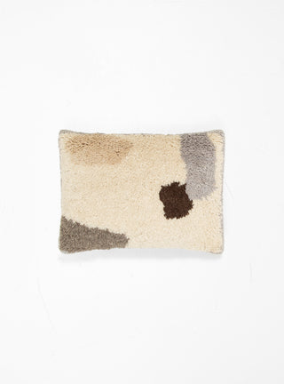 Featuring an abstract motif in natural shades of beige, grey and brown, this off-white Theo cushion from Aiayu is handmade from cashmere by artisans in Kathmandu, Nepal.